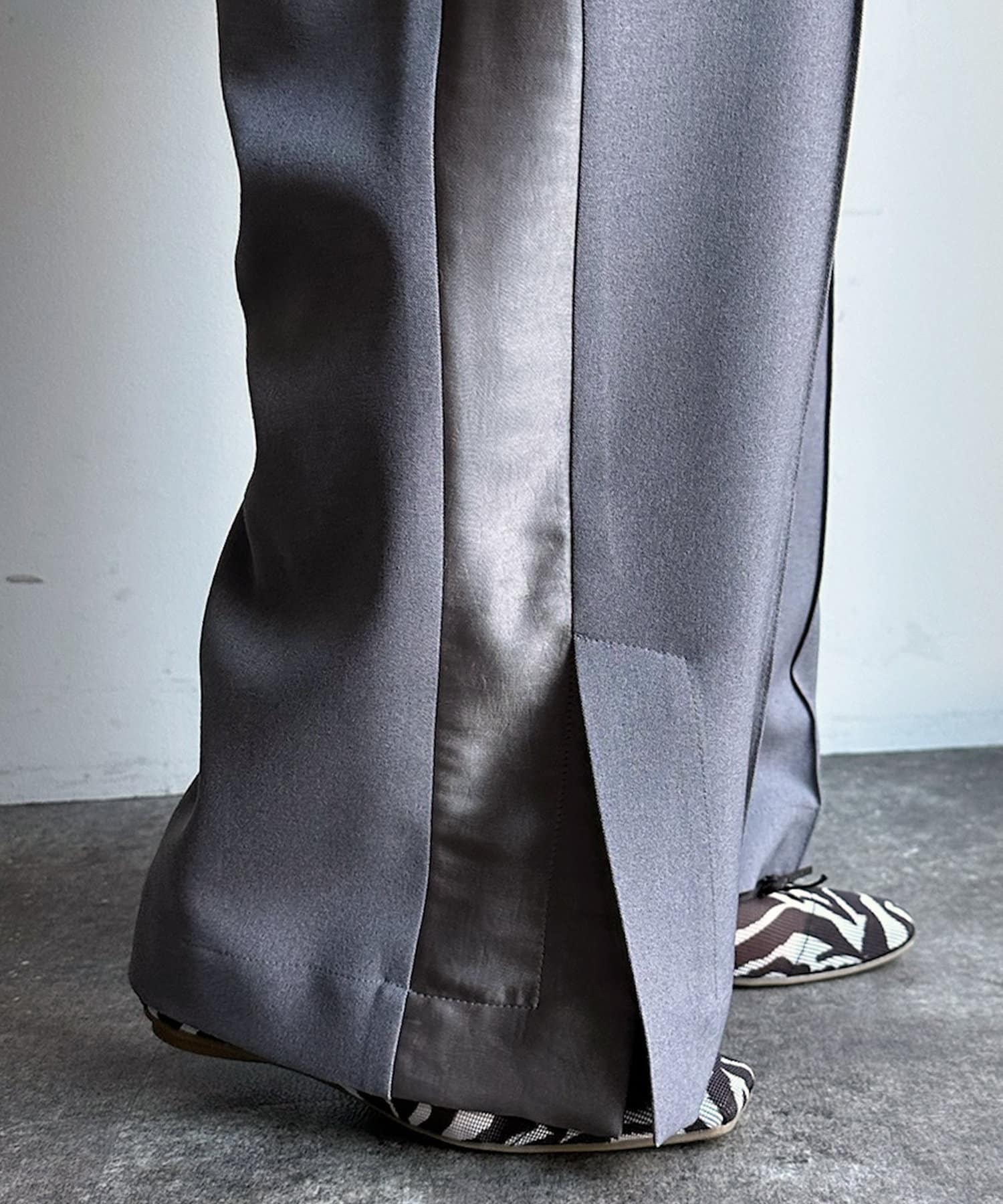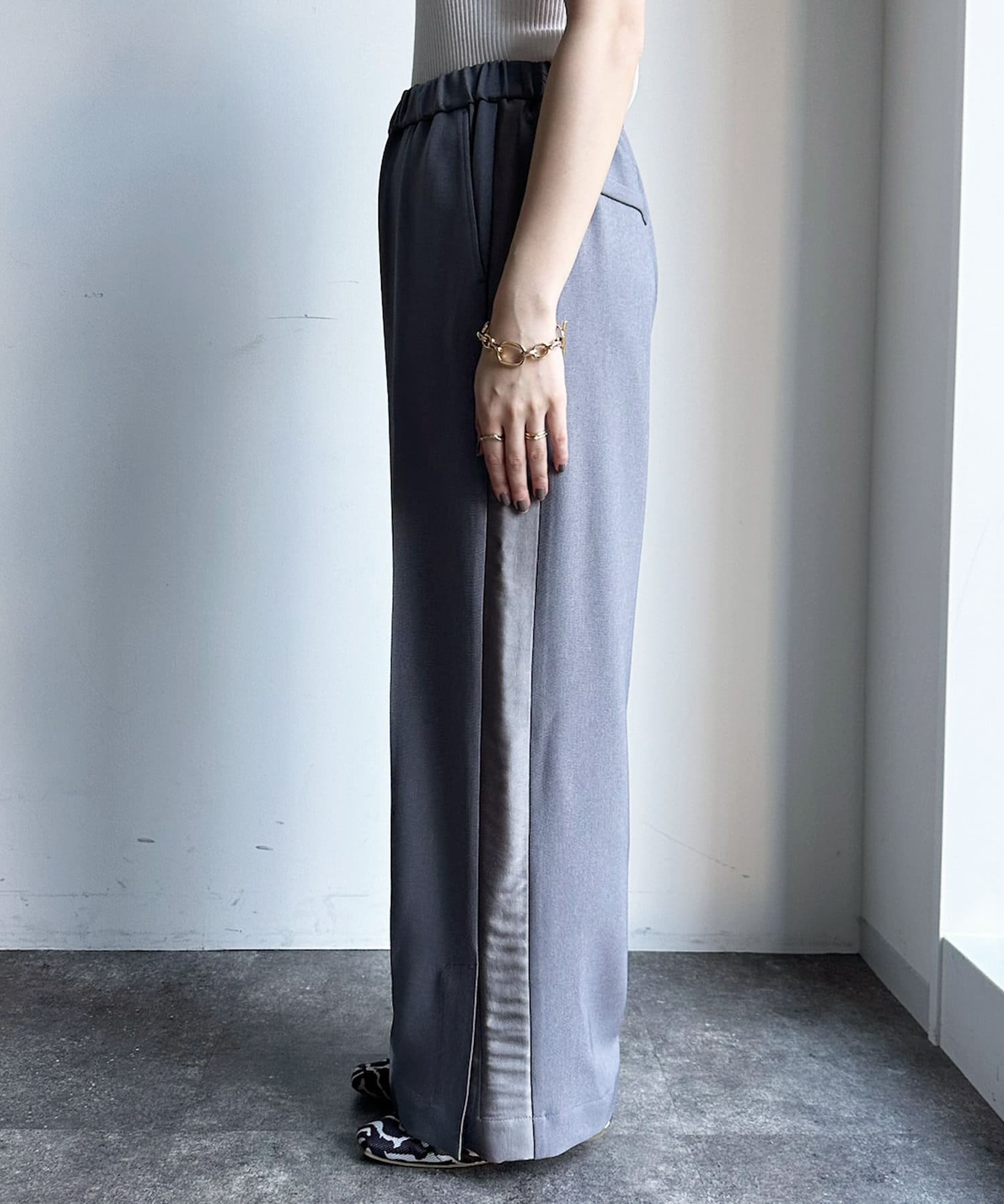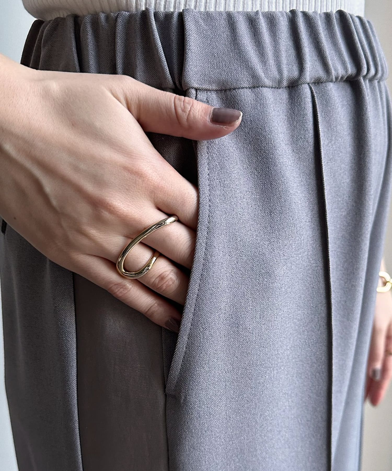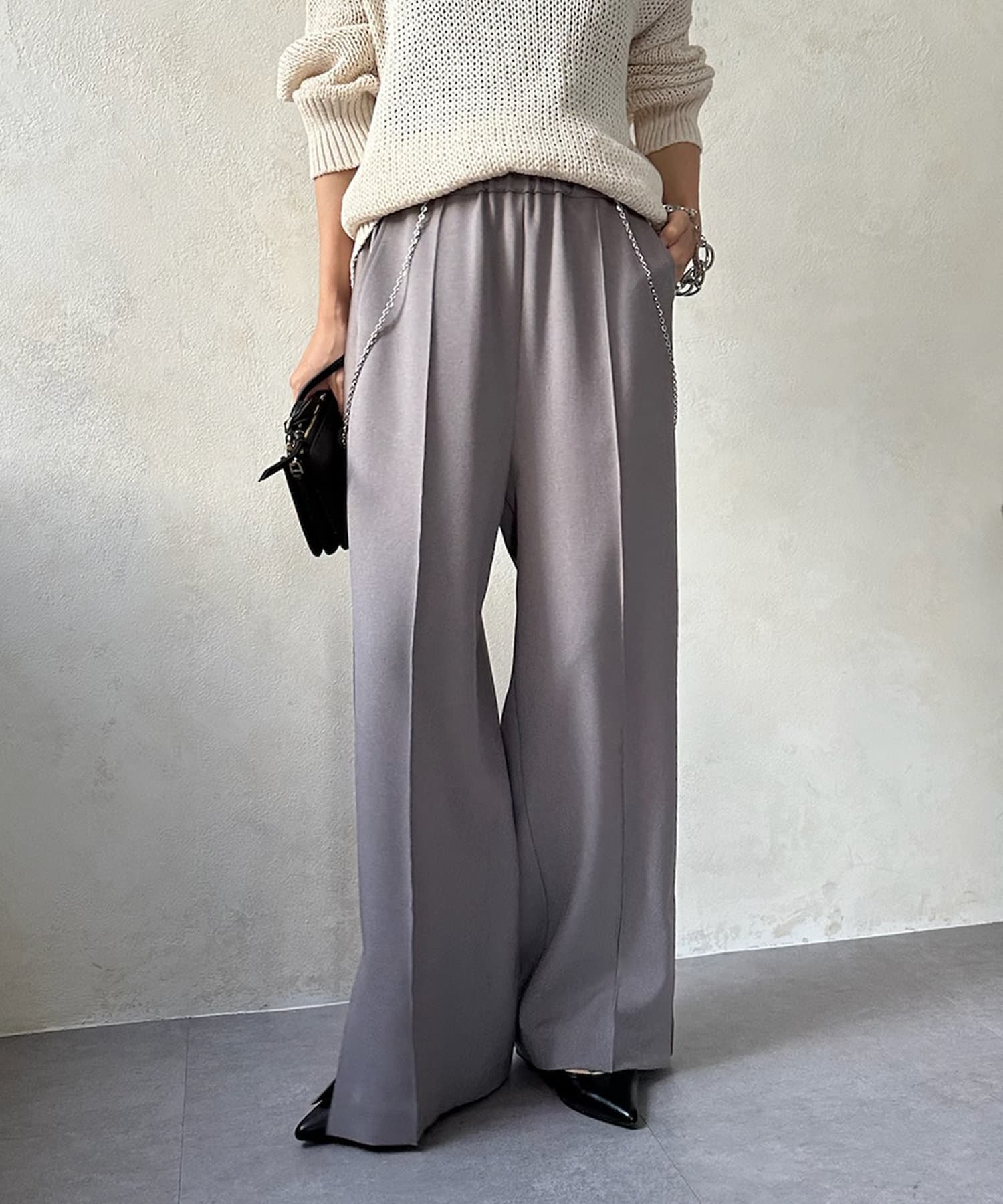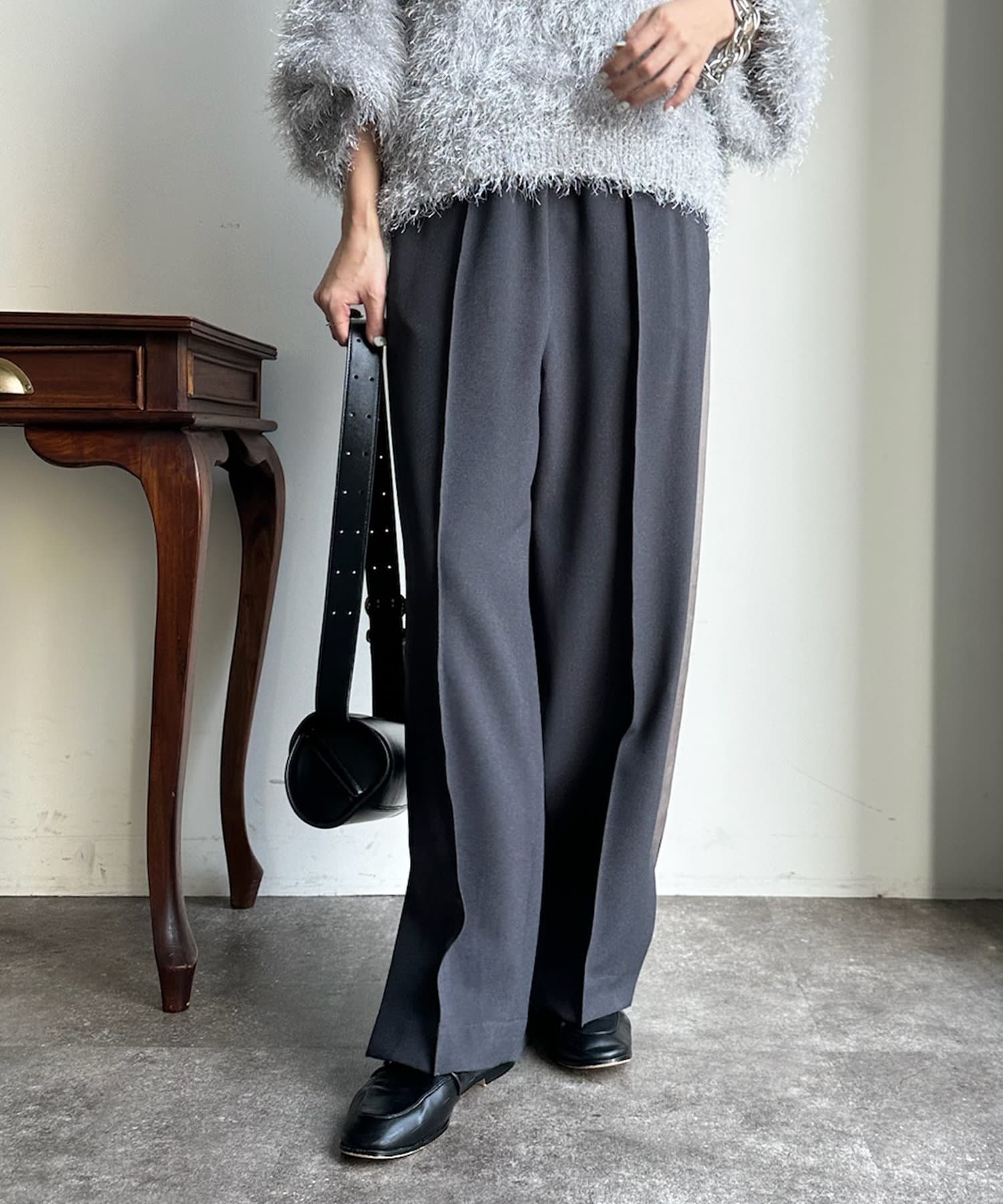 センタープレス+サイドのラインで縦ラインを強調し、履き心地イージーながらもスタイルアップ効果のあるつくりに。