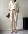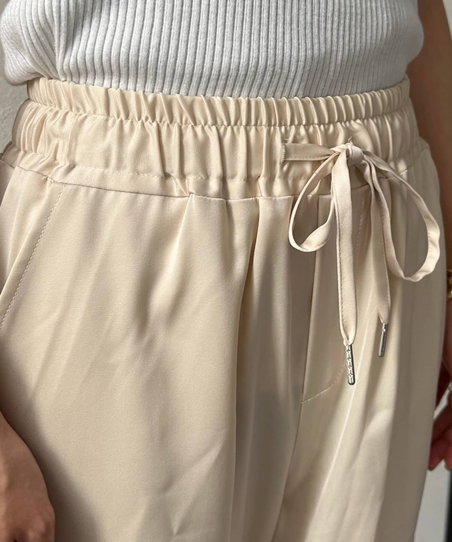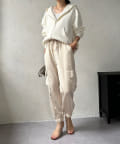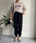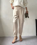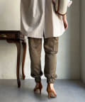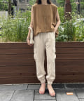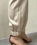 脚の縦ラインを綺麗に見せてくれ、裾のゴム仕様で絞られたデザインは細い足首を強調してくれます。