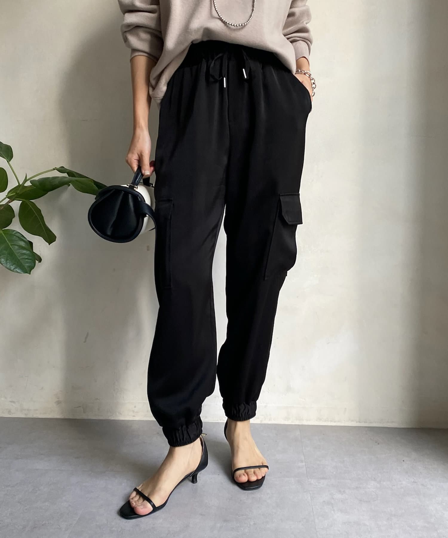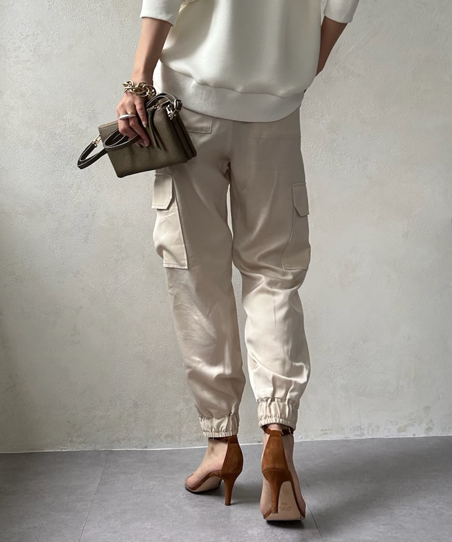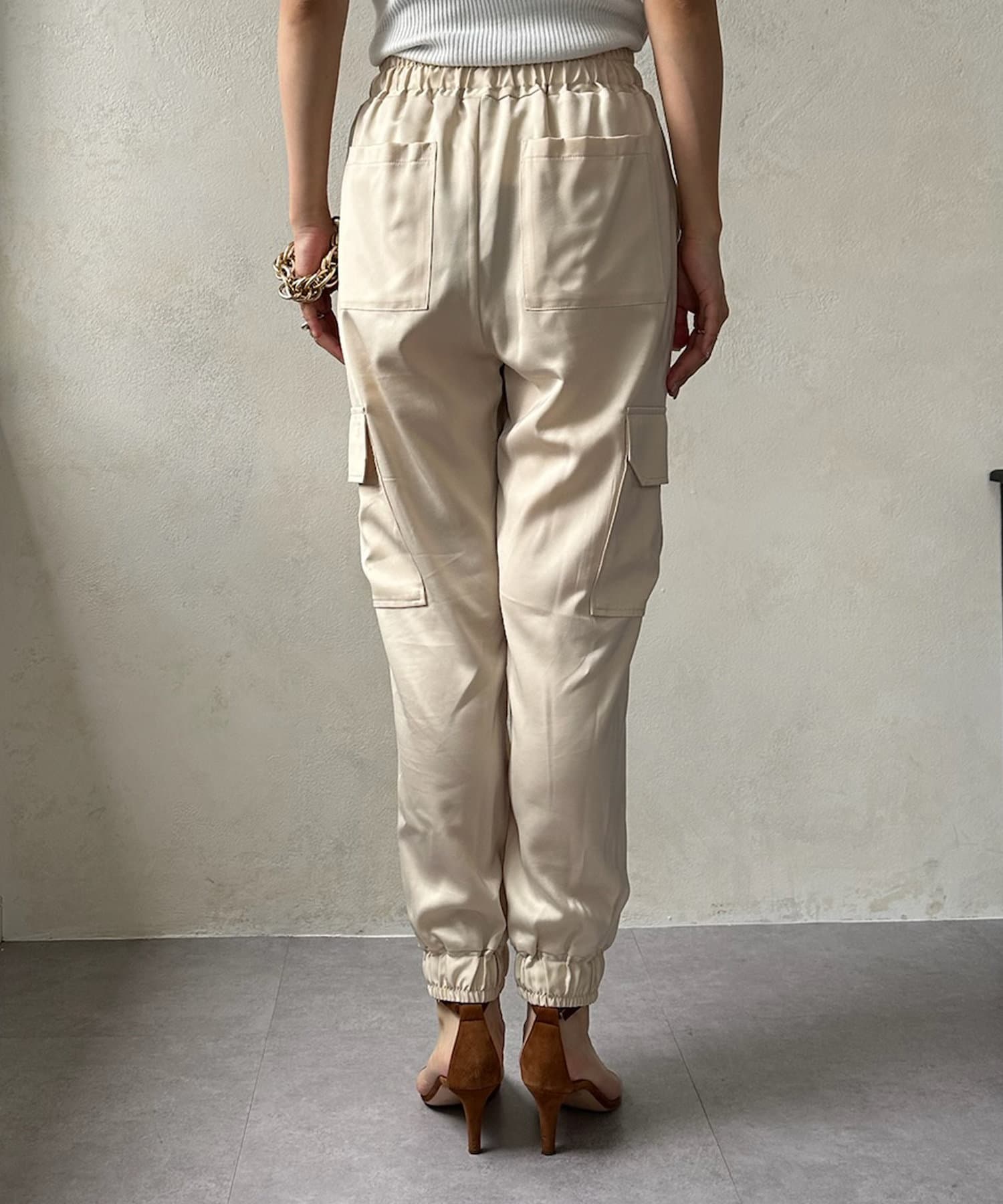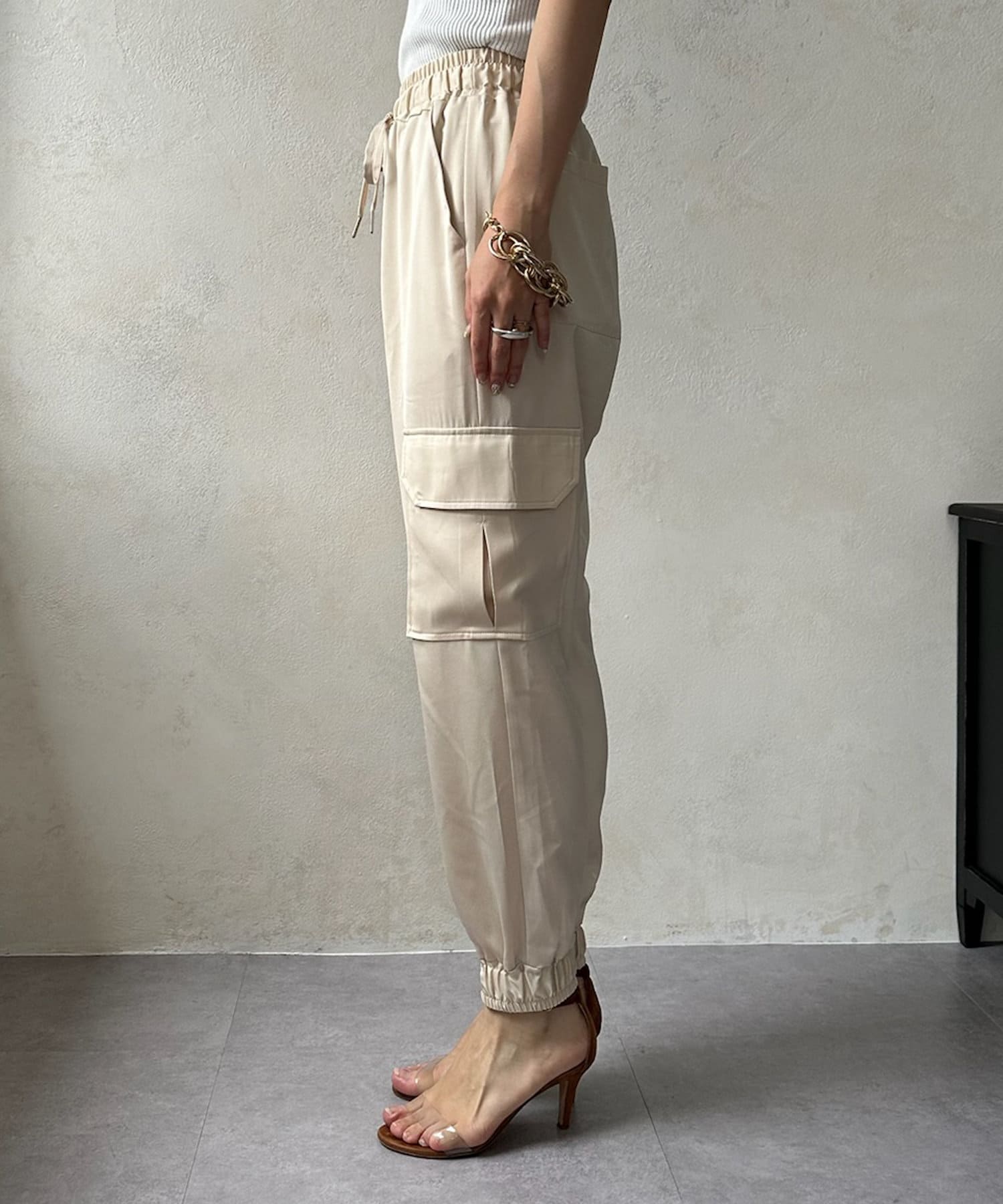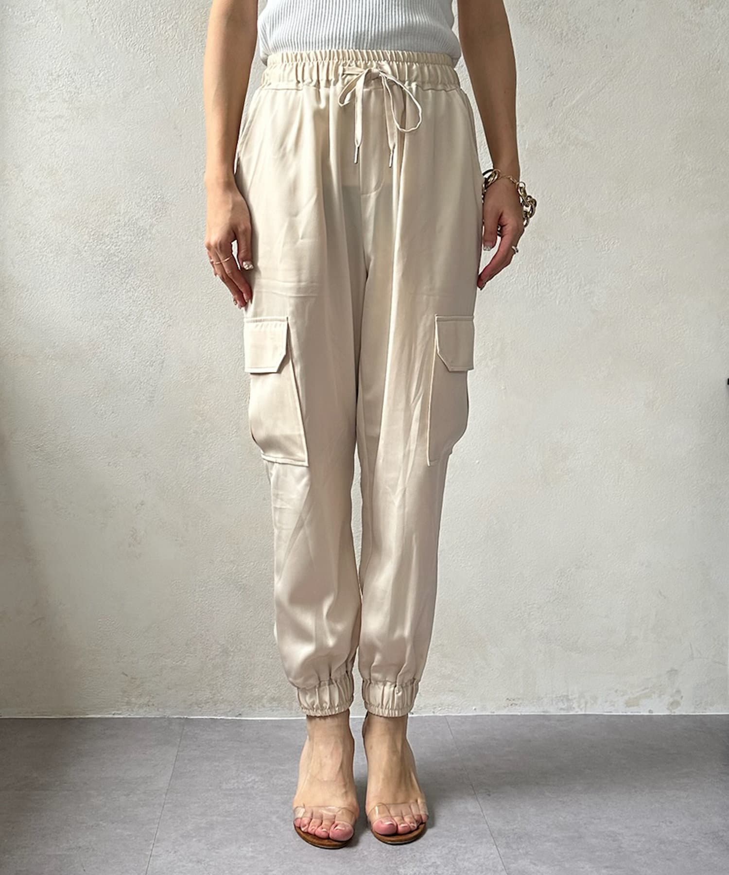 サテン素材の上品なカーゴパンツ!