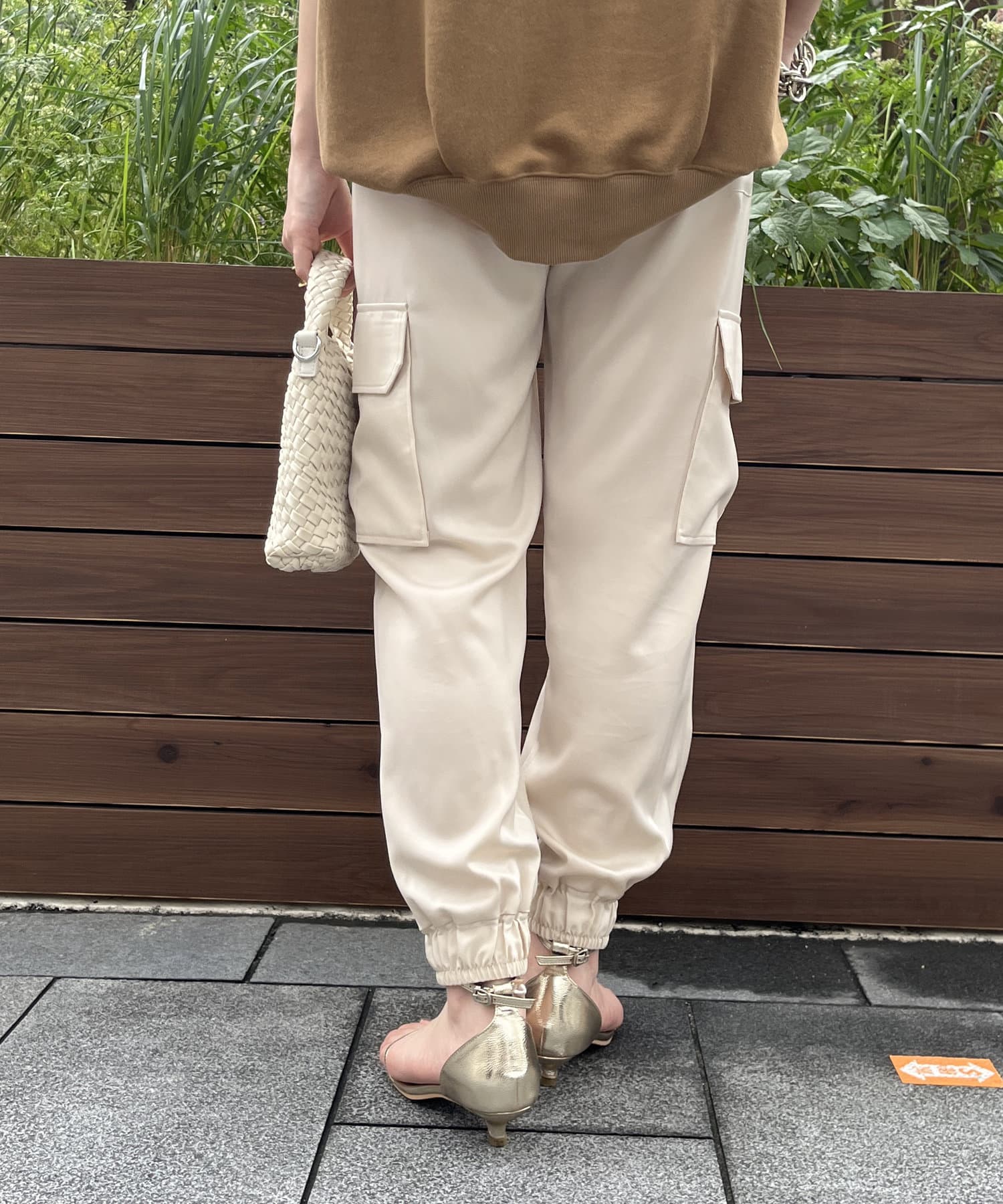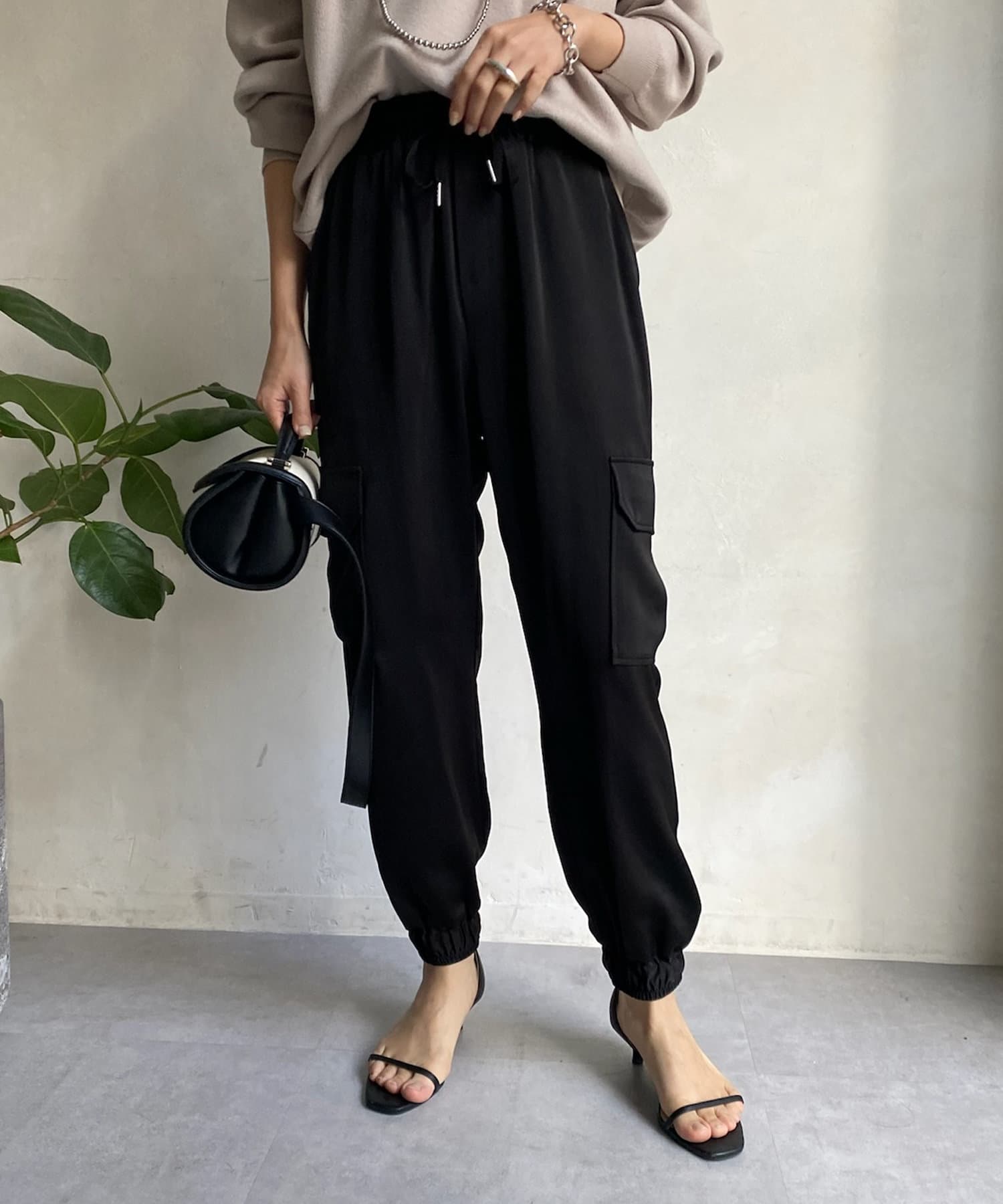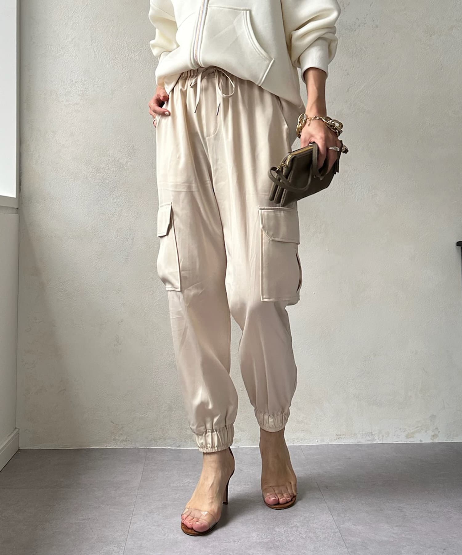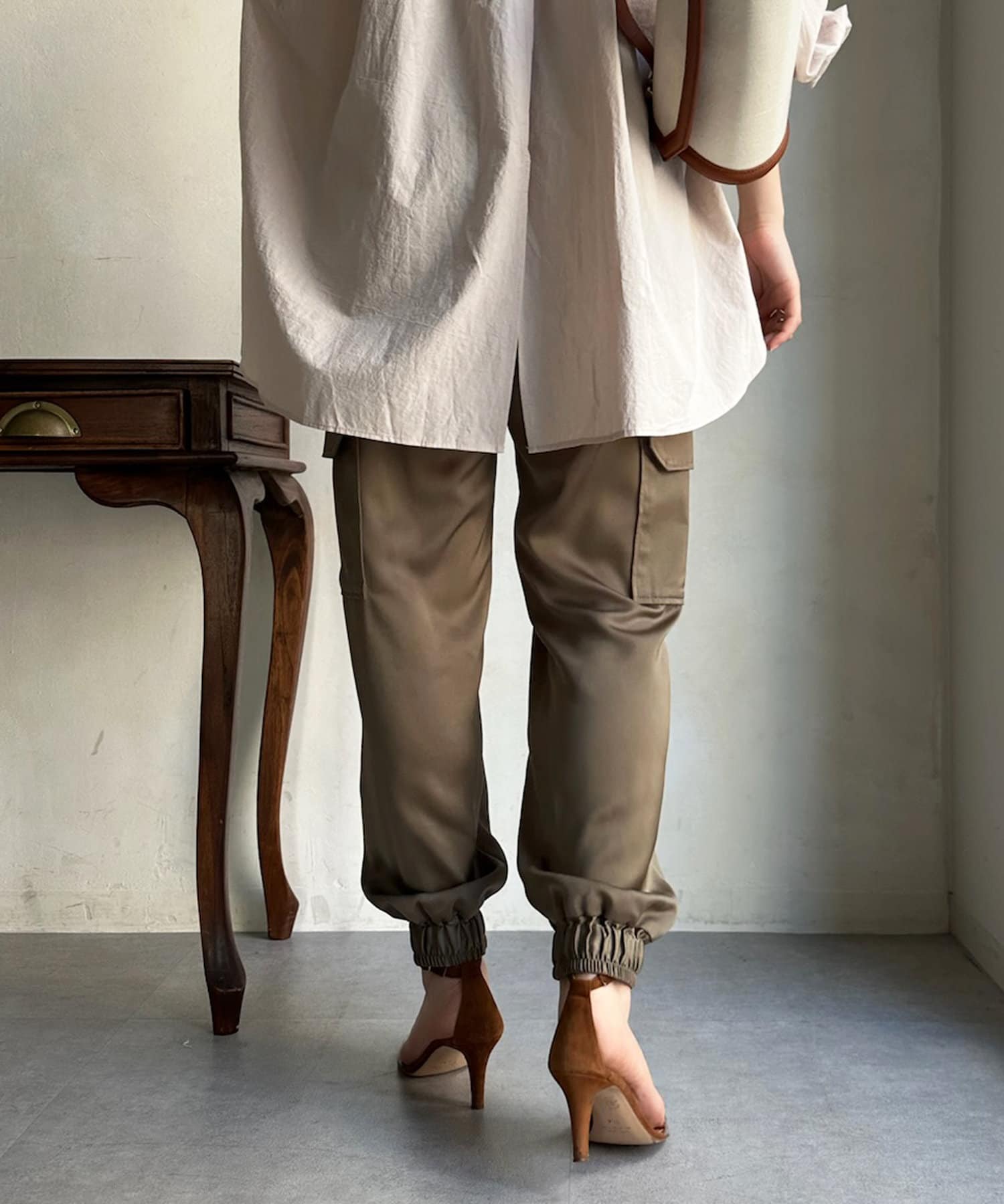 サテン素材の上品なカーゴパンツ!