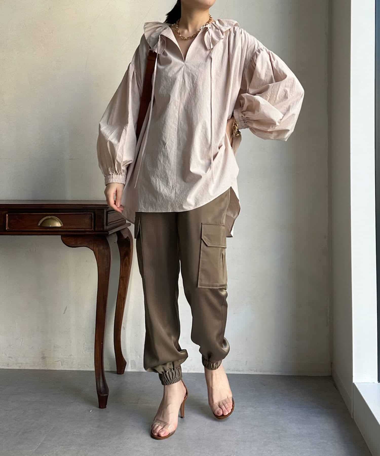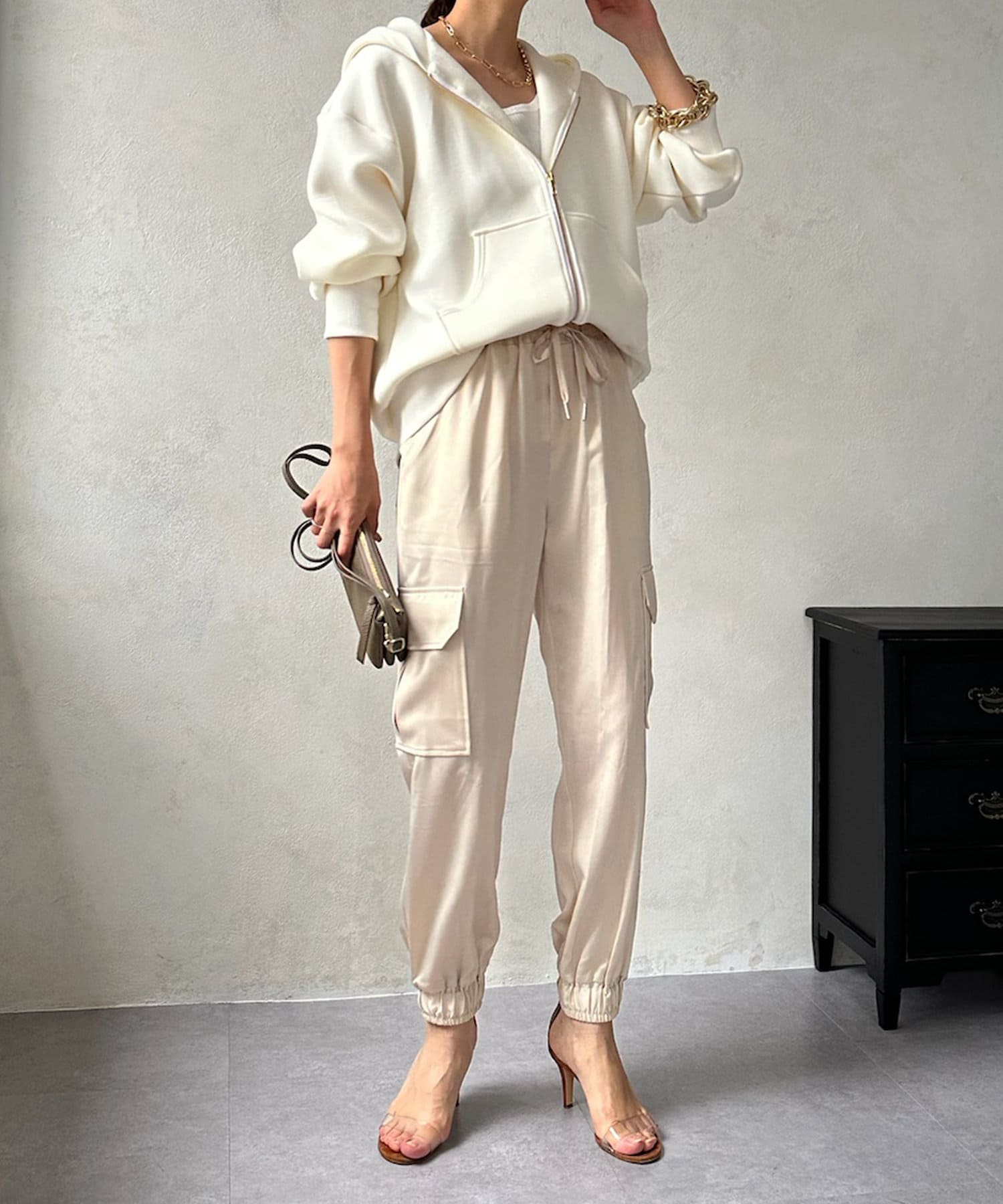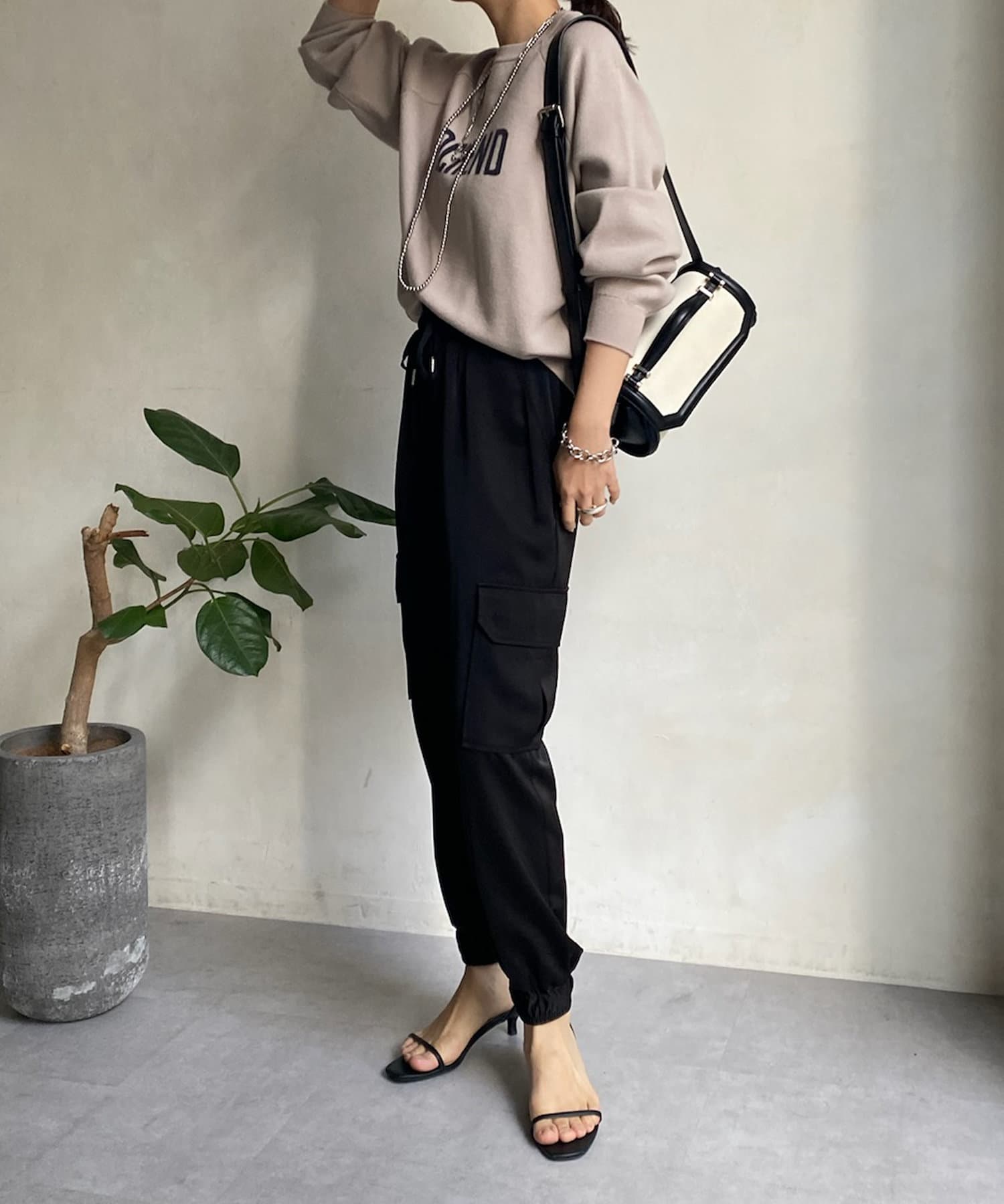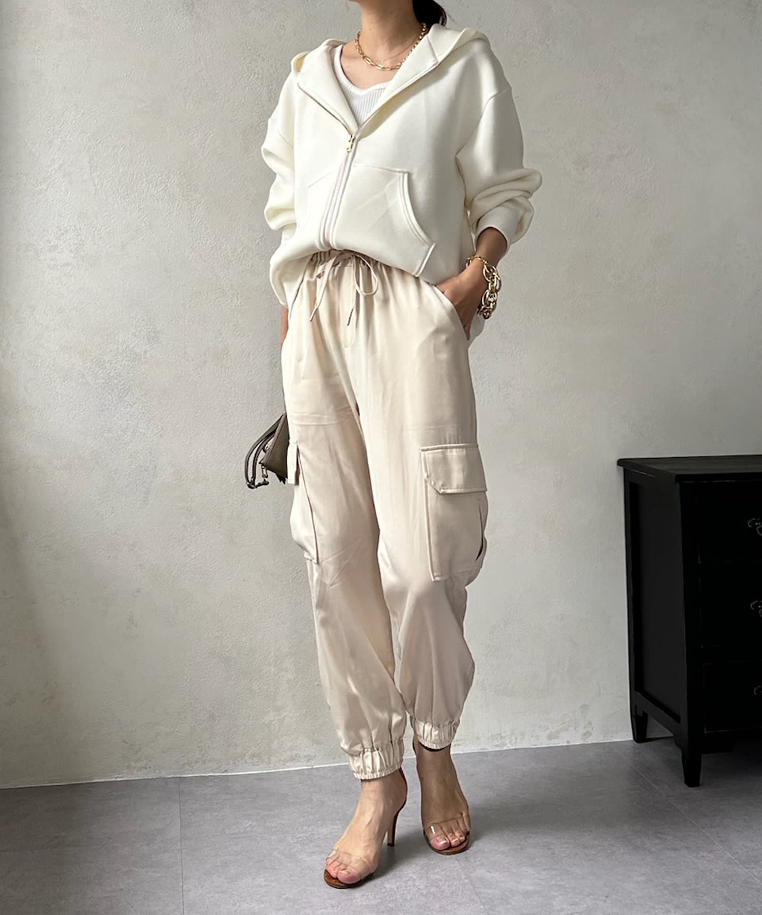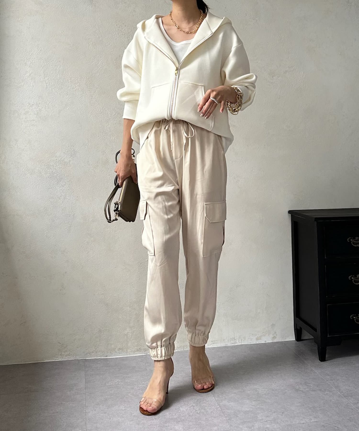 サテン素材の上品なカーゴパンツ!