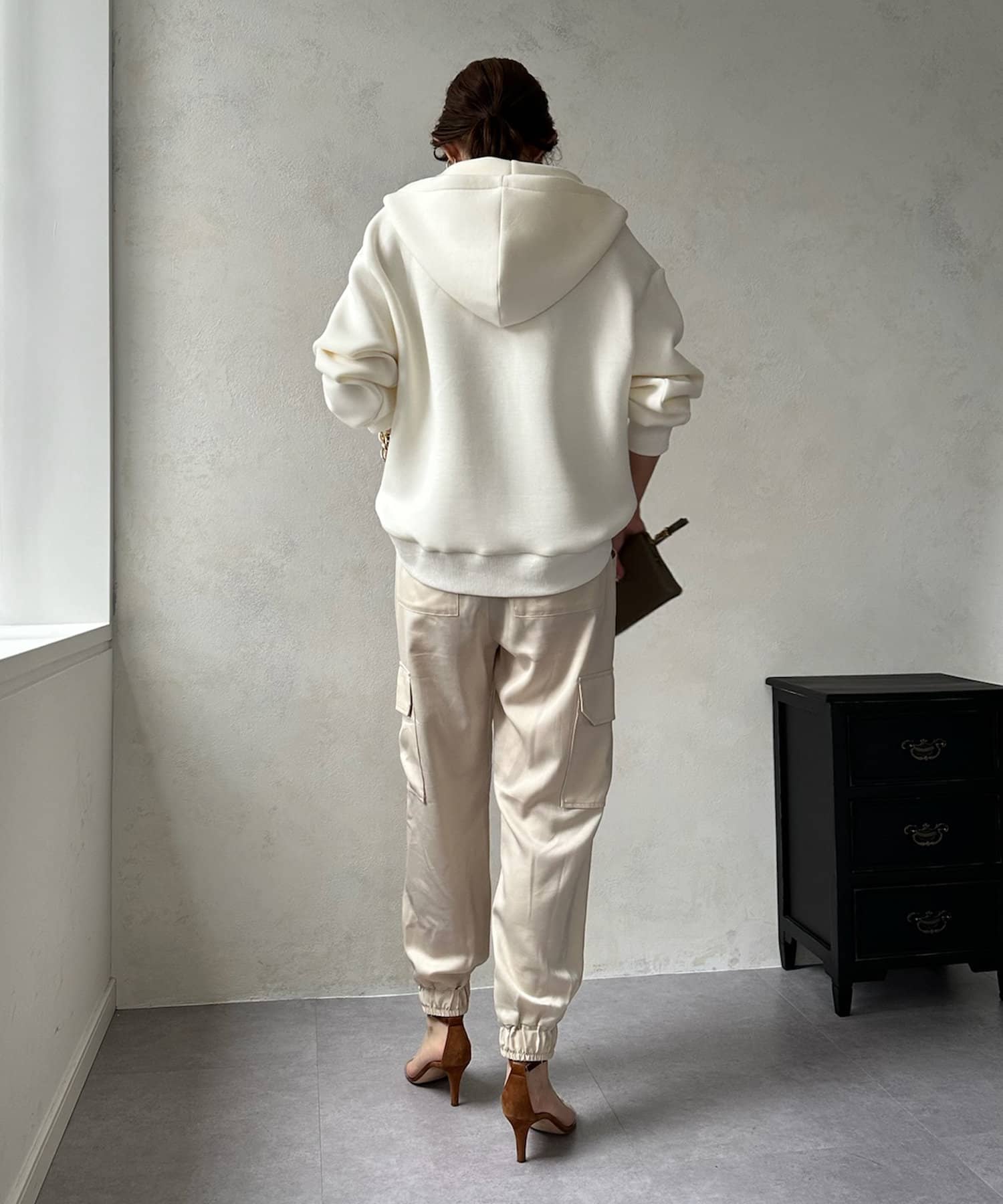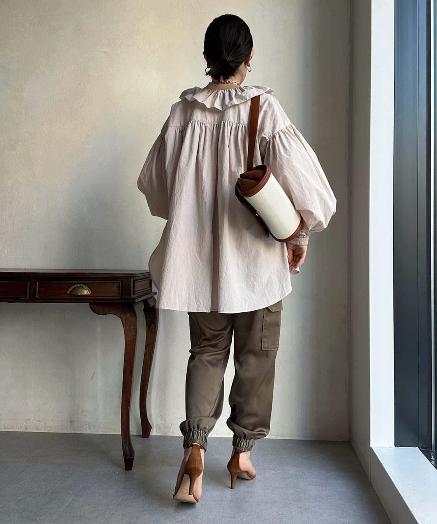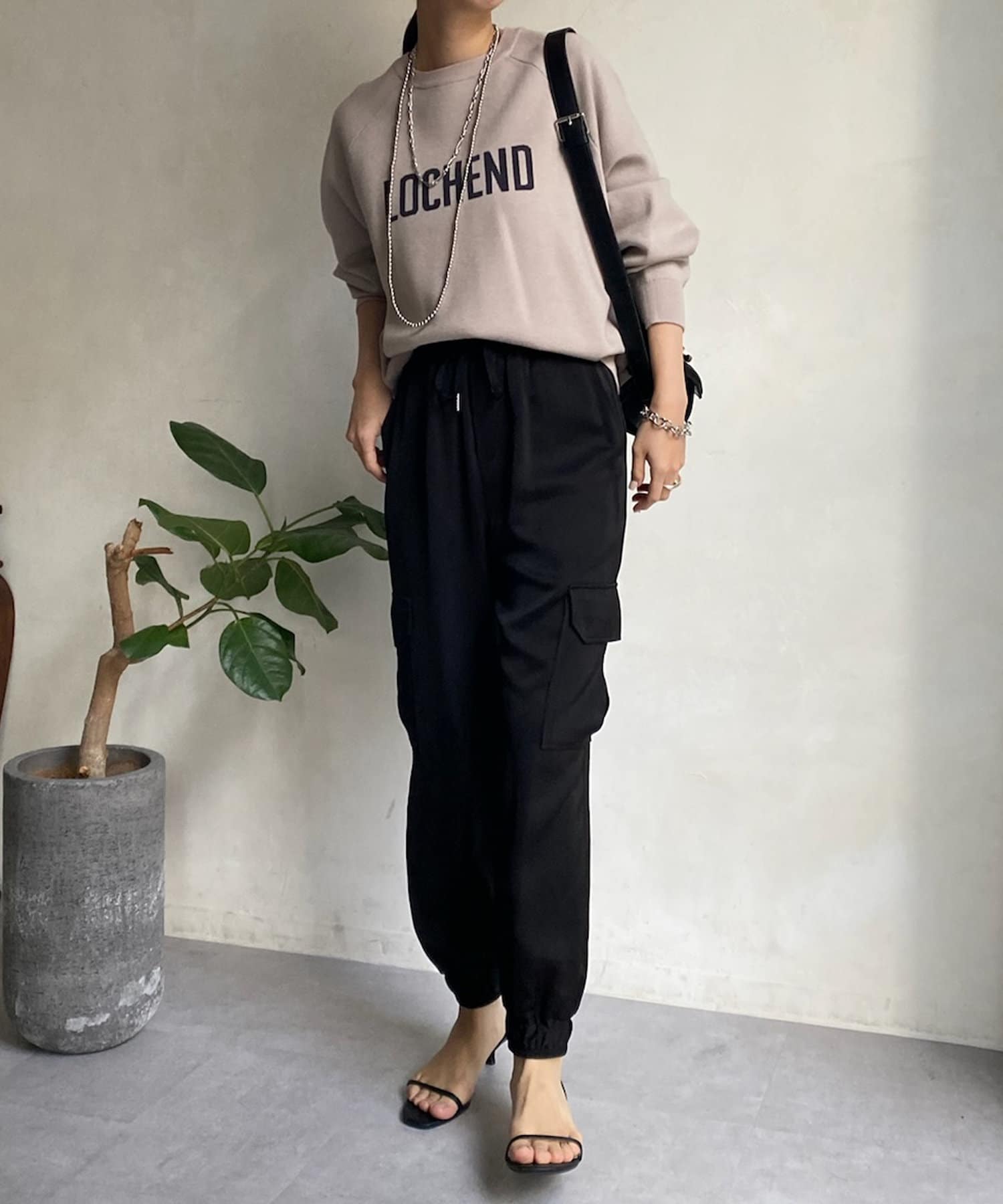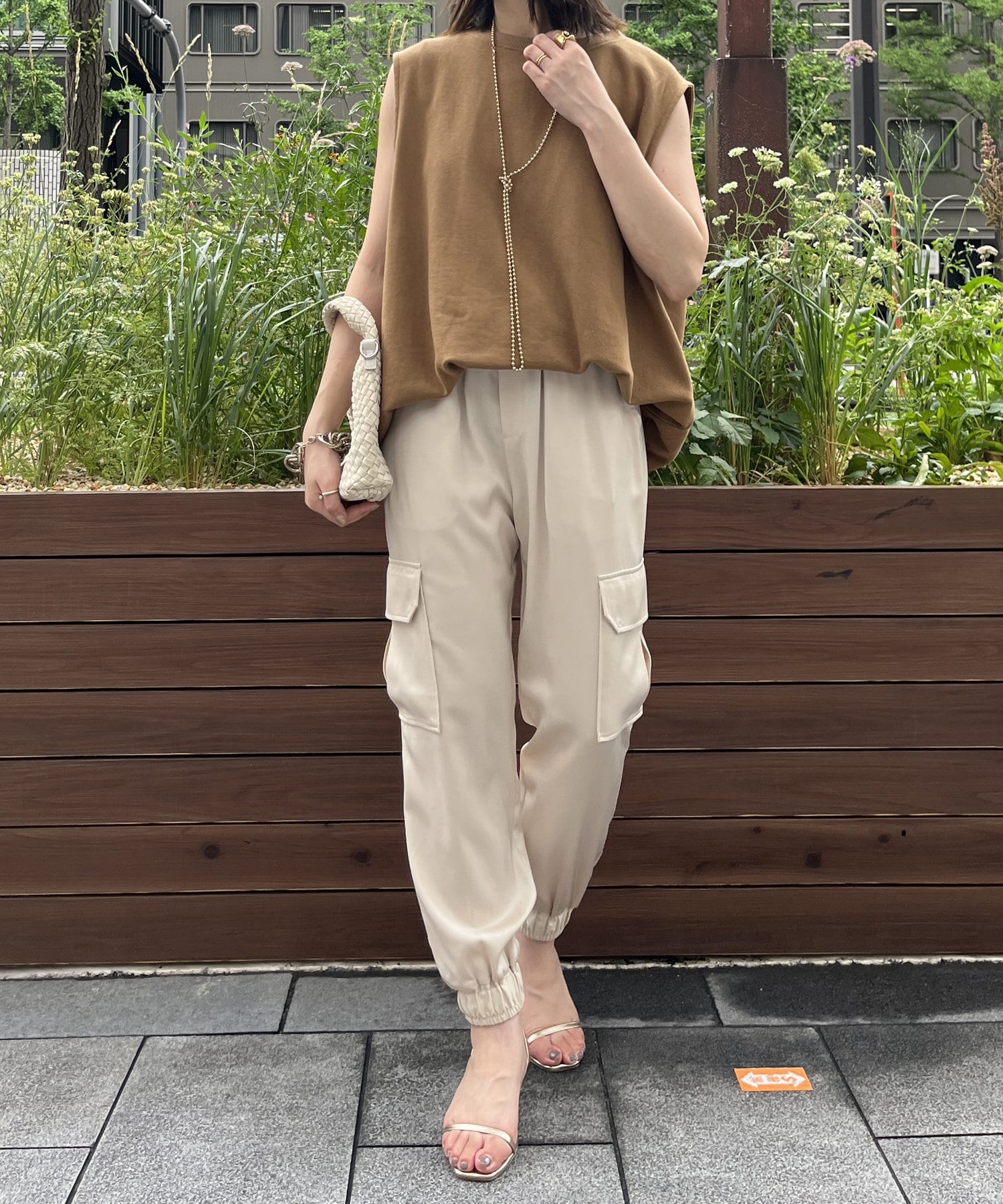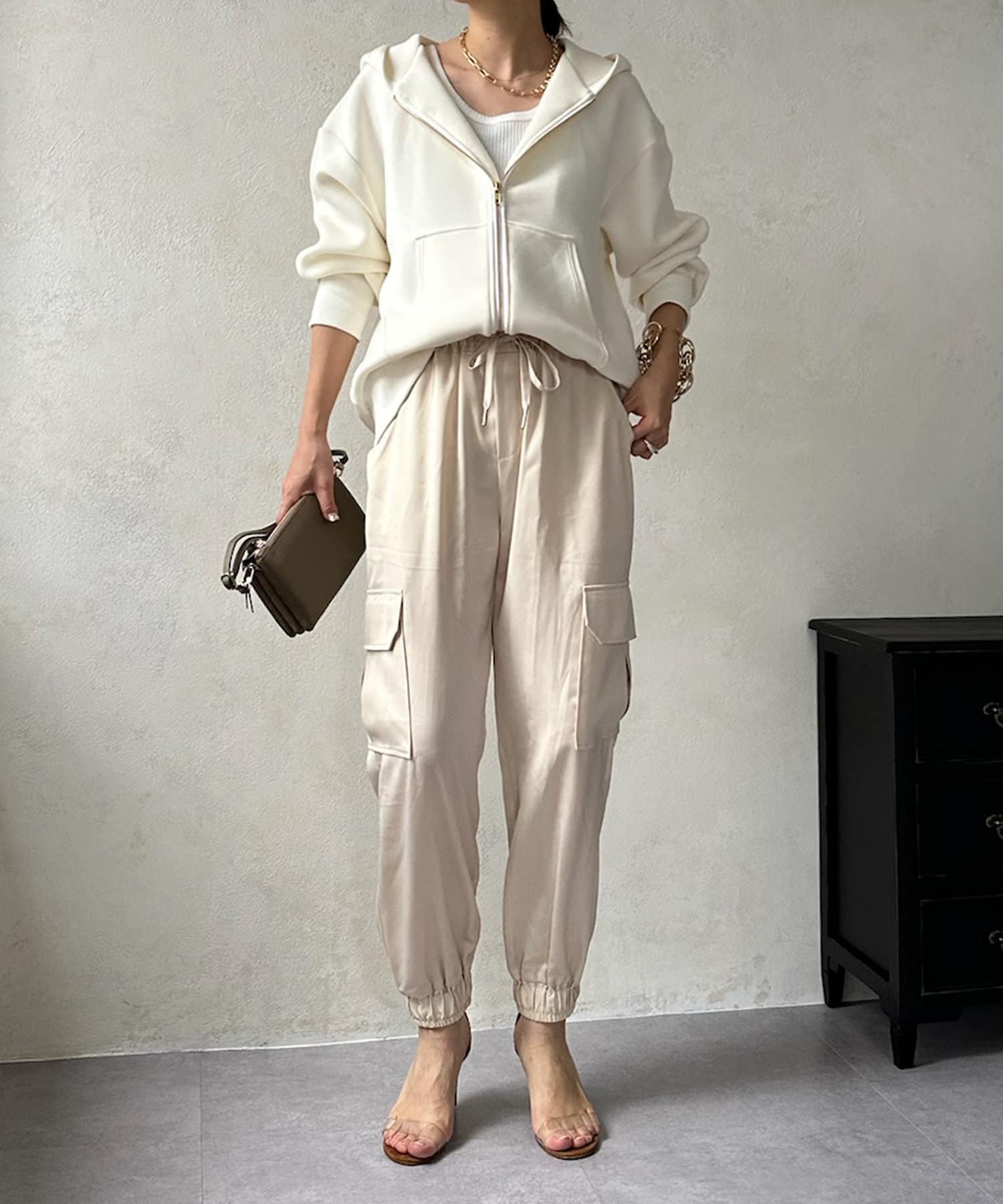 サテン素材の上品なカーゴパンツ!