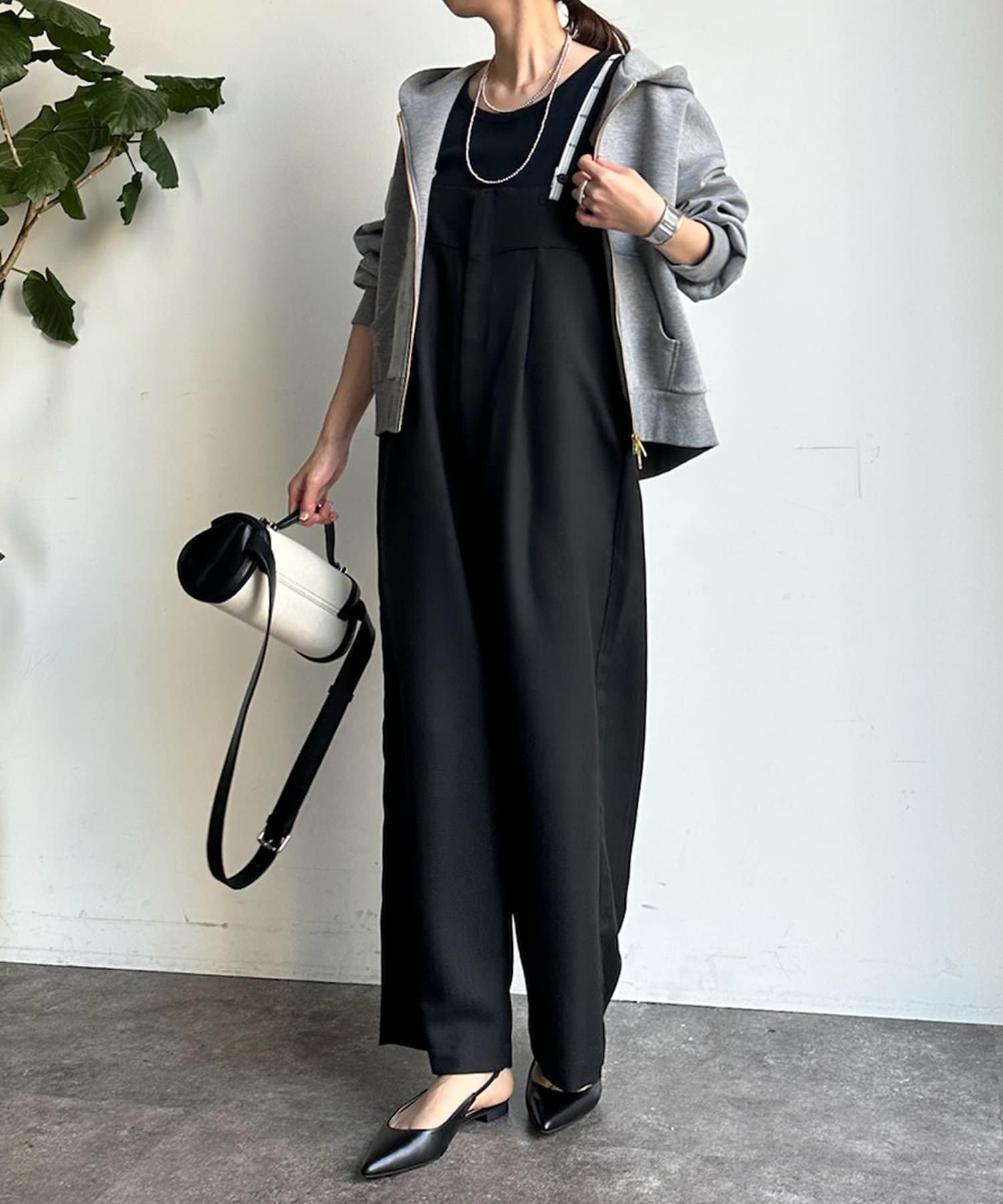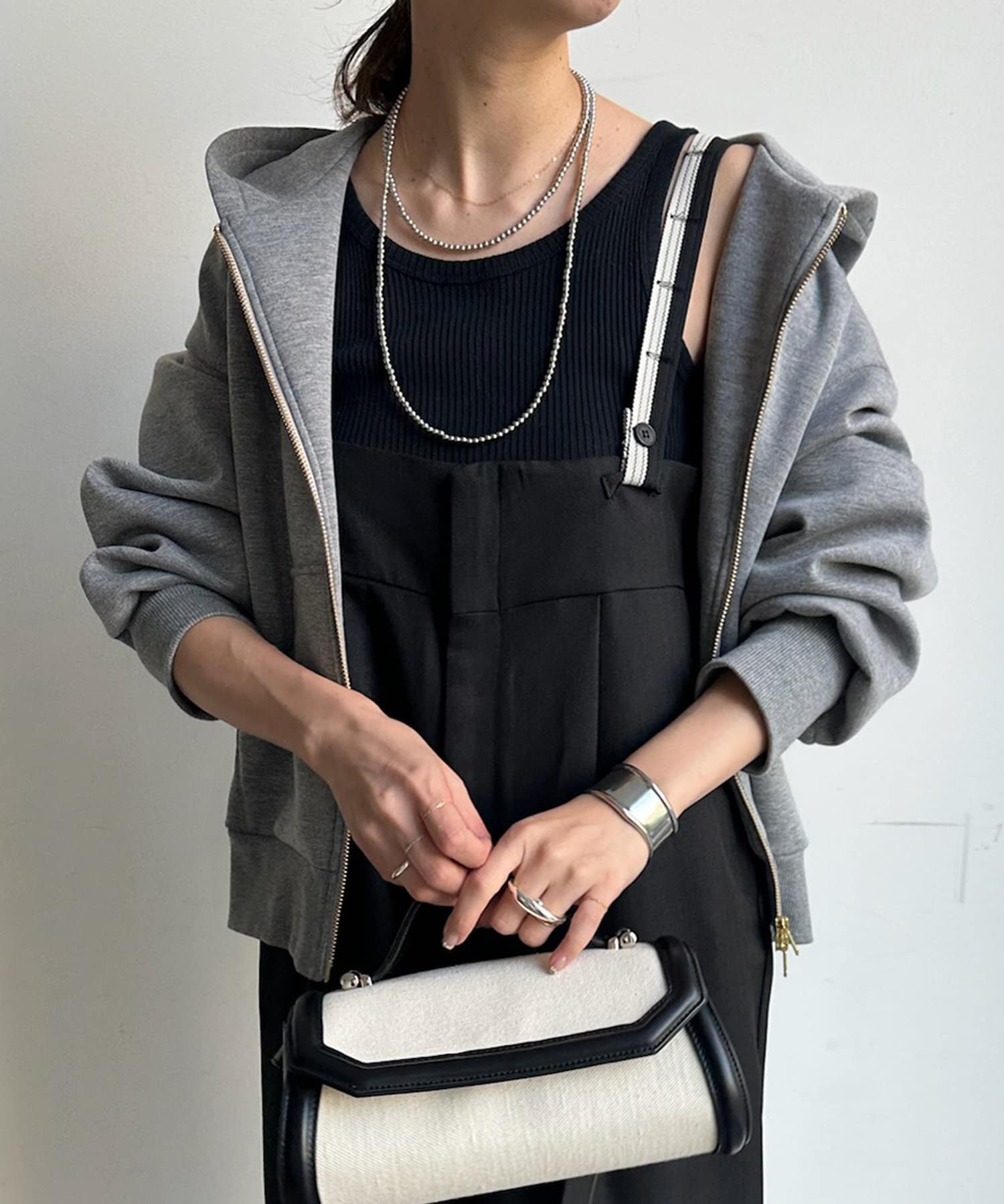 フロントジップを少し開けると、抜け感が出てお洒落に着こなせます。