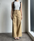 腰回りはすっきりと、裾に向かってワイドに広がるシルエットは足を長く見せてくれる効果にも期待大。