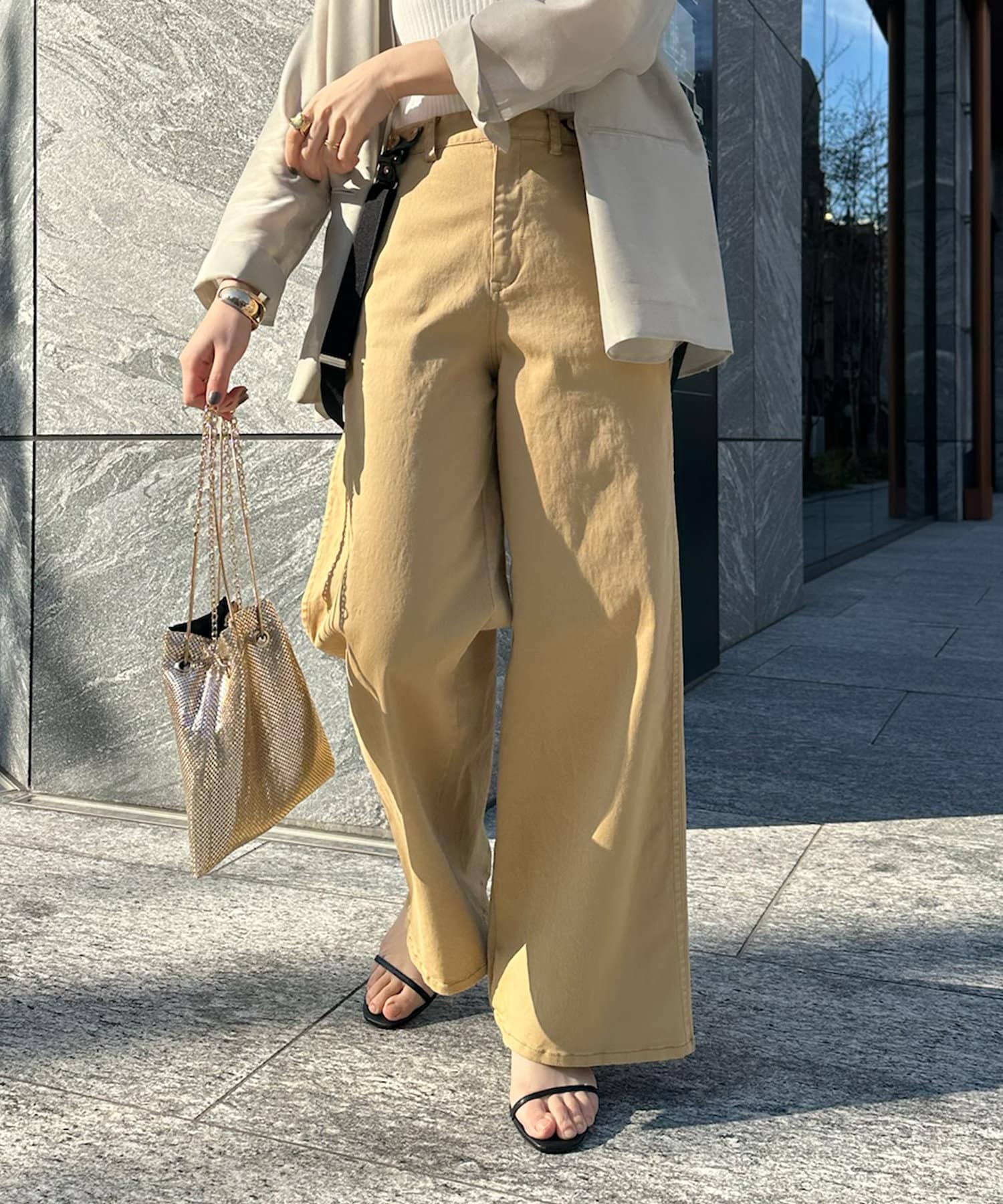 ・ワイドシルエットで脚長効果あり!