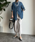 カジュアルに着こなすのはもちろん、シャツ+足元は華奢なシューズなどでMIXコーデを楽しむのもおすすめですよ◎