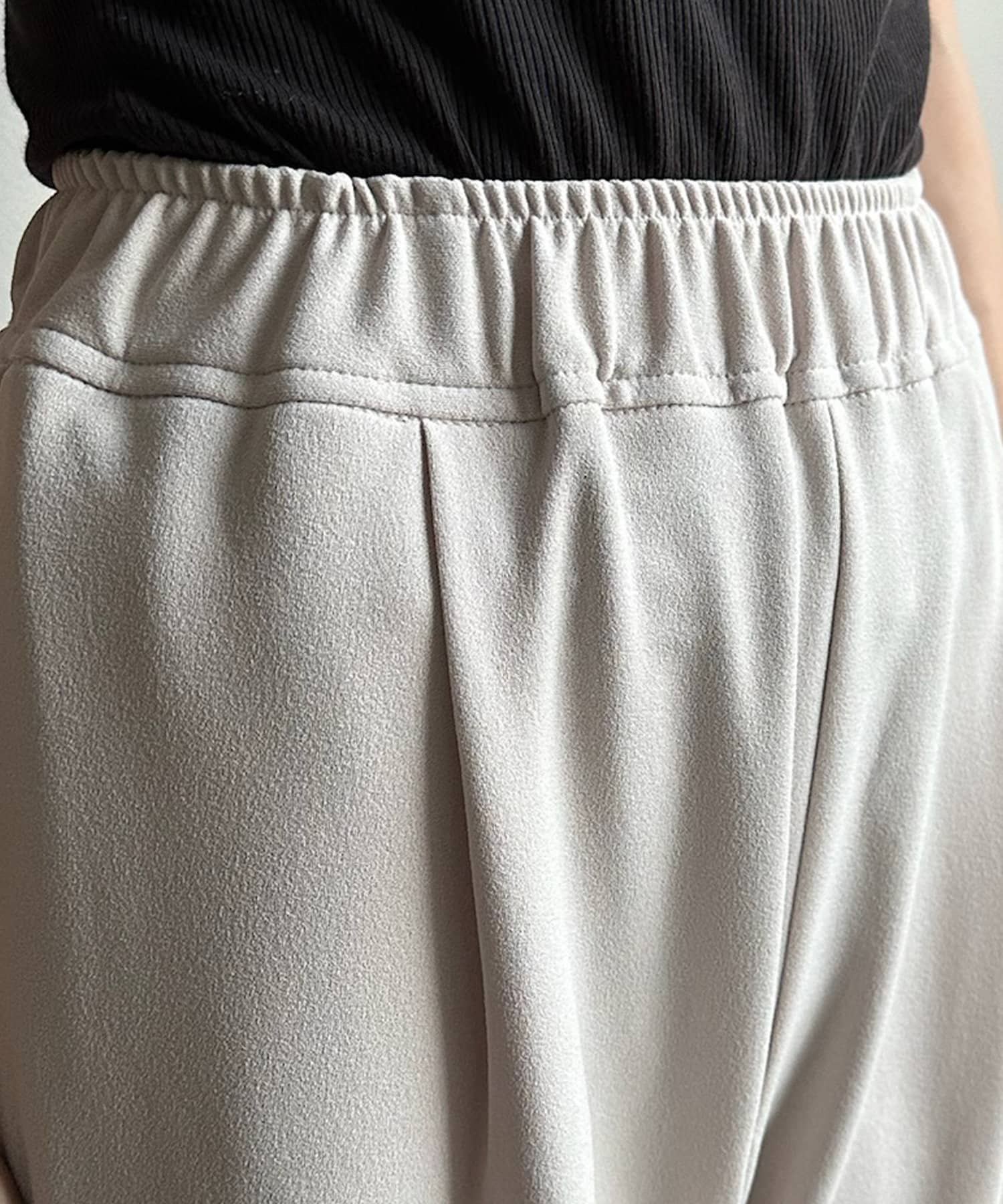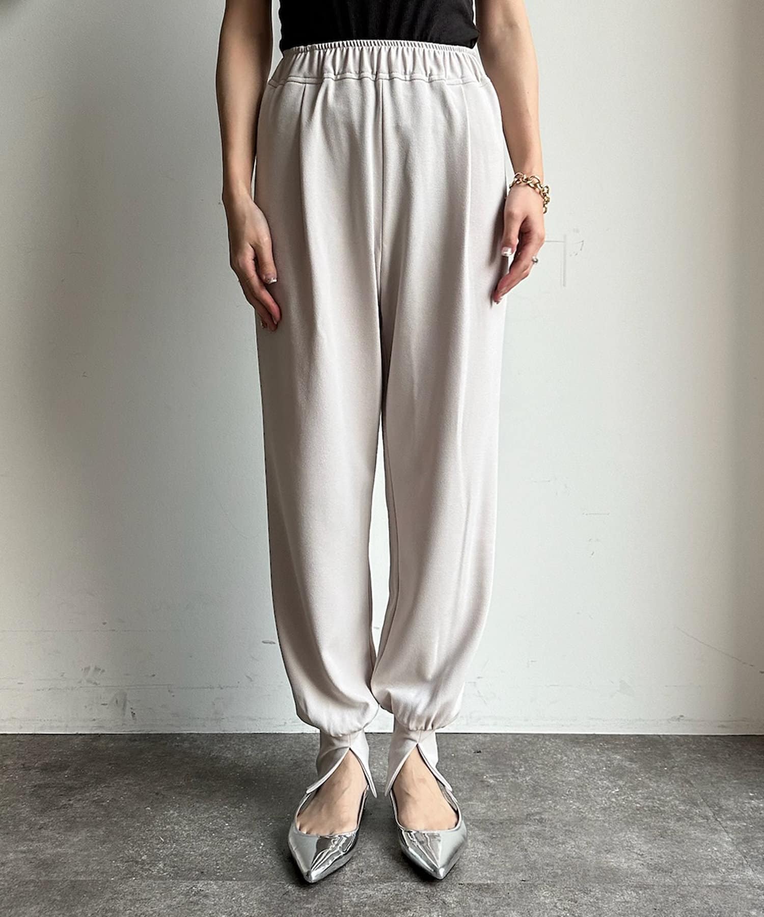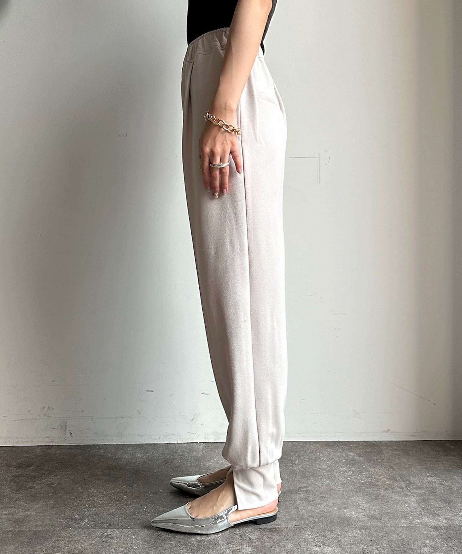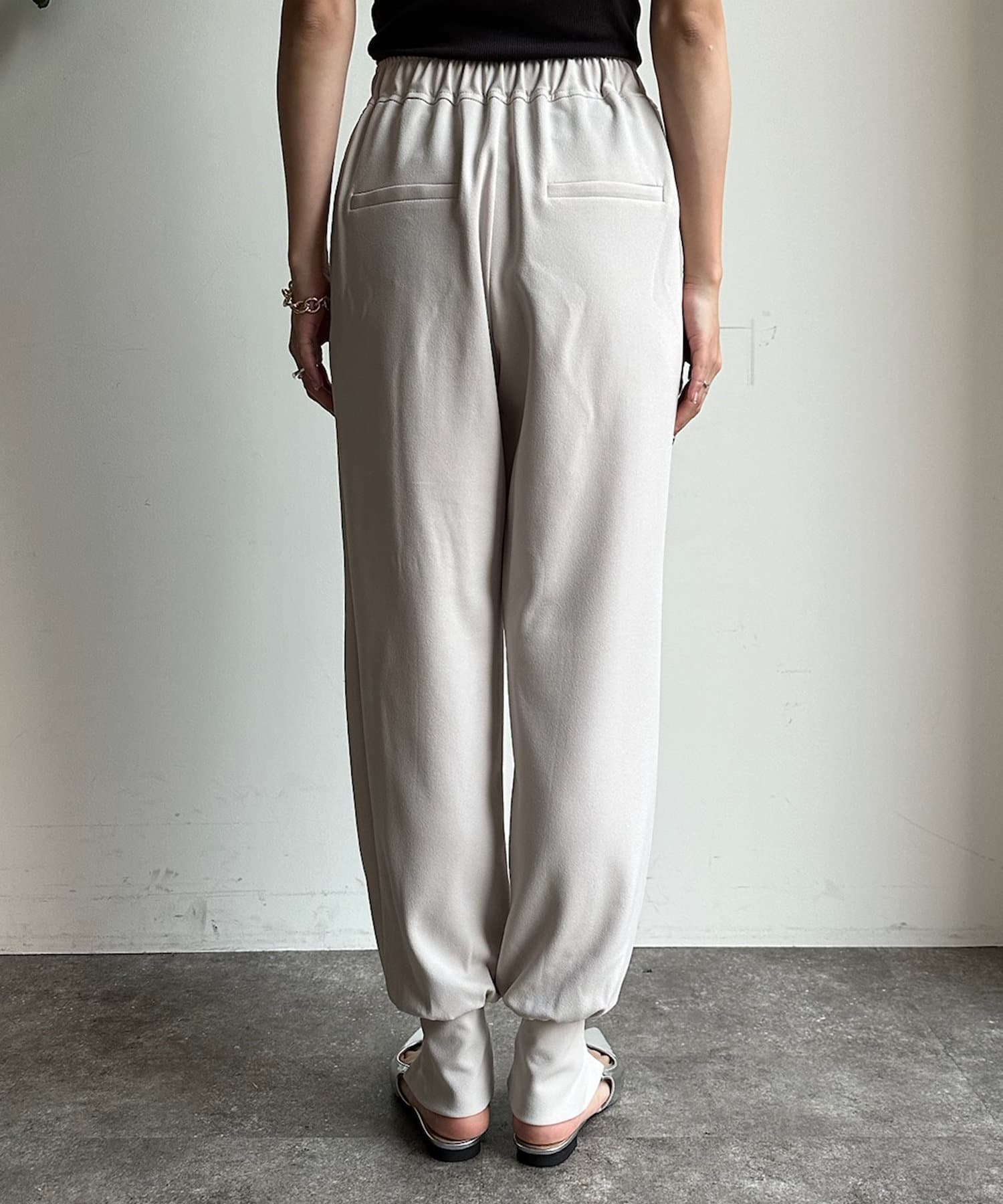 フロント部分にタックを施し、裾にはさり気なくスリットをプラス。細かなデザインで、ワンランク上のイージーパンツに。