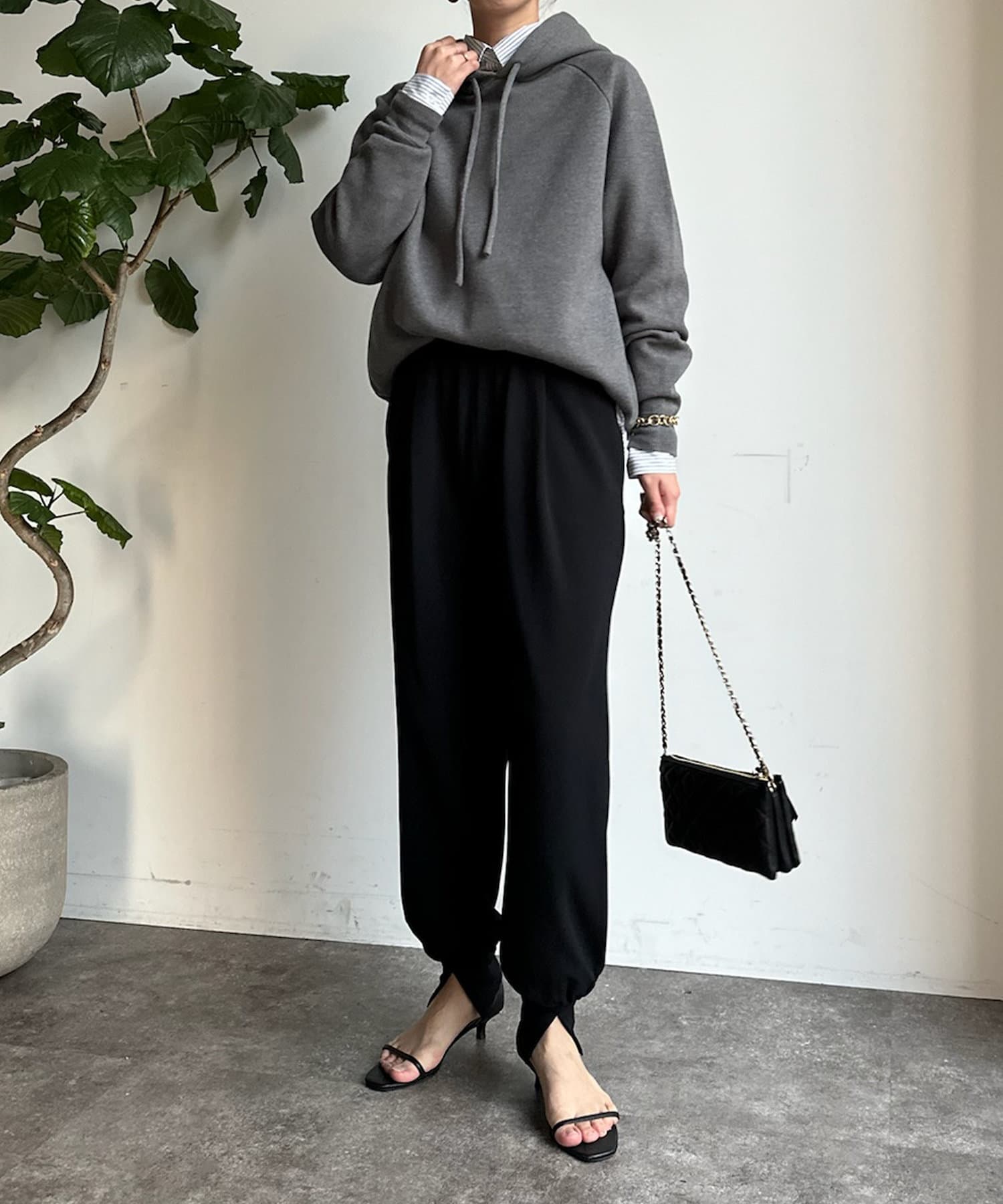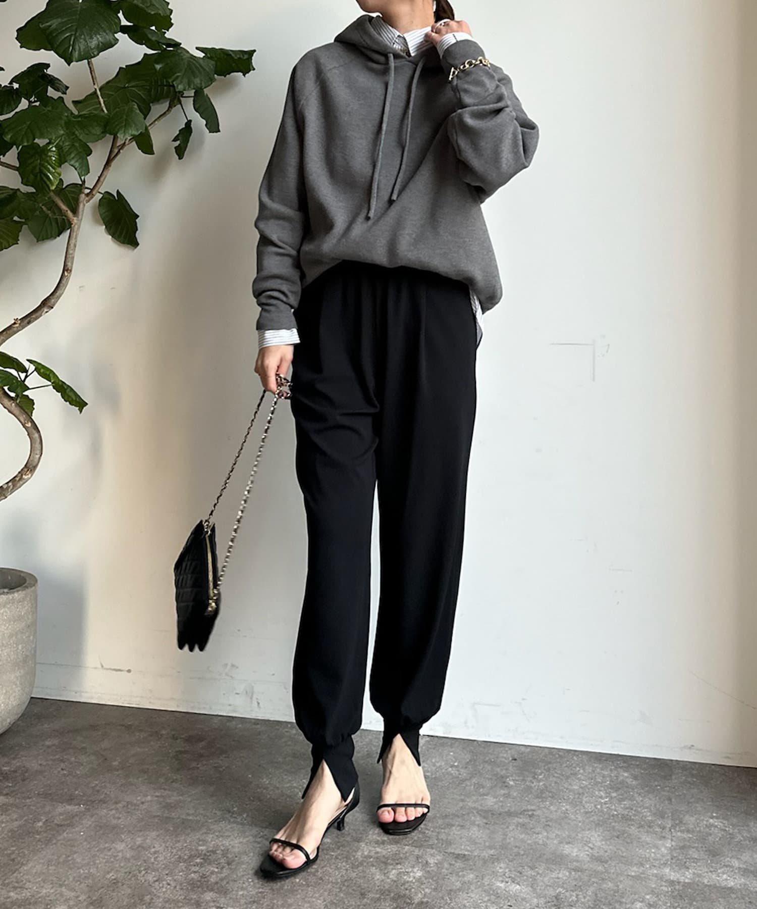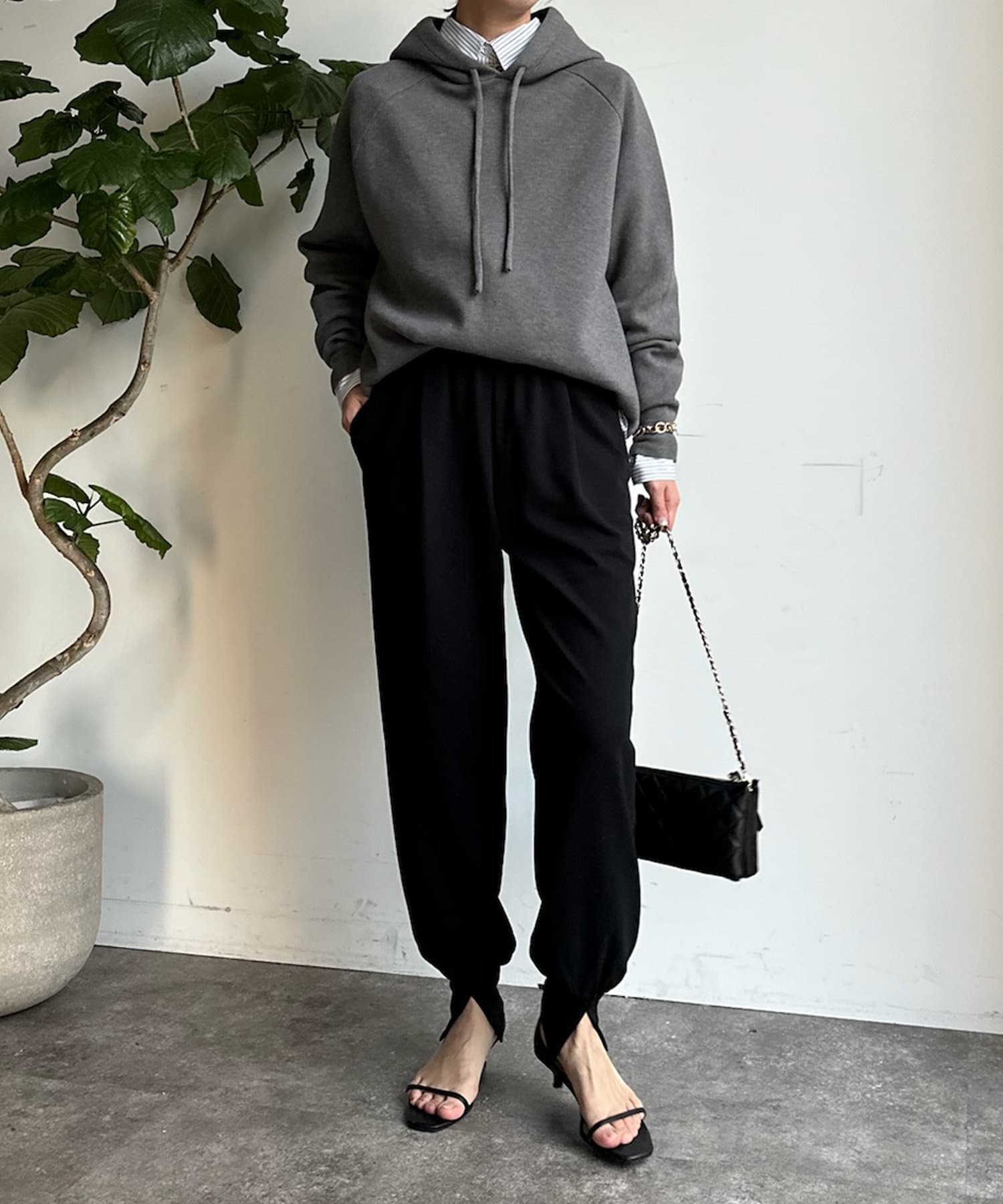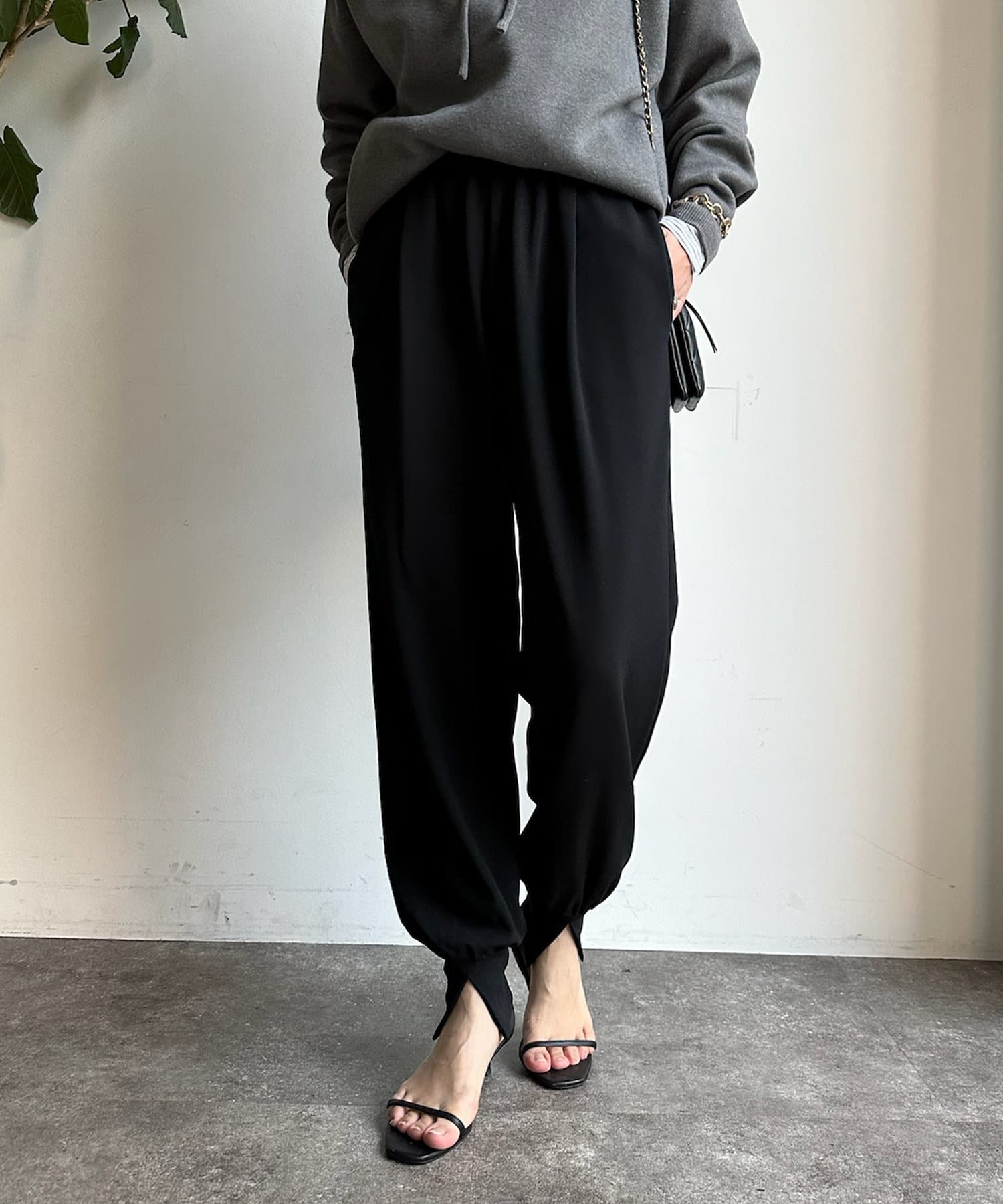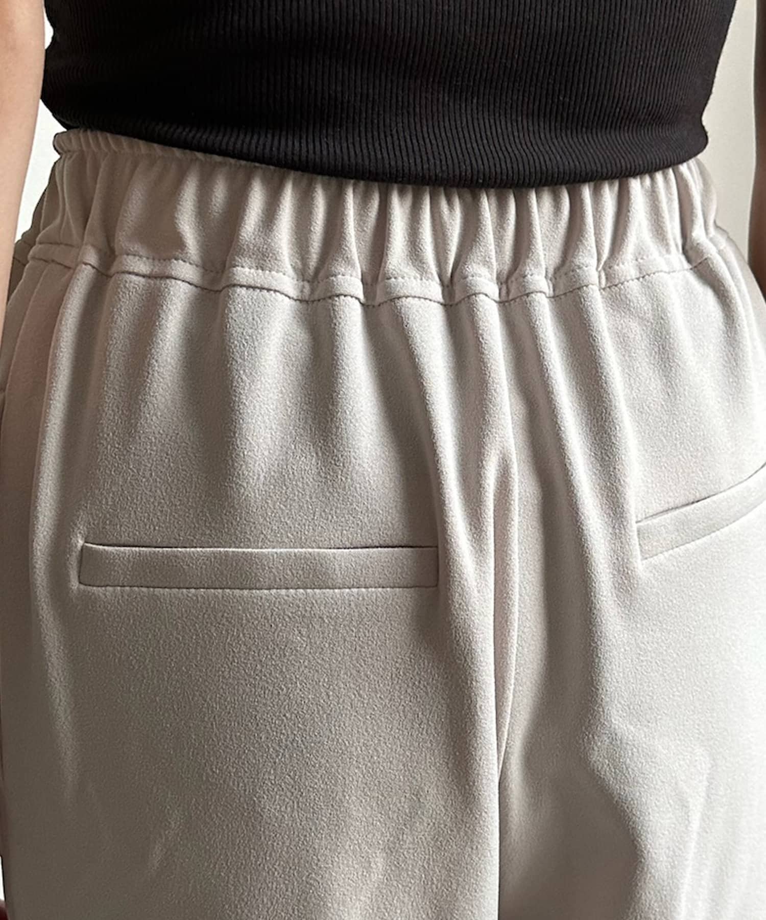 フロント部分にタックを施し、裾にはさり気なくスリットをプラス。細かなデザインで、ワンランク上のイージーパンツに。