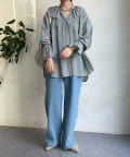 淡いブルーとオフホワイトの2カラー展開で、爽やかな印象の1着。