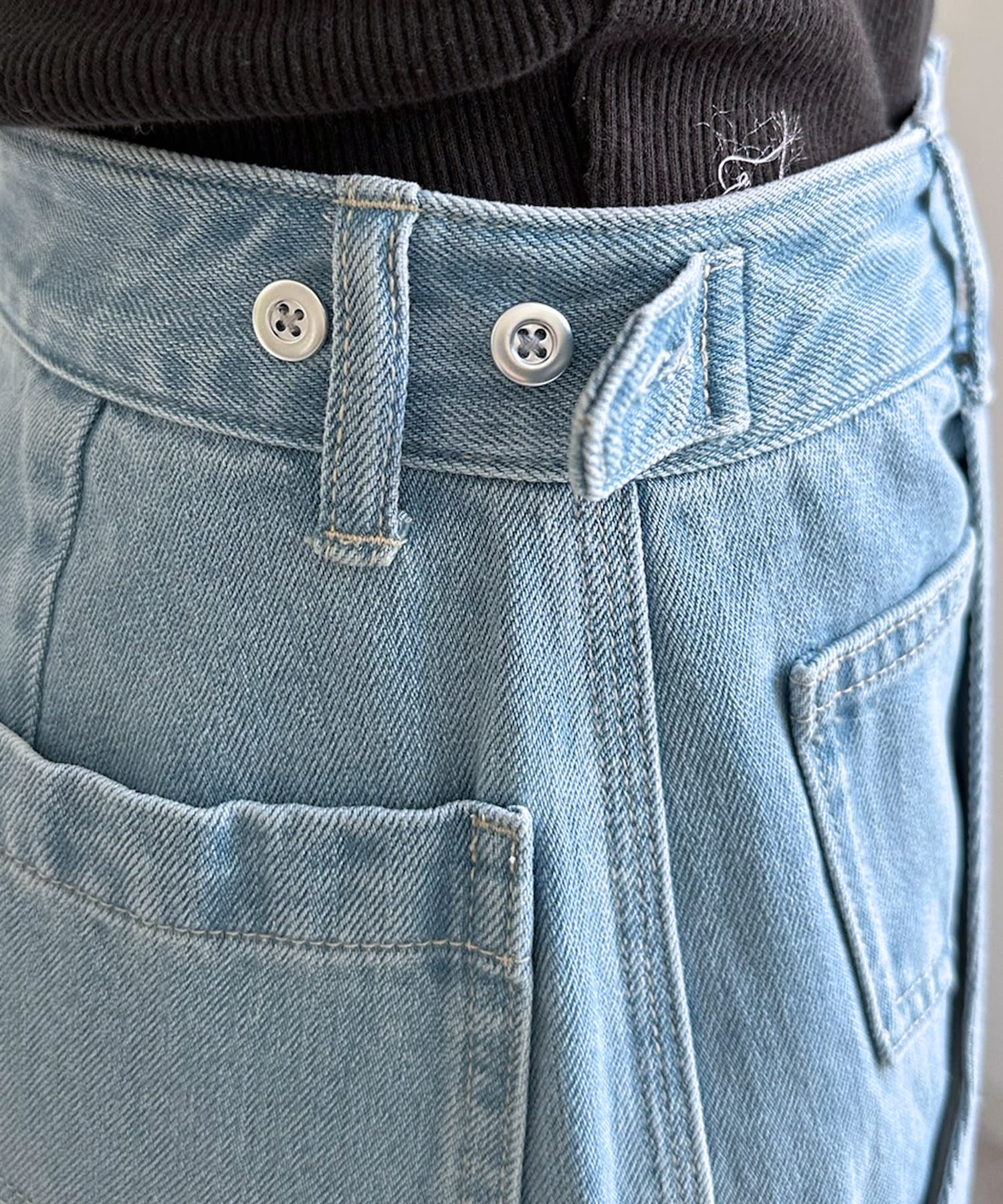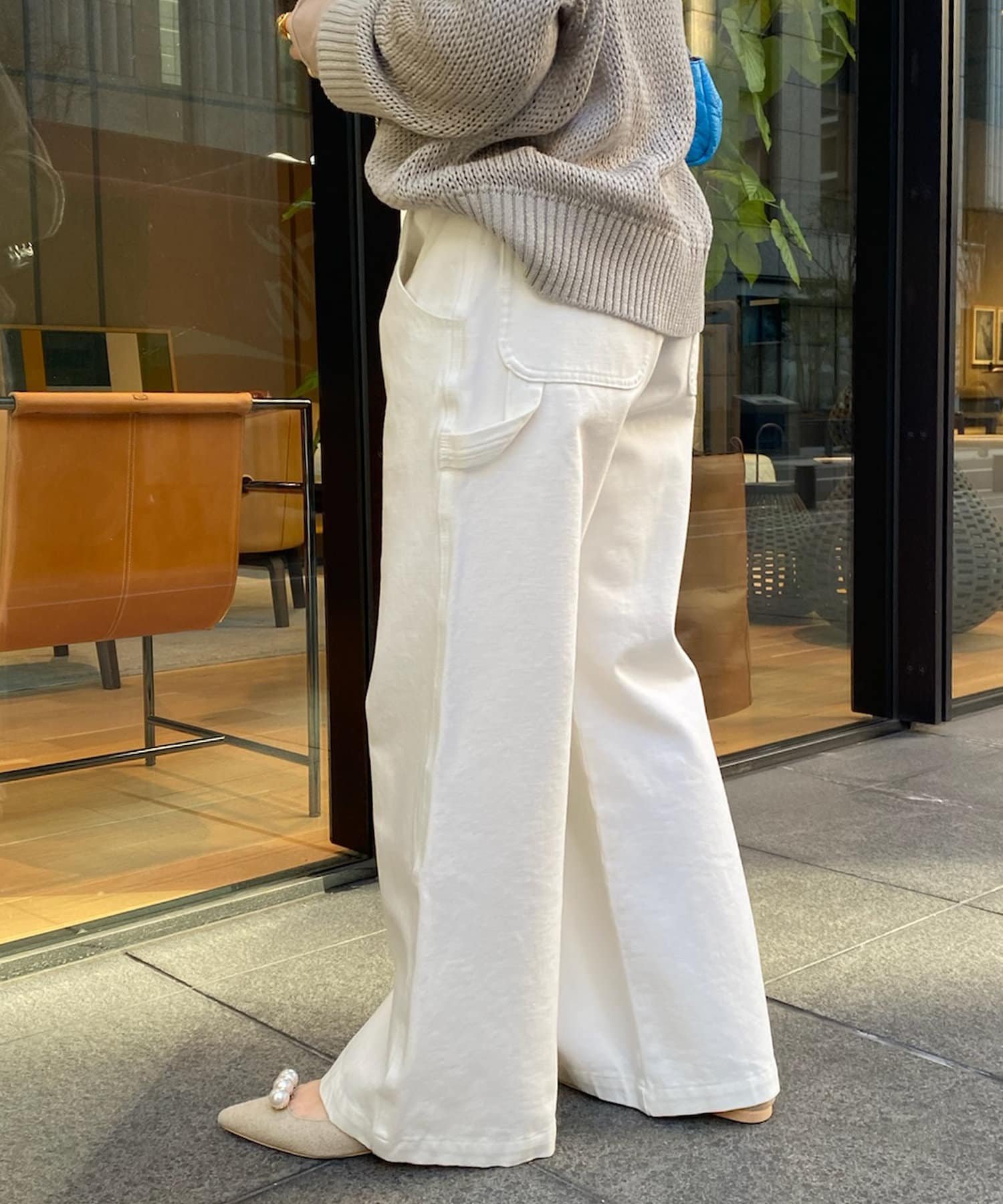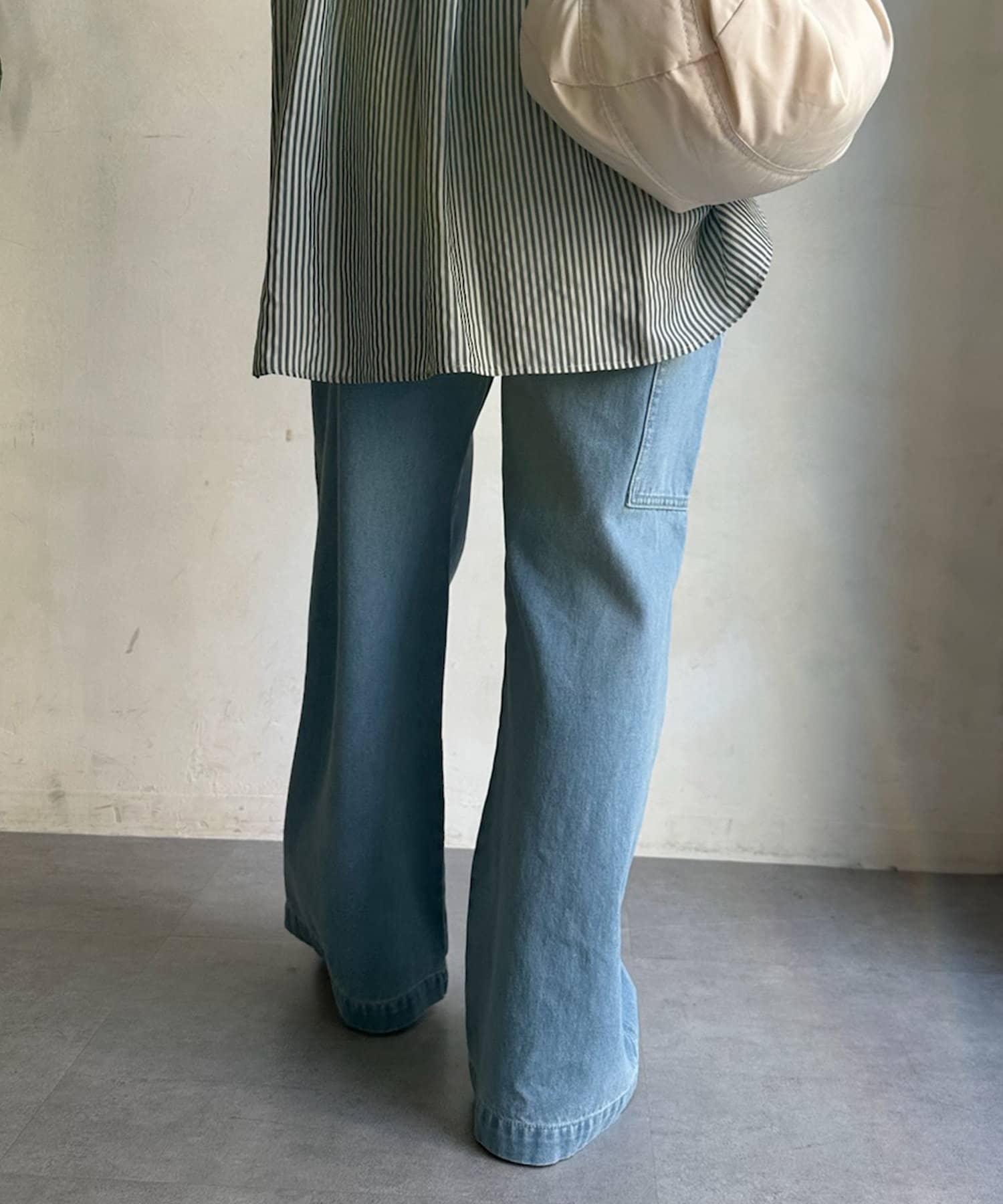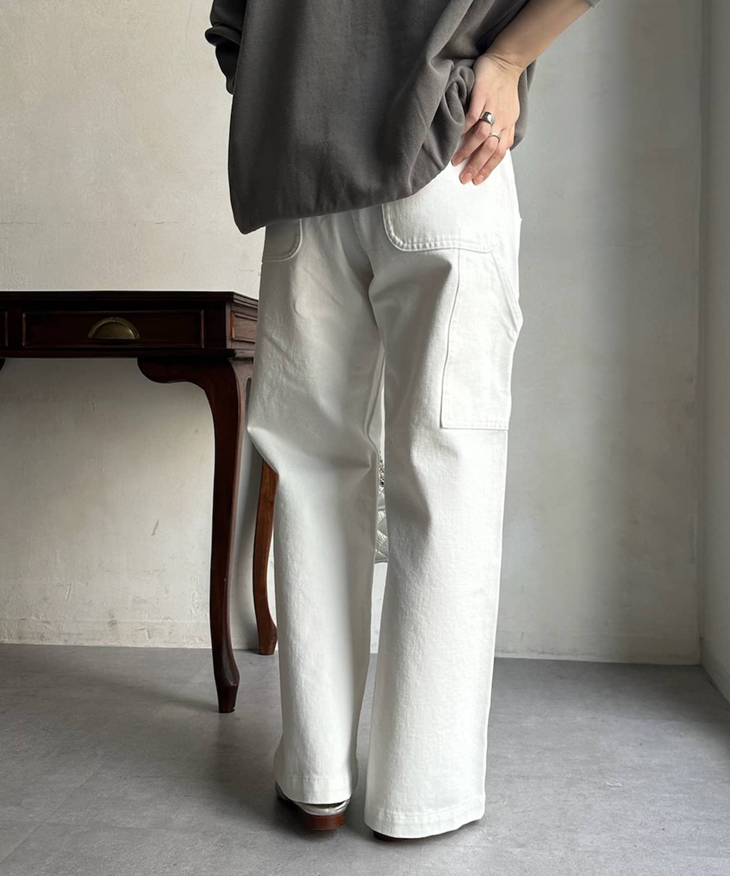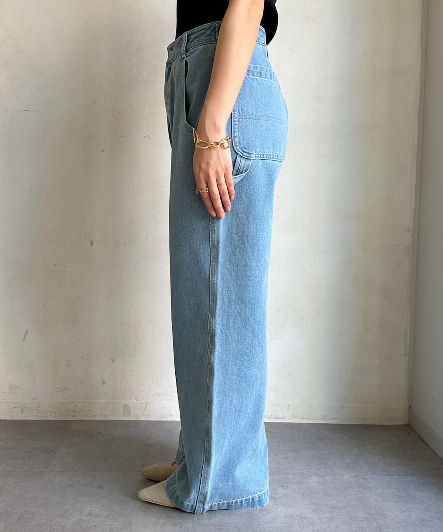 大きく施されたサイドのポケットやループなど、ペインターパンツのディティールは残しつつ、柔らかなデニム地に落とし込んだ1着。