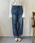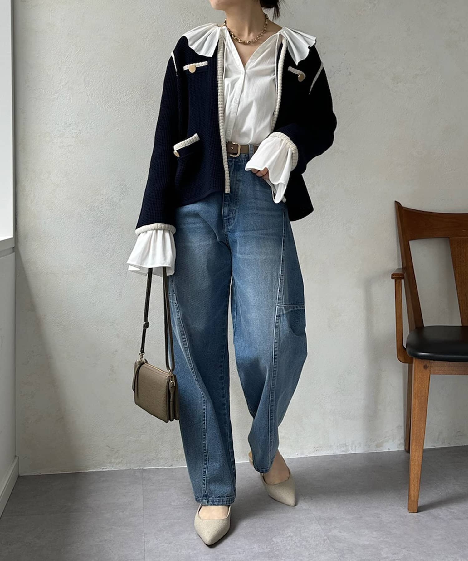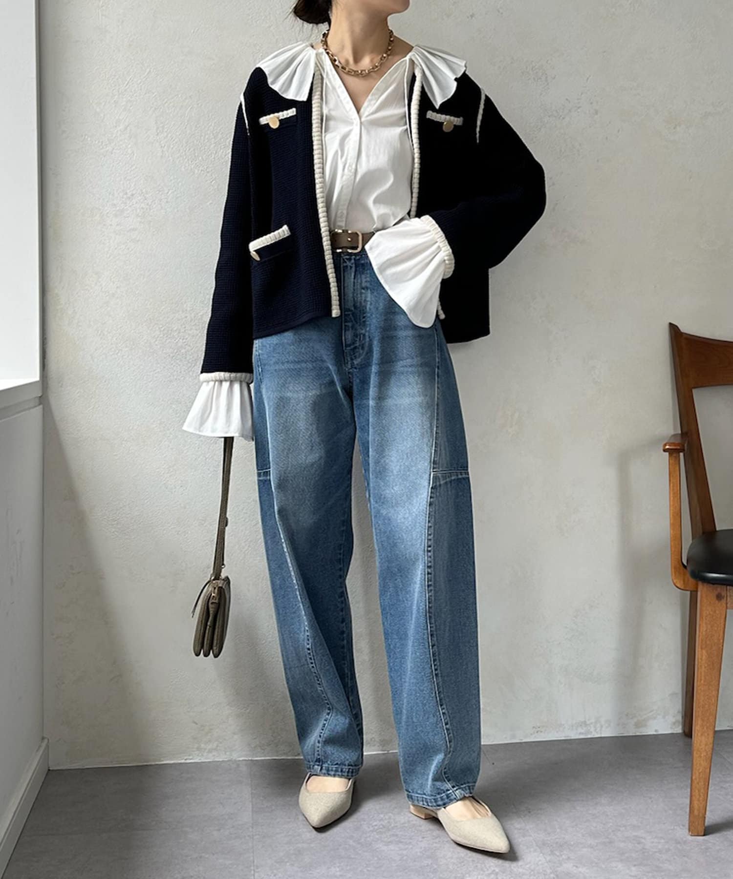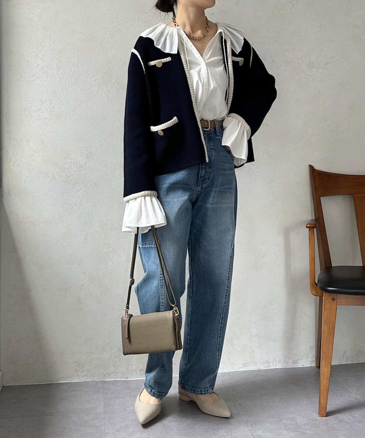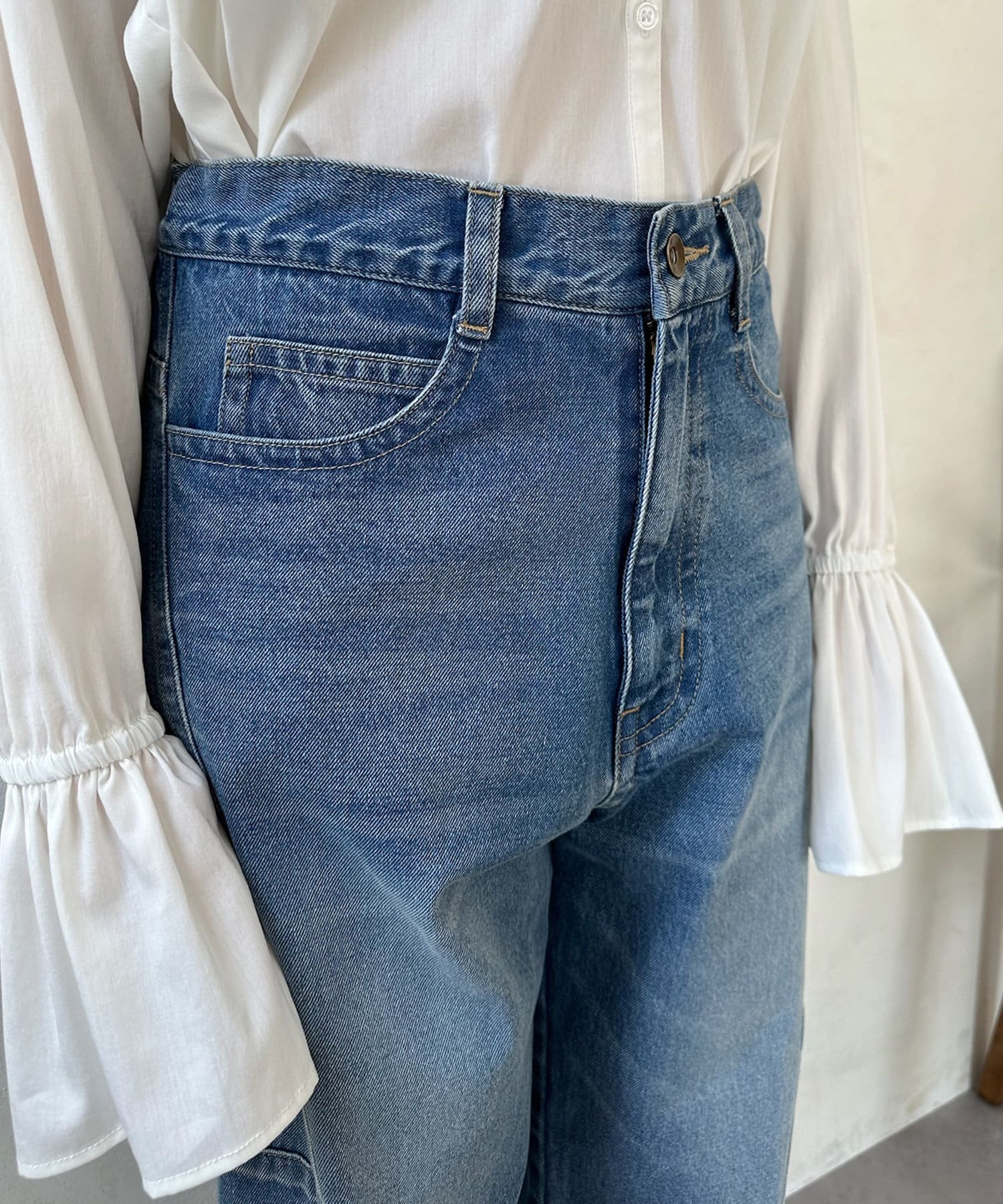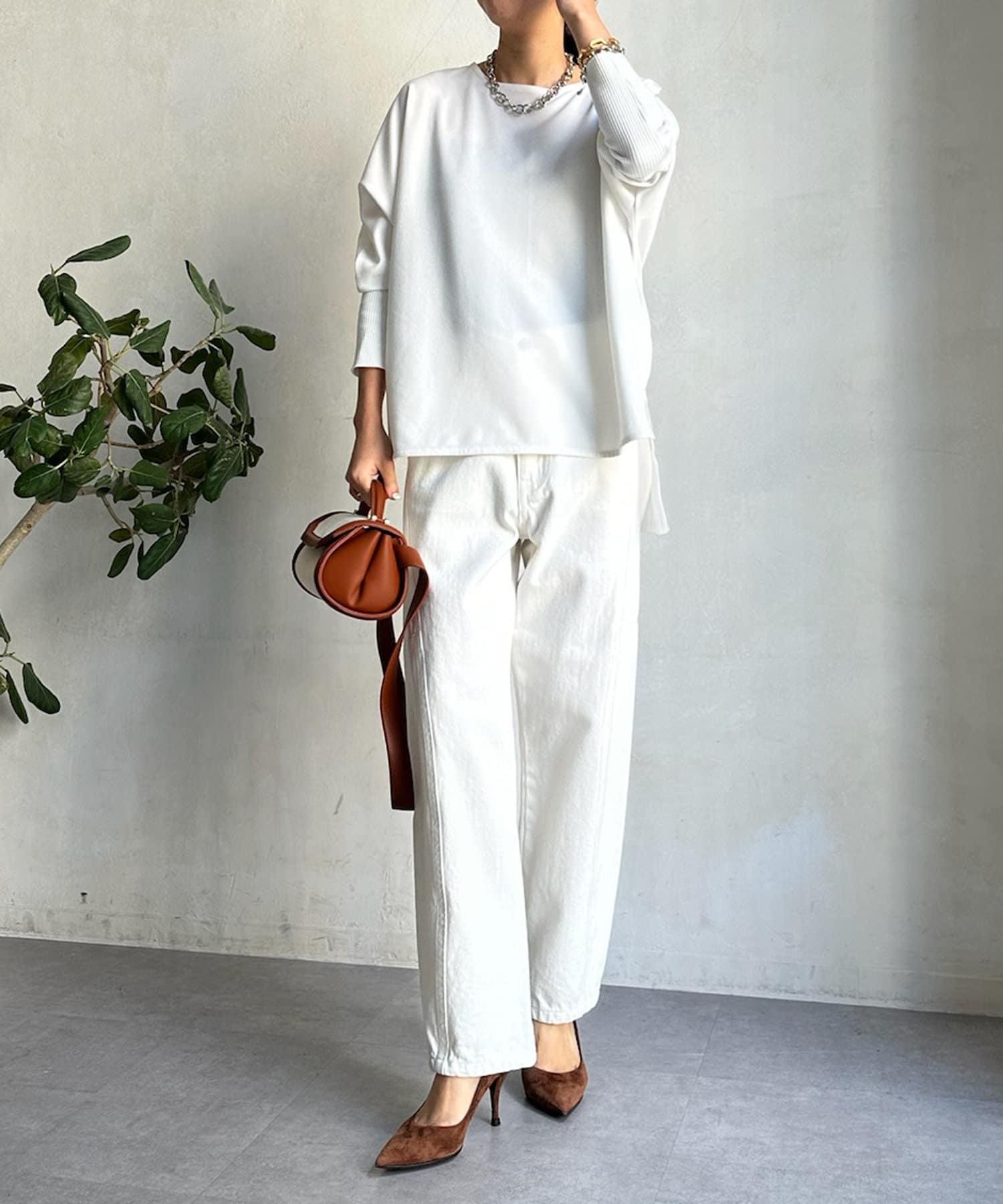 トレンドのショート丈のトップスと合わせるとバランスが取れて簡単にお洒落スタイルになります。