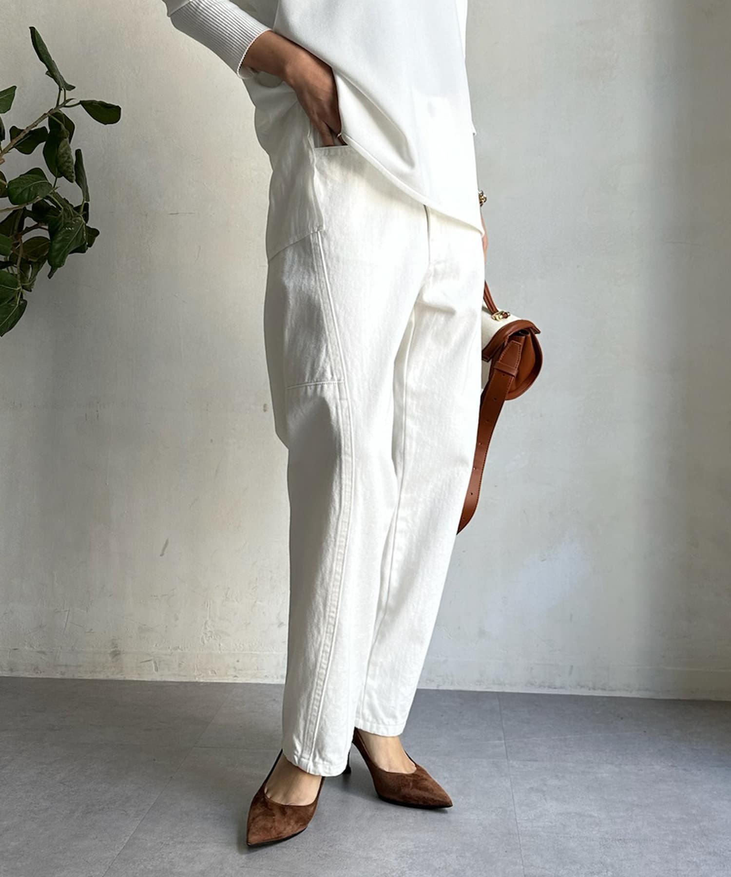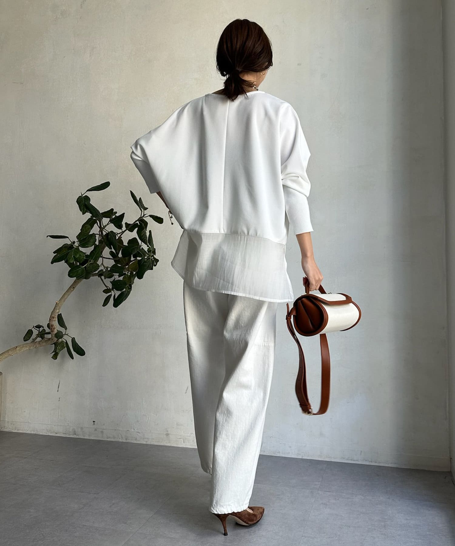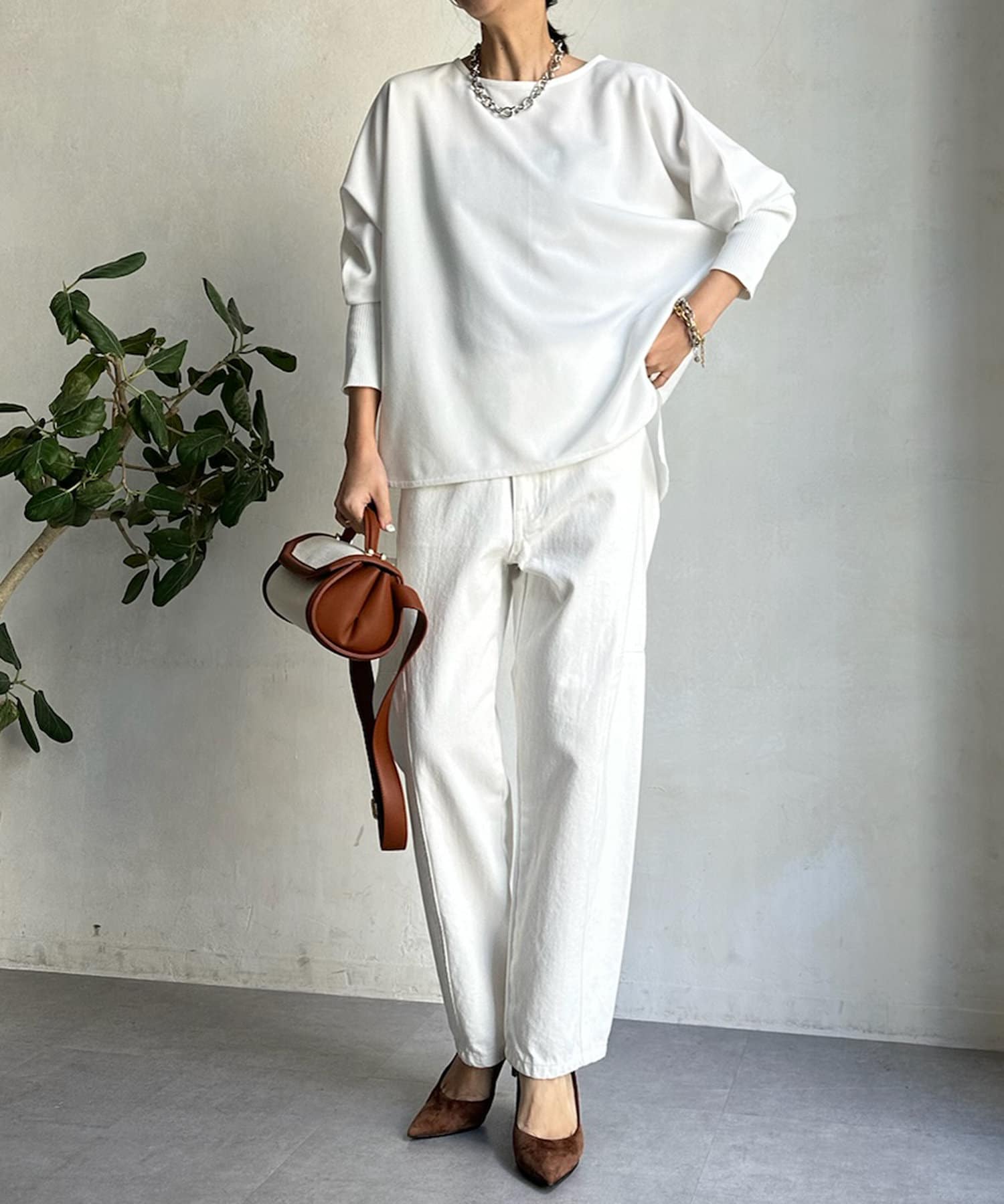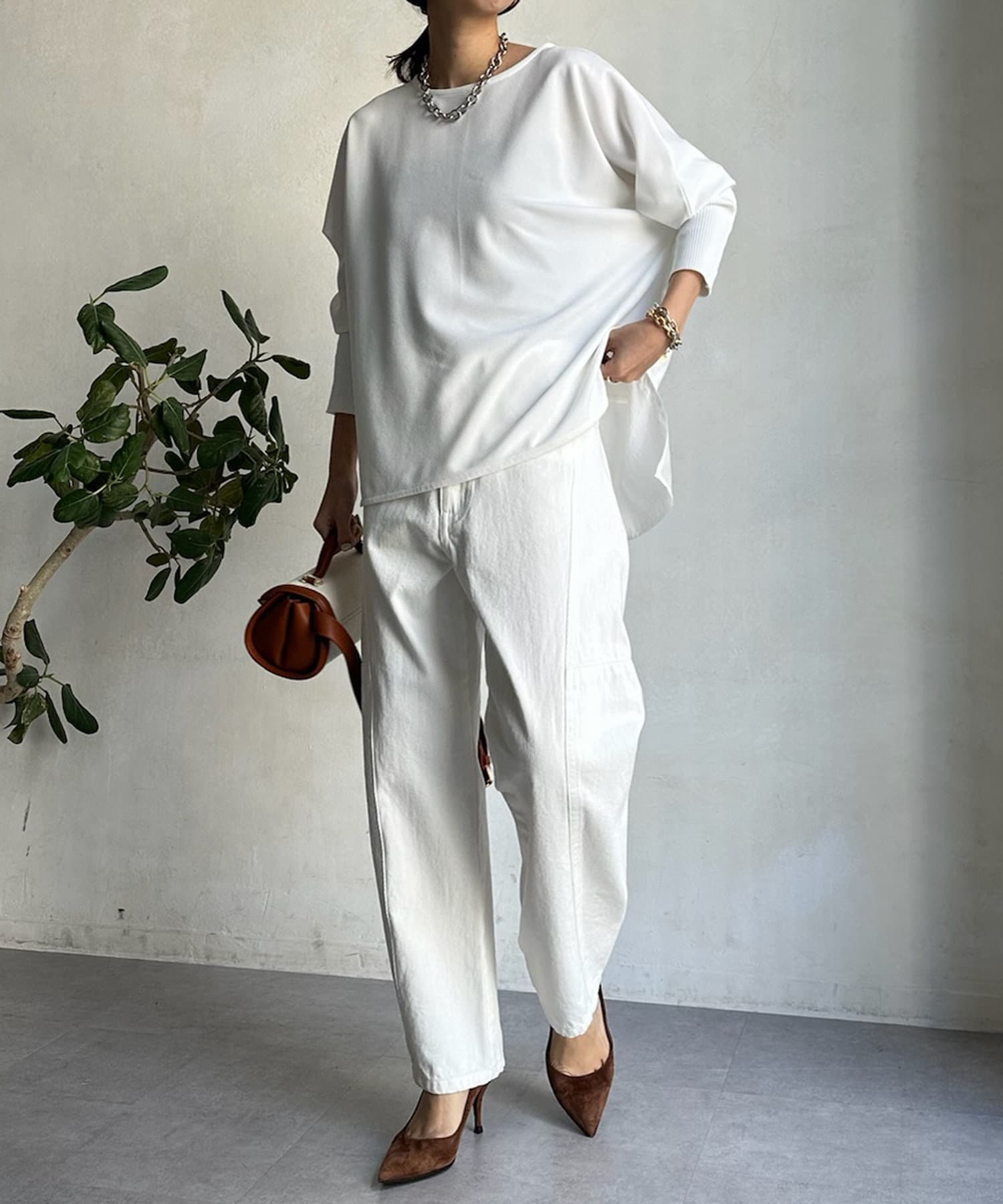 カーブラインが目を惹くシルエットで、新しいスタイルをコーデにプラスできます。