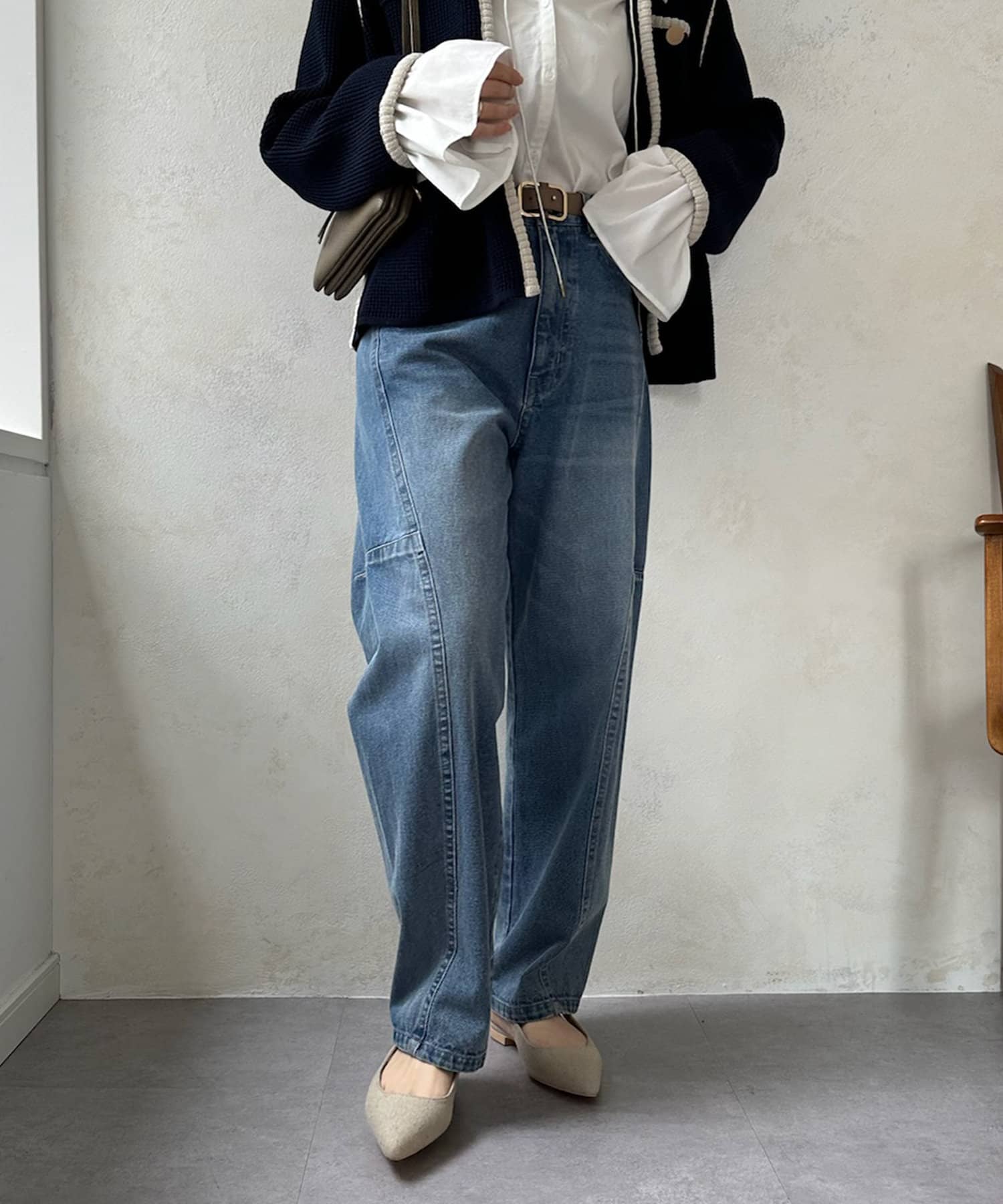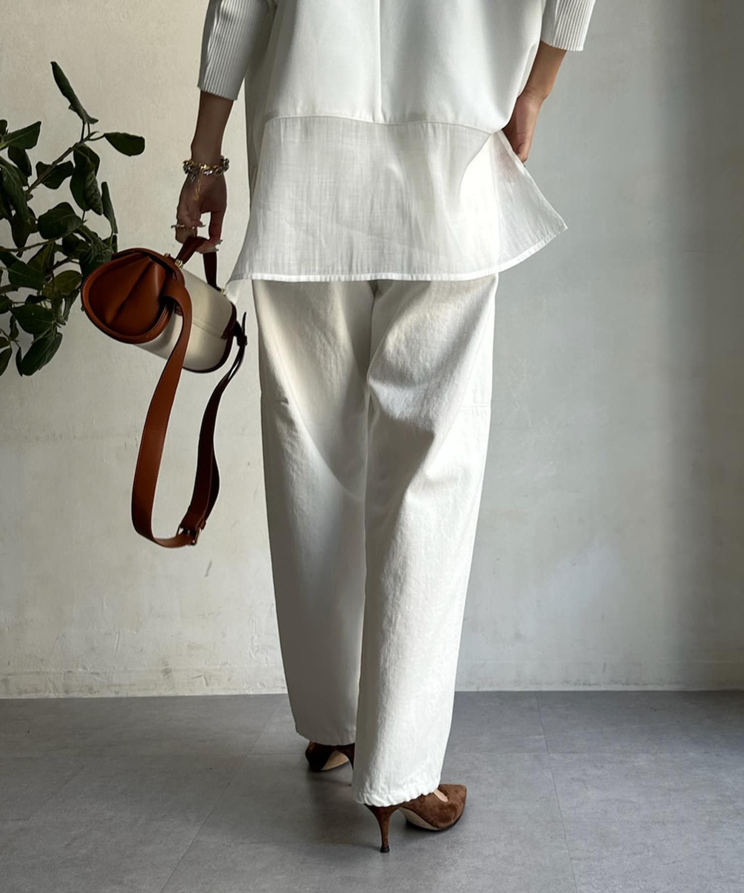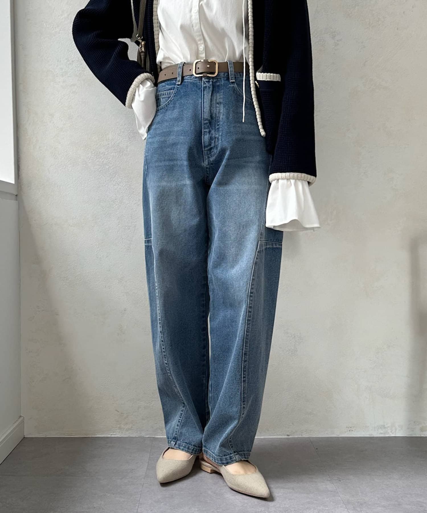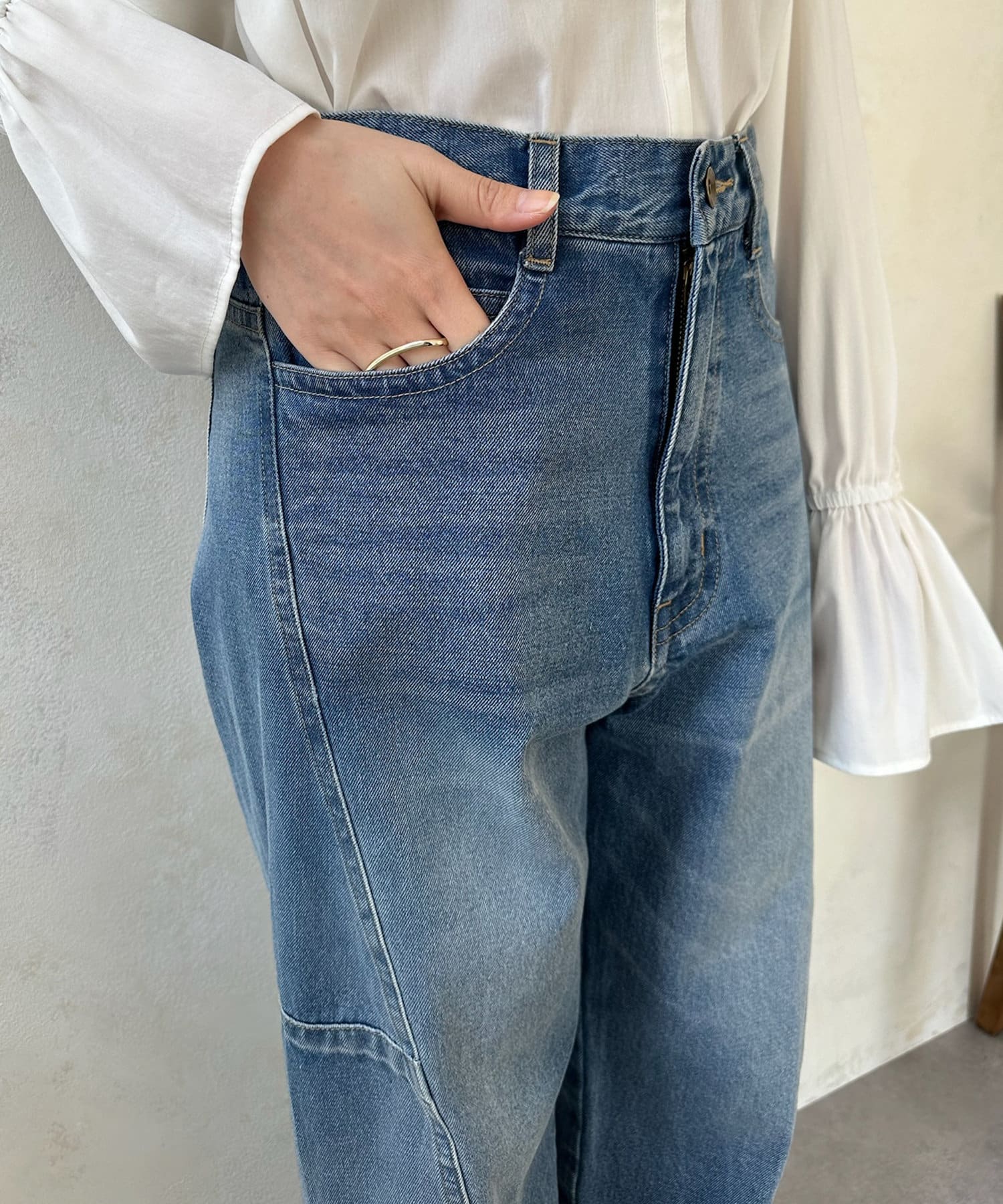 カーブラインが目を惹くシルエットで、新しいスタイルをコーデにプラスできます。