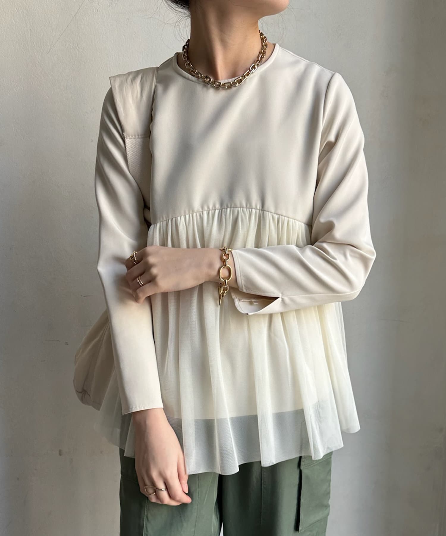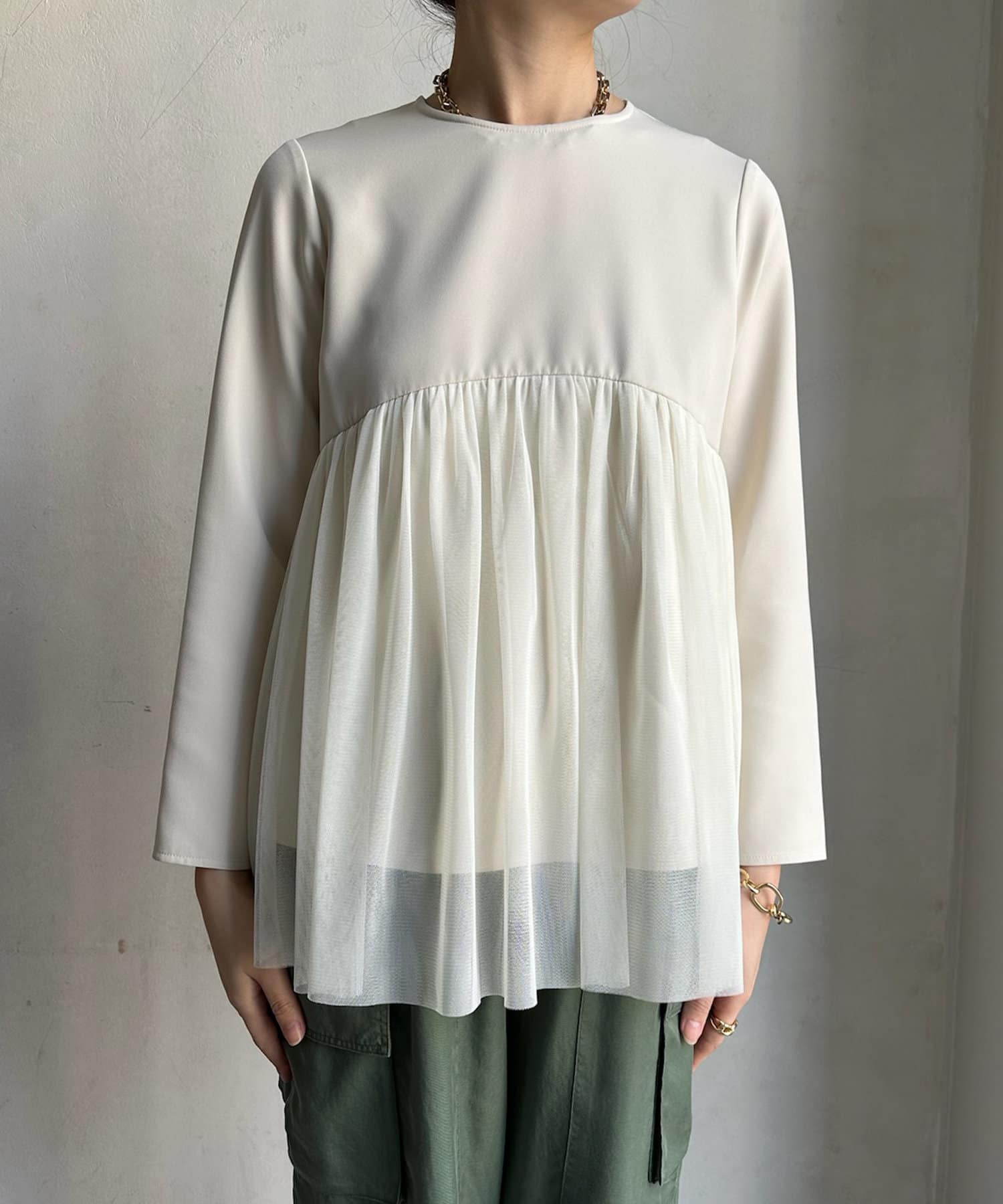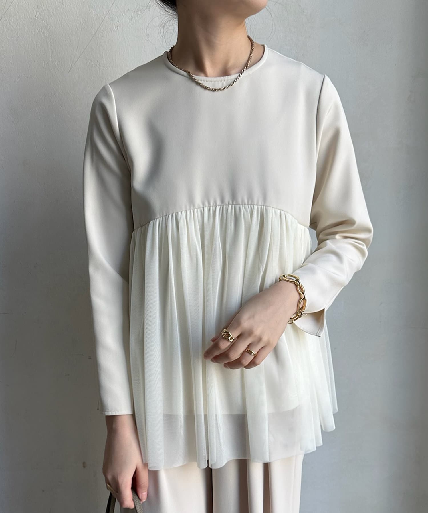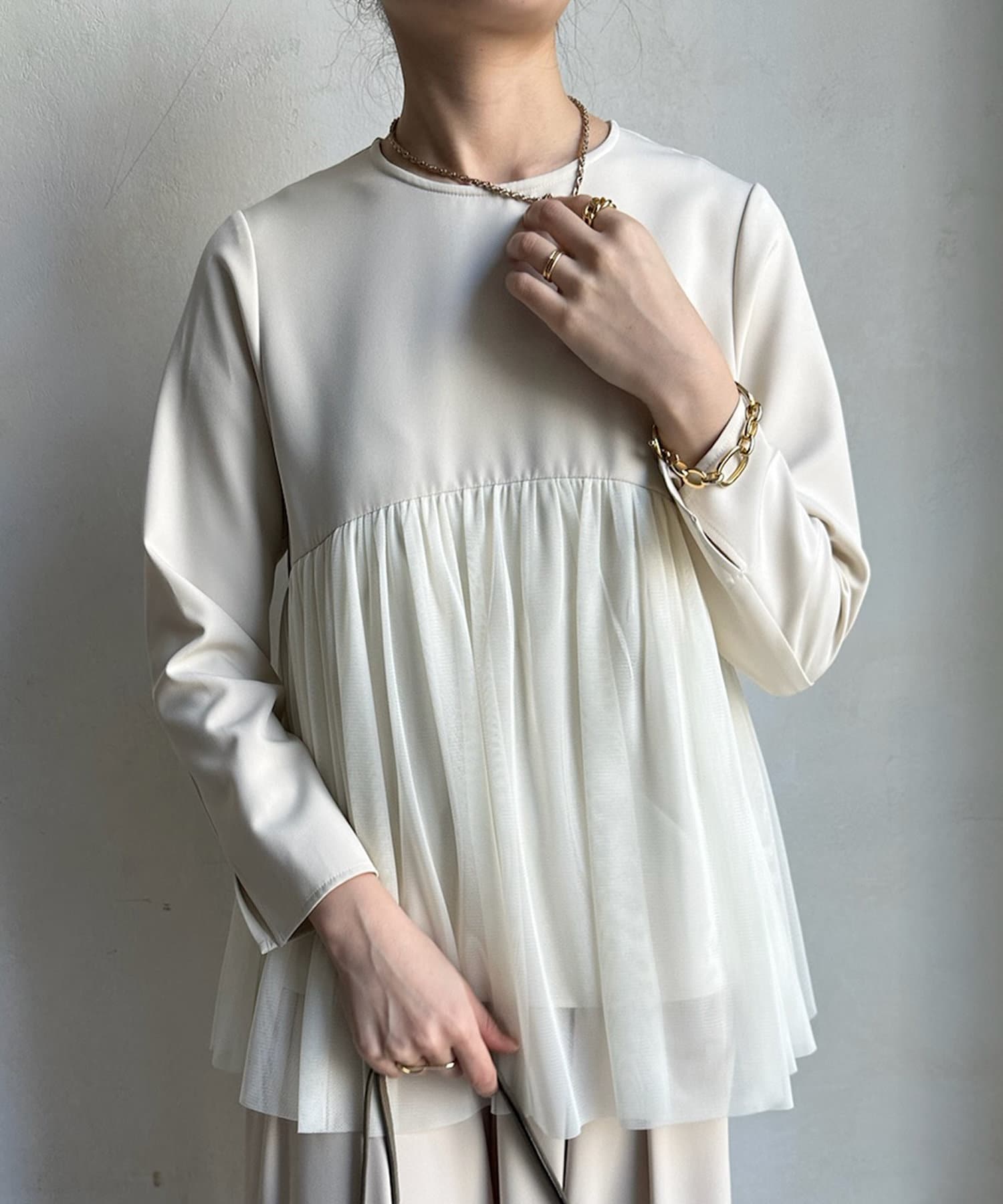 トレンド感も華やかさも叶えてくれる、チュールがドッキングされたブラウス!