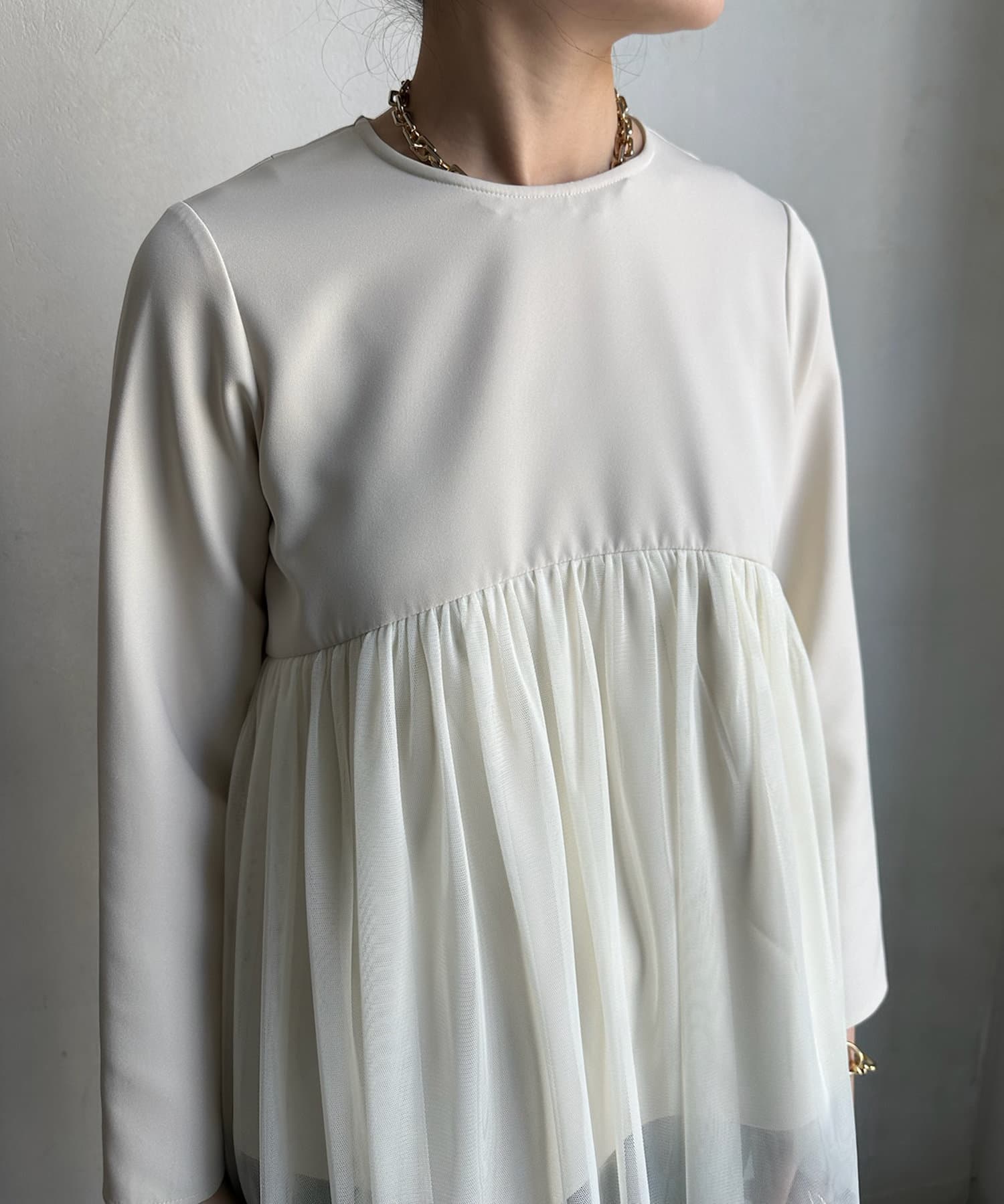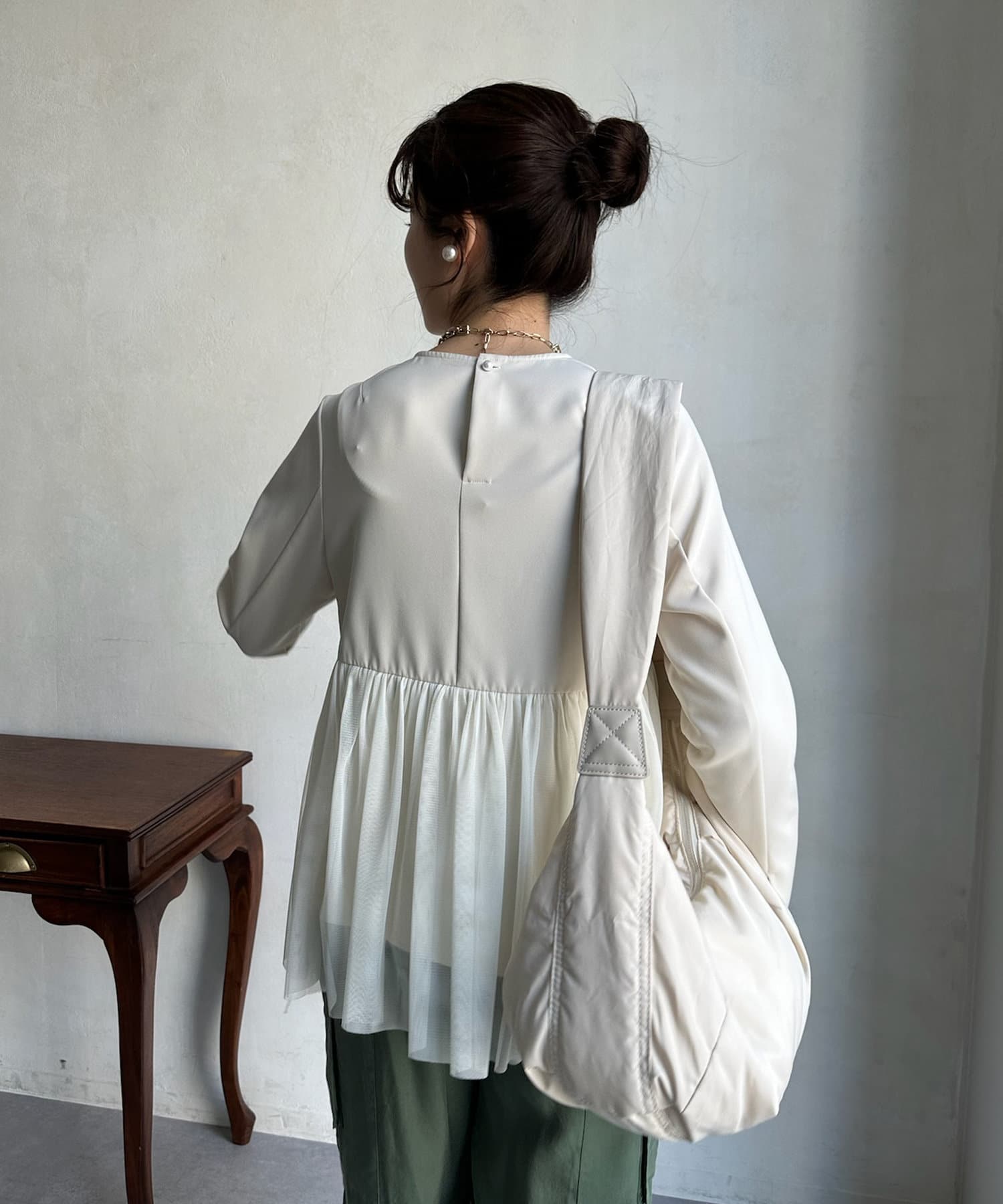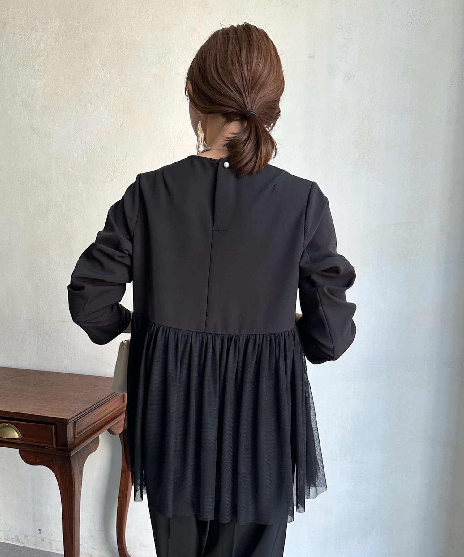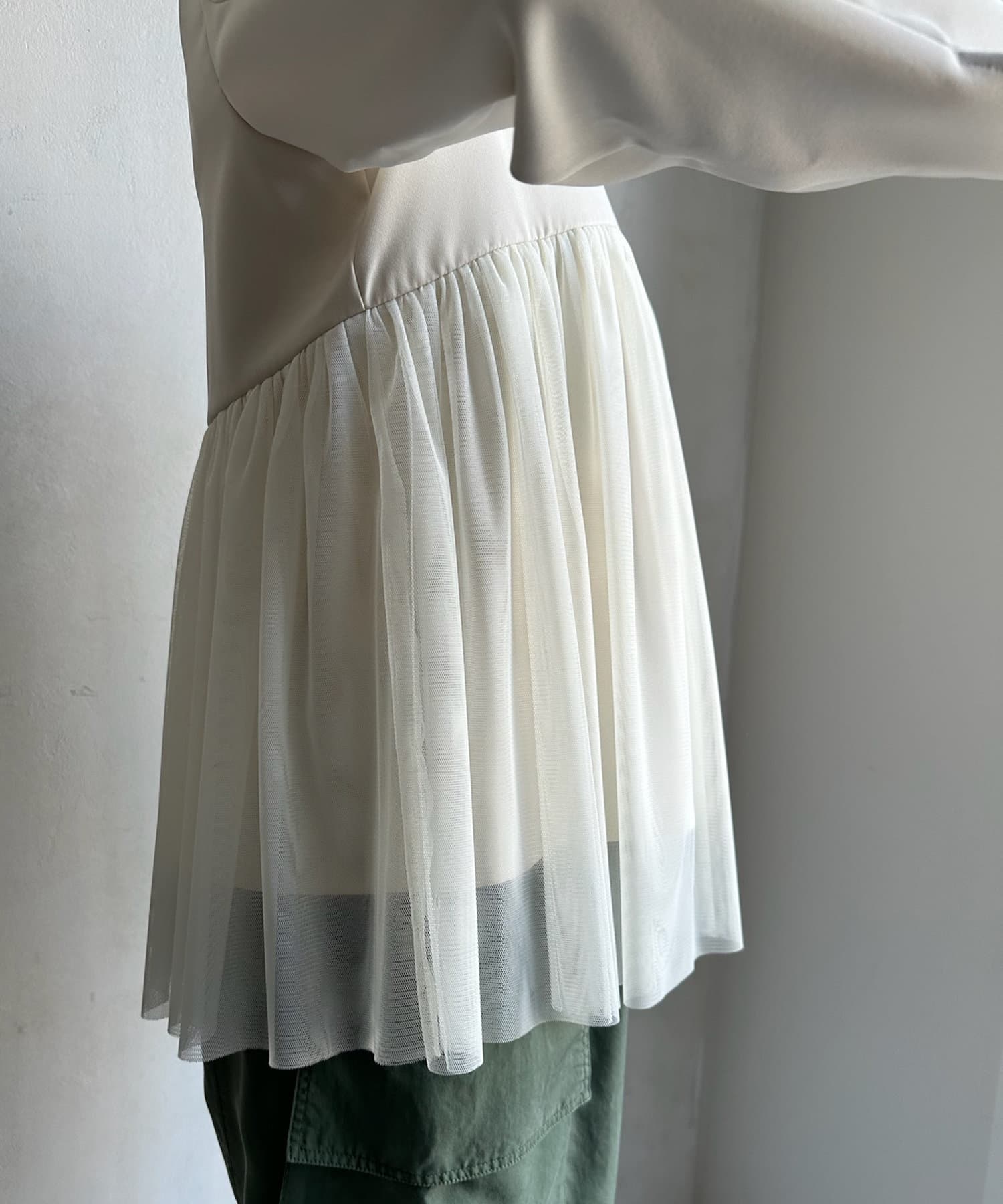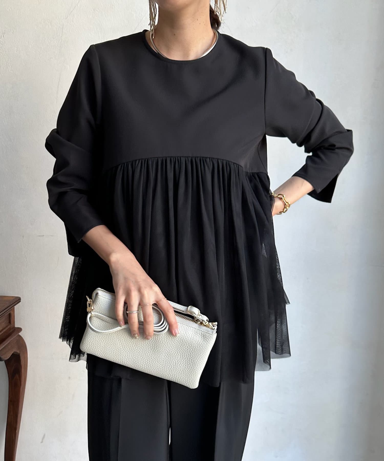 トレンド感も華やかさも叶えてくれる、チュールがドッキングされたブラウス!