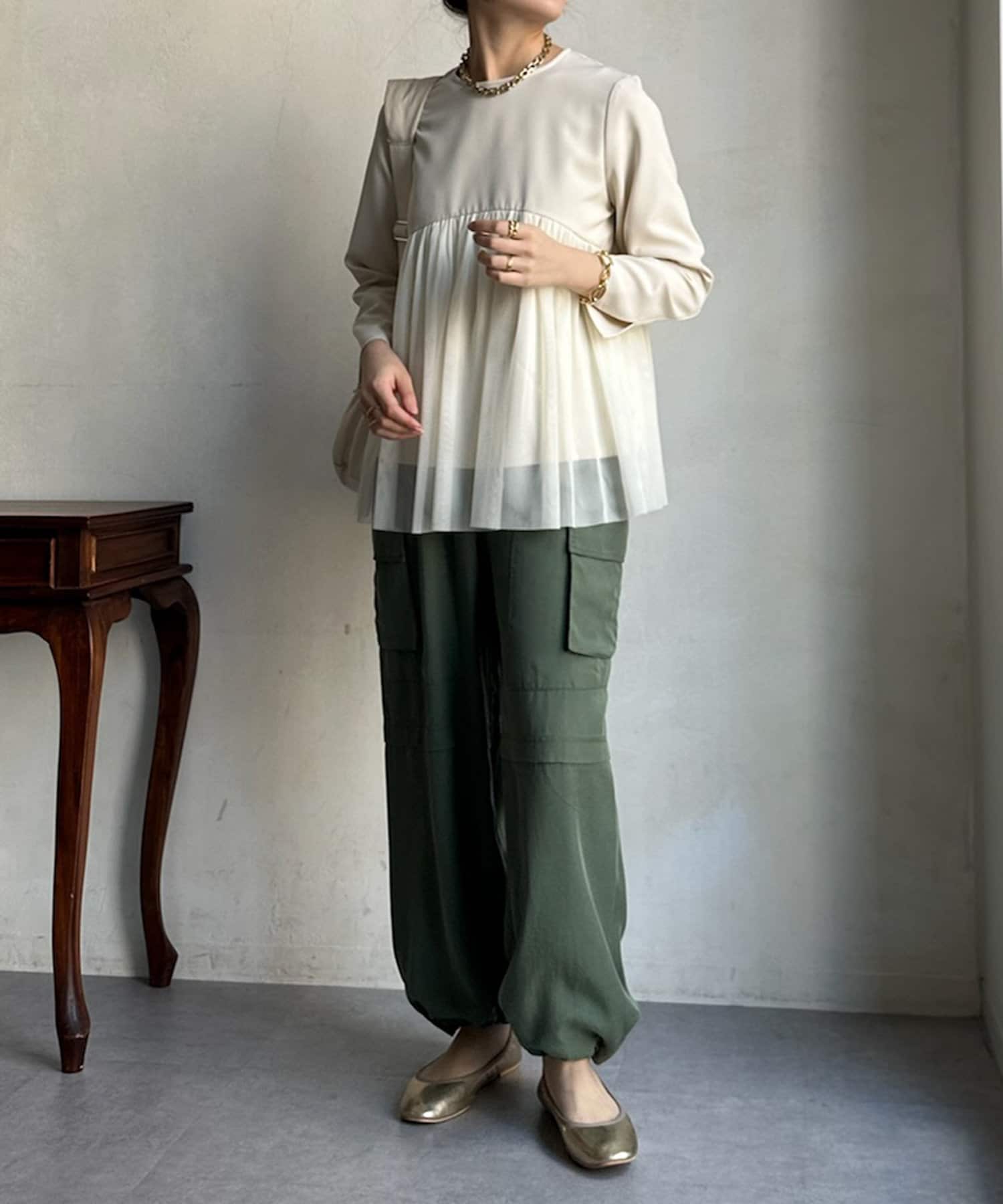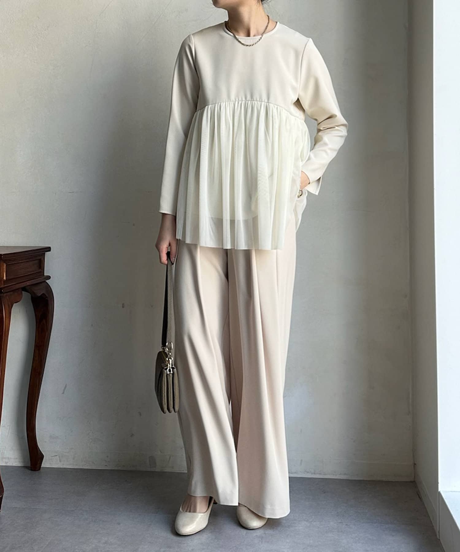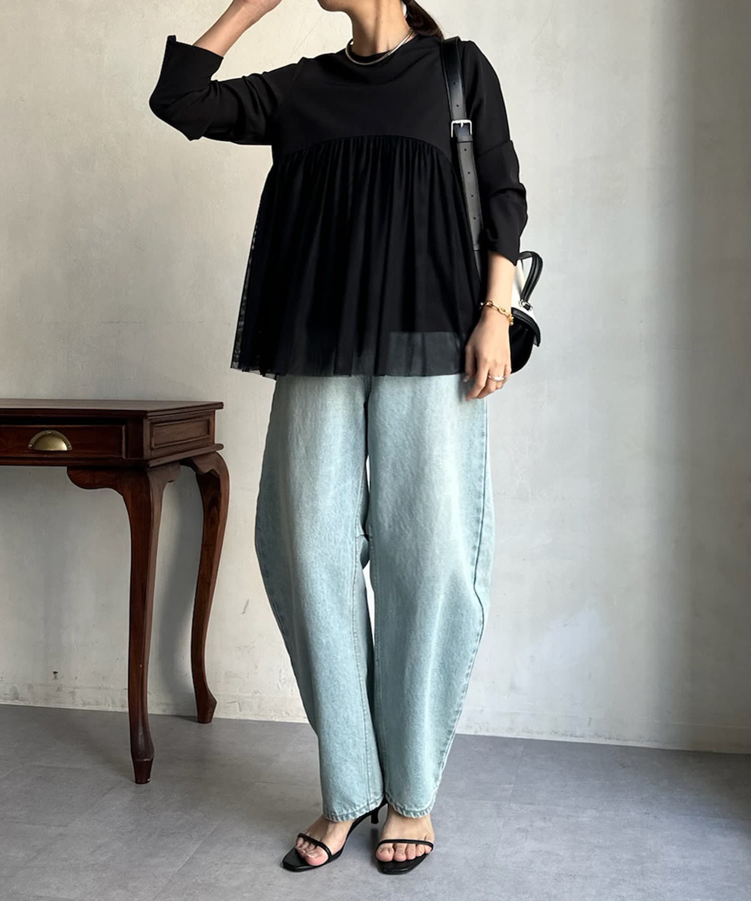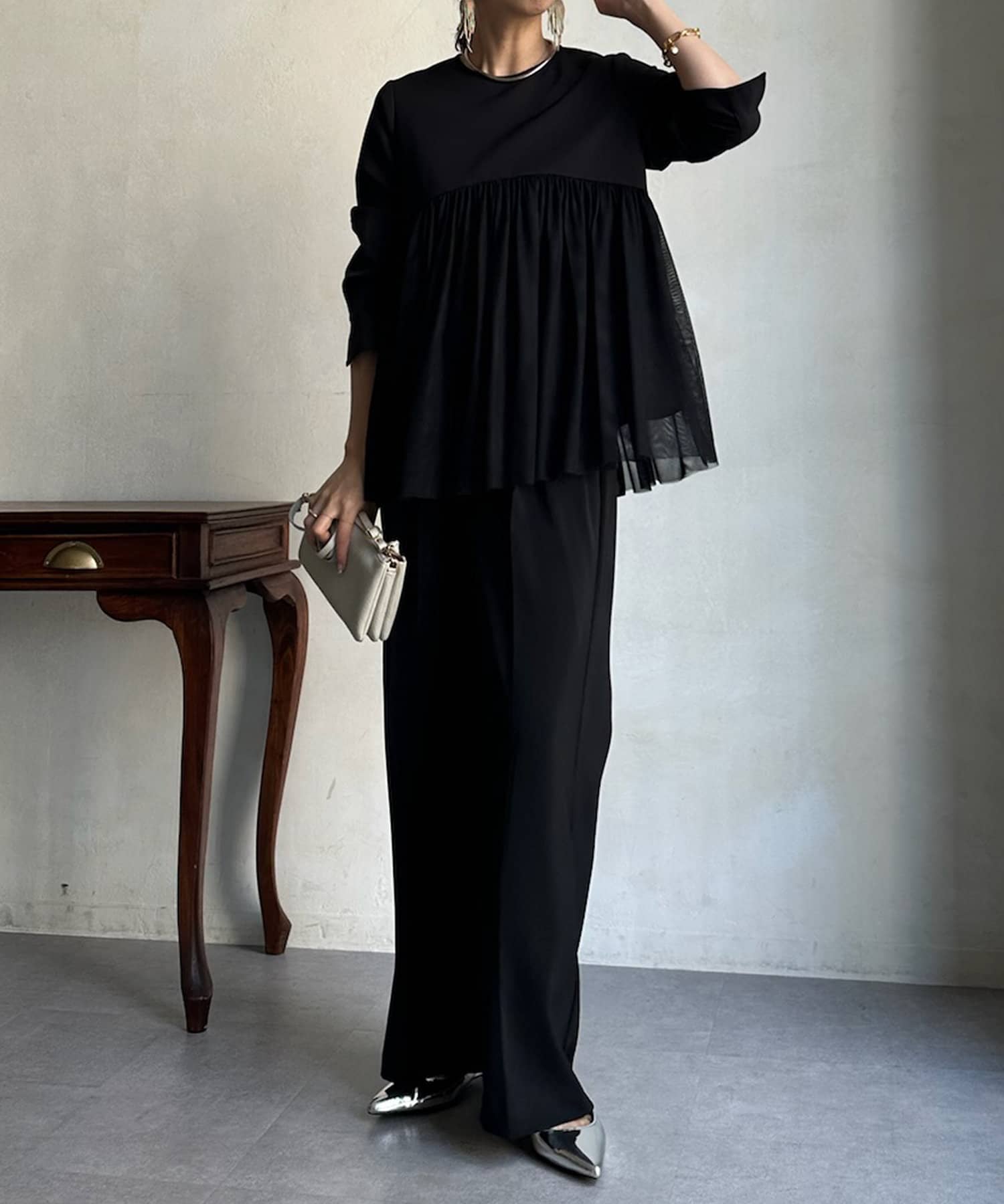 トレンド感も華やかさも叶えてくれる、チュールがドッキングされたブラウス!