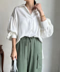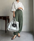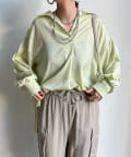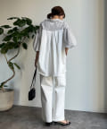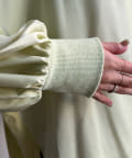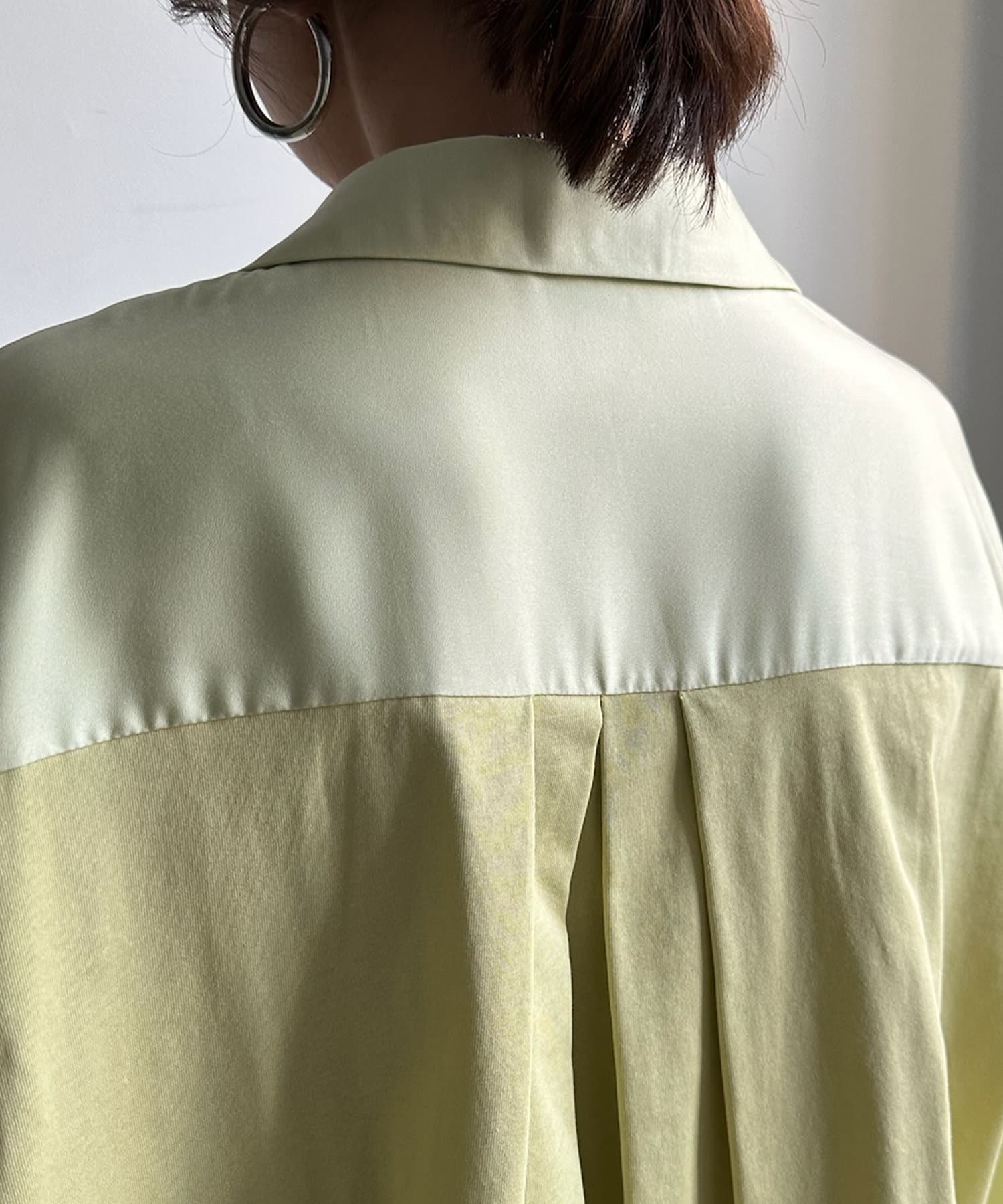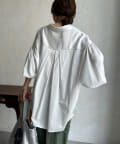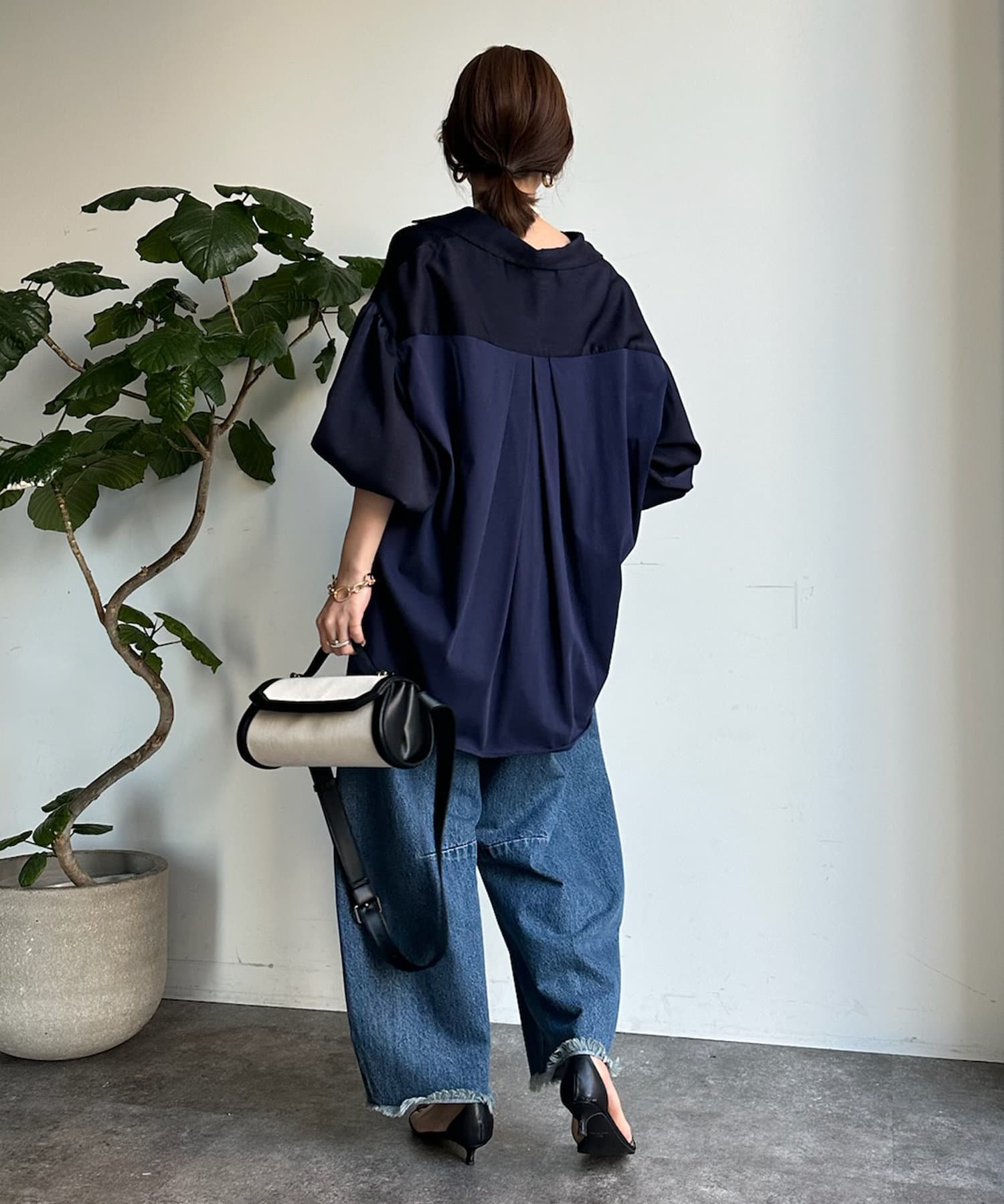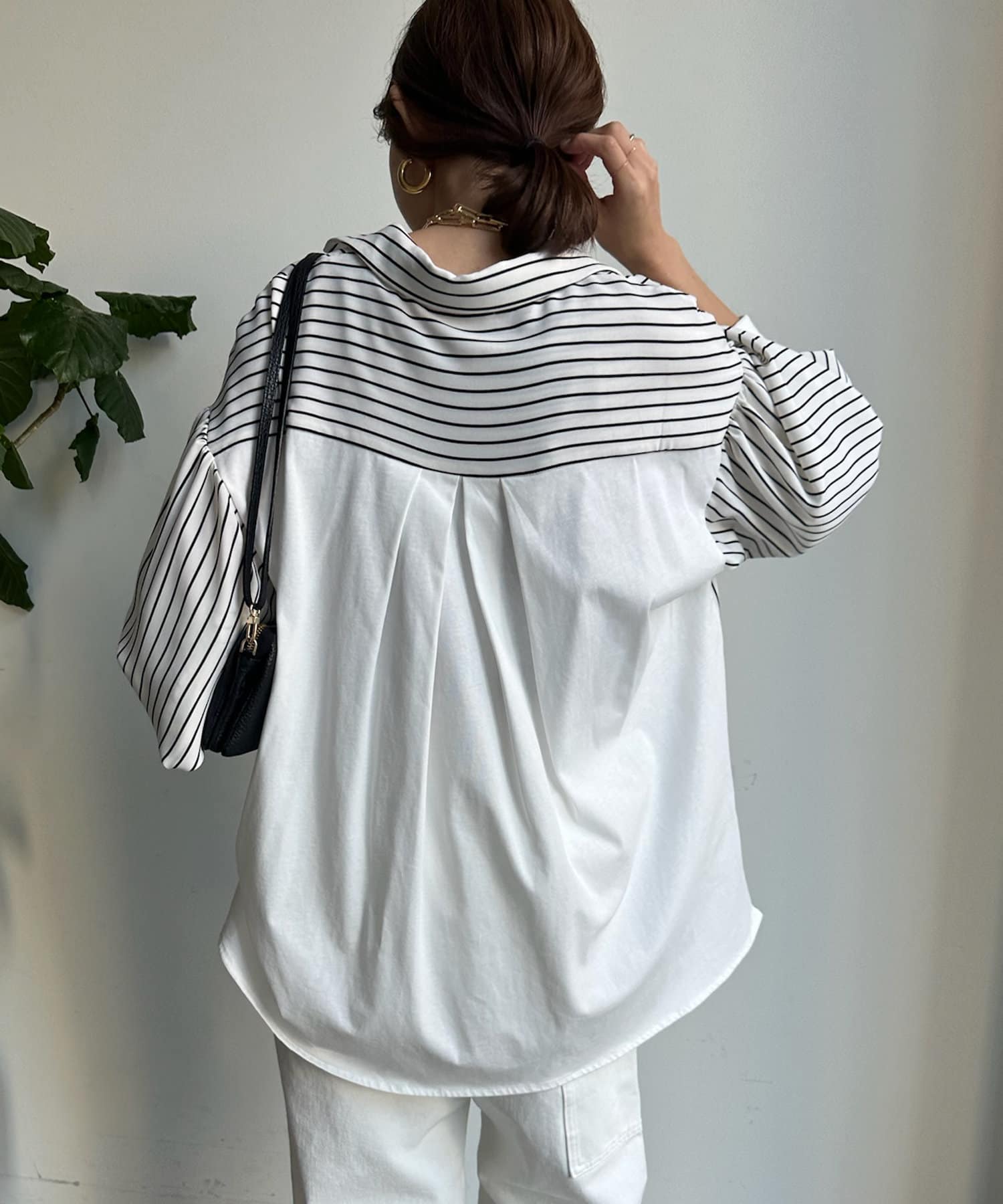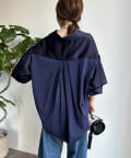 背中部分をカットソー素材に切り替え袖口はリブ仕様に仕上げ、ラフにさっと着られるブラウス。
