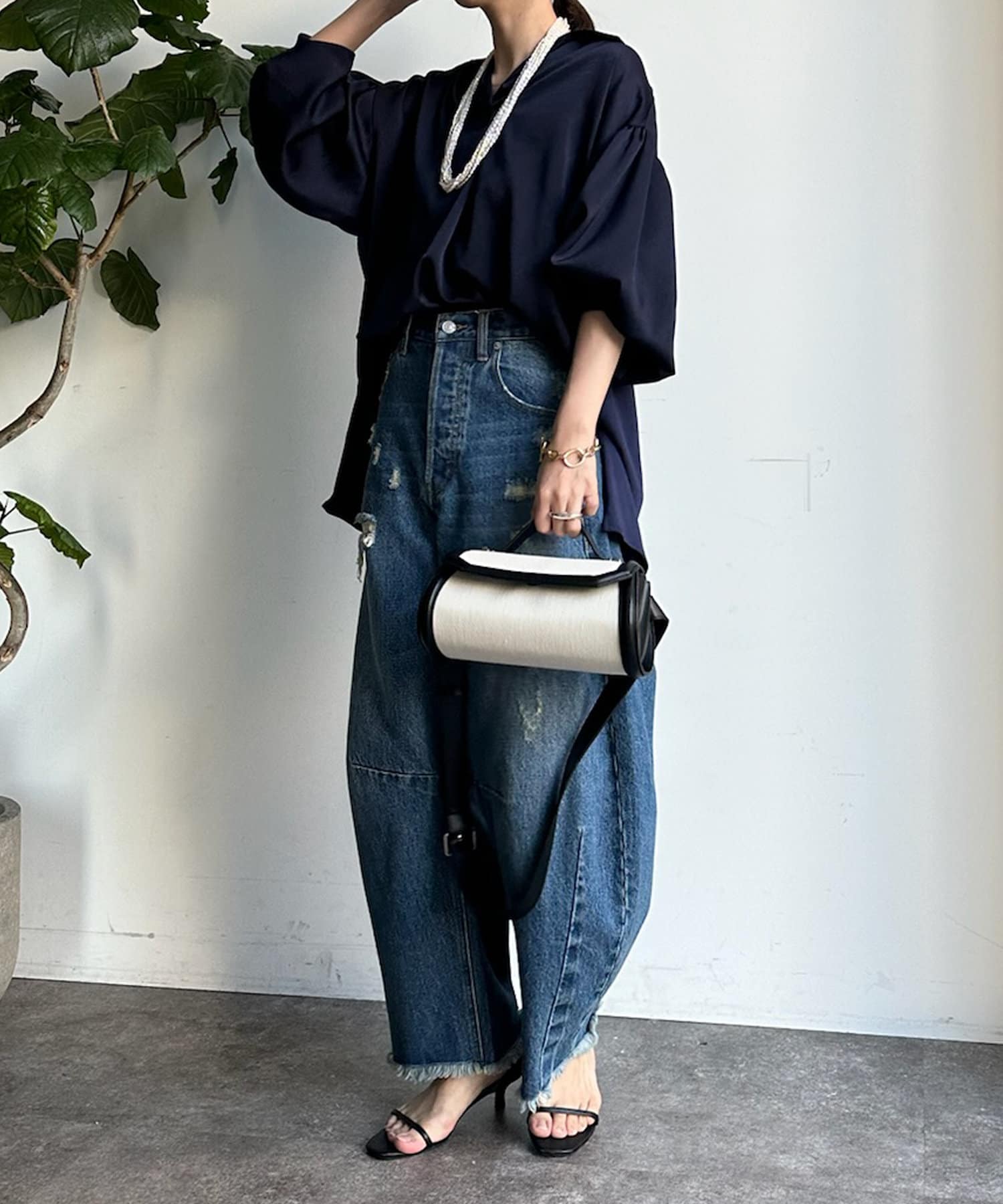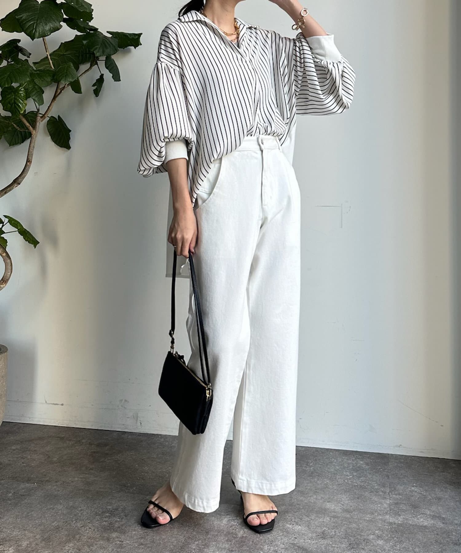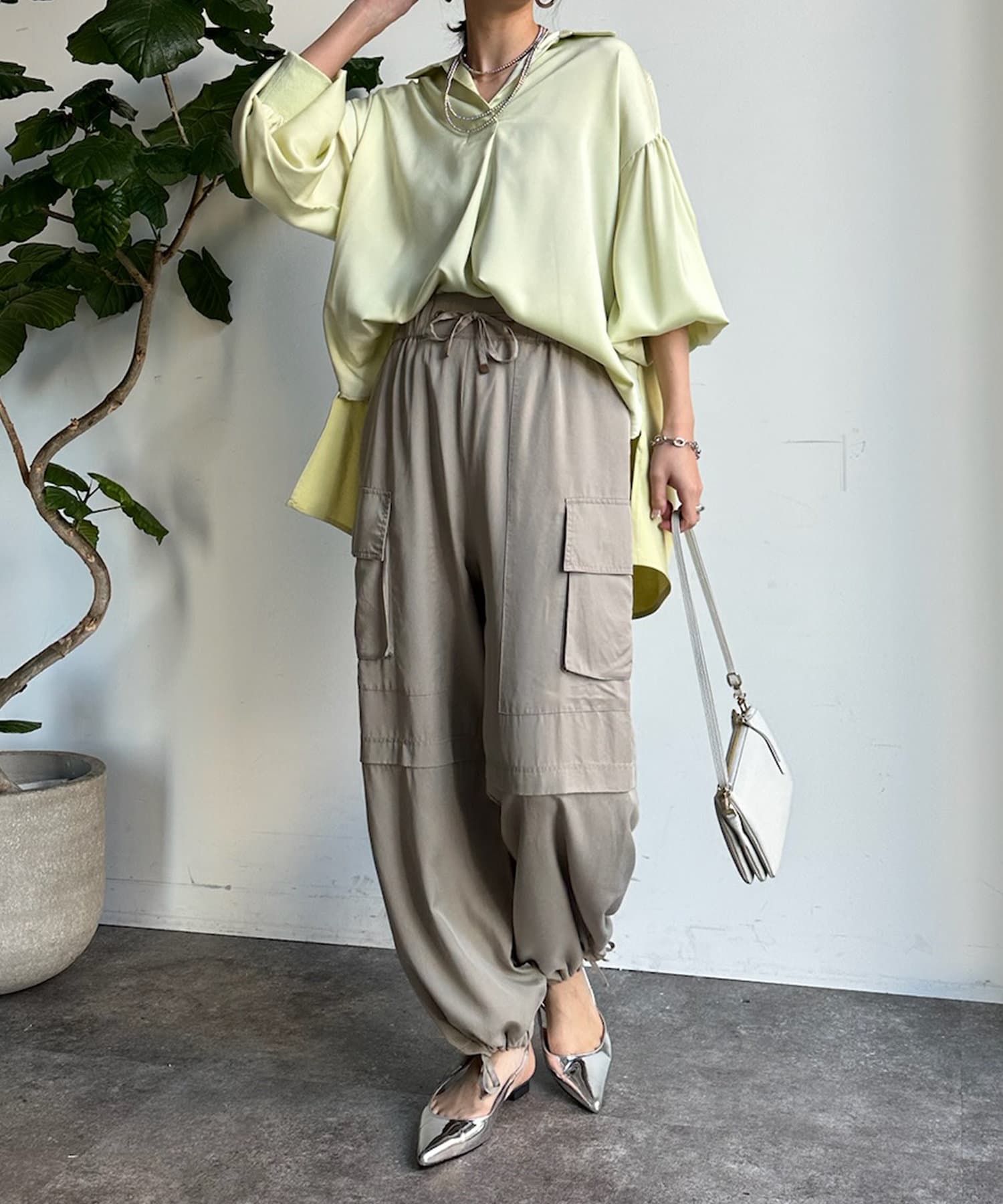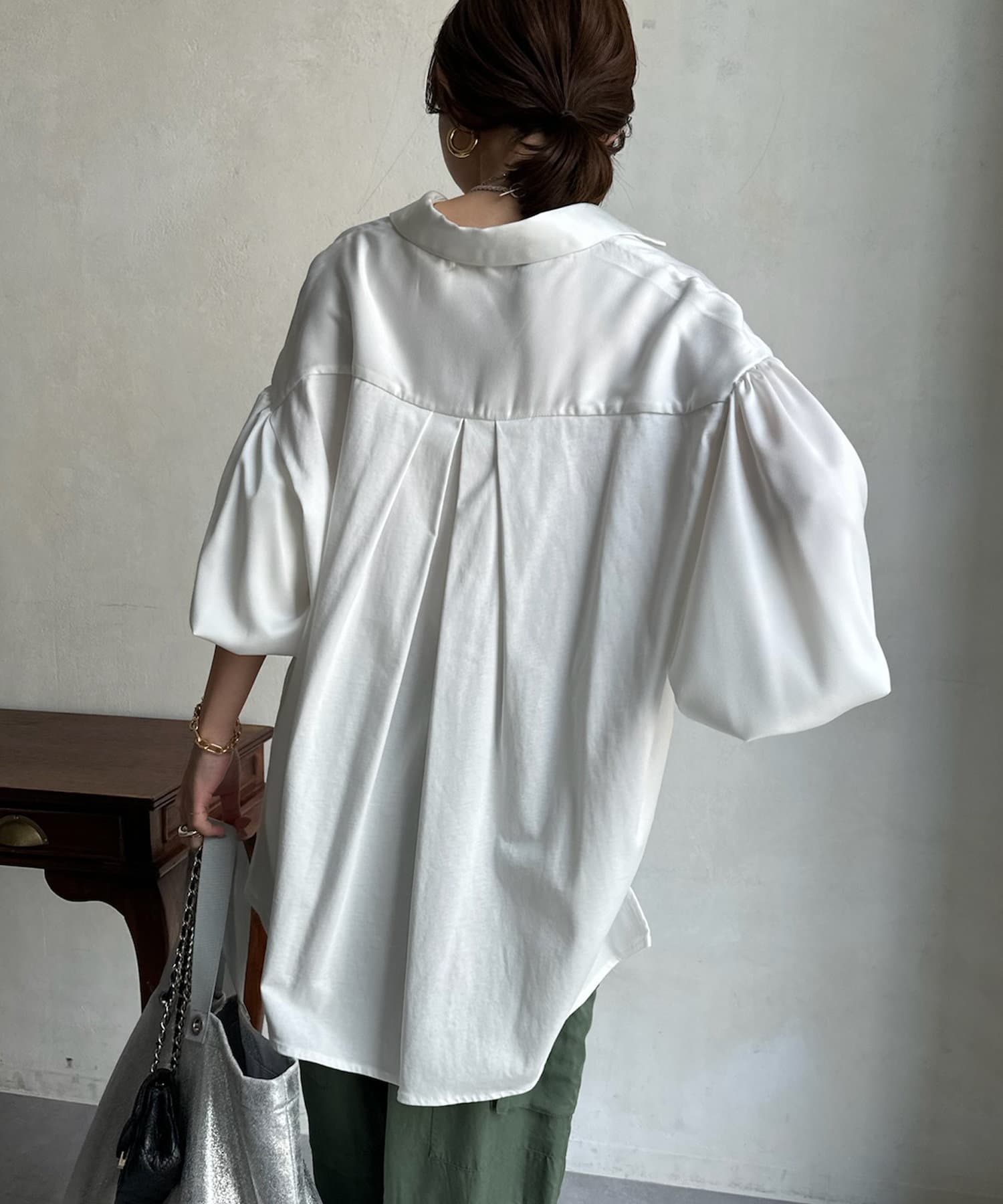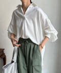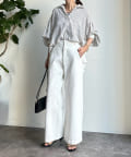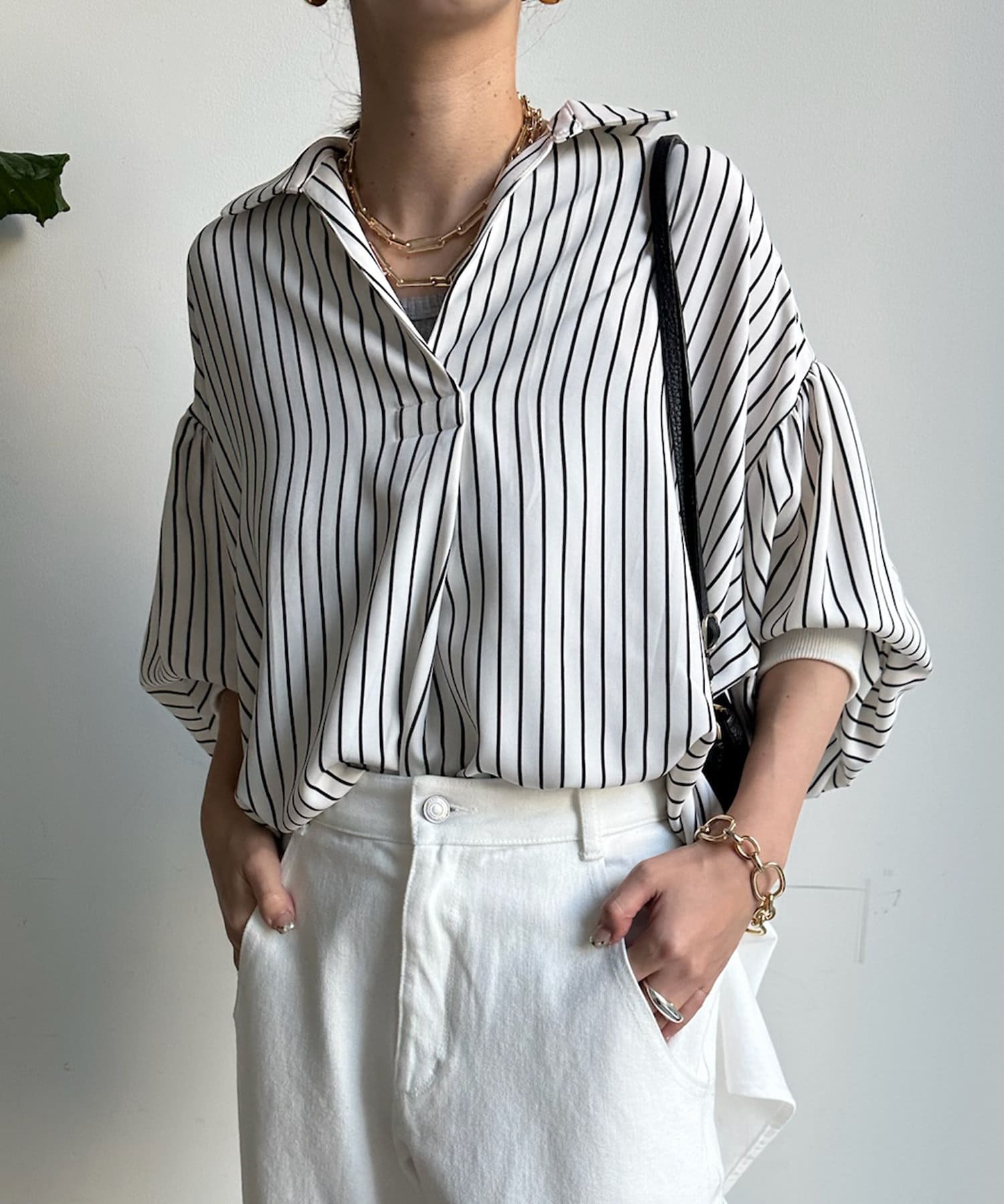 首元のスキッパーデザインは大人な雰囲気を醸し、ショートネックレスなどとも相性抜群。ぜひお手持ちのお気に入りアクセサリー合わせでお楽しみください。