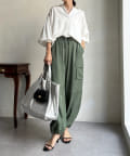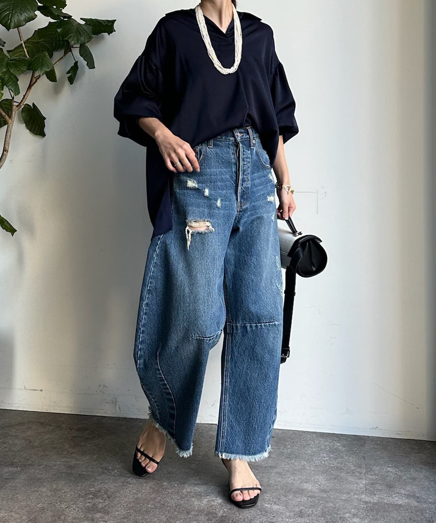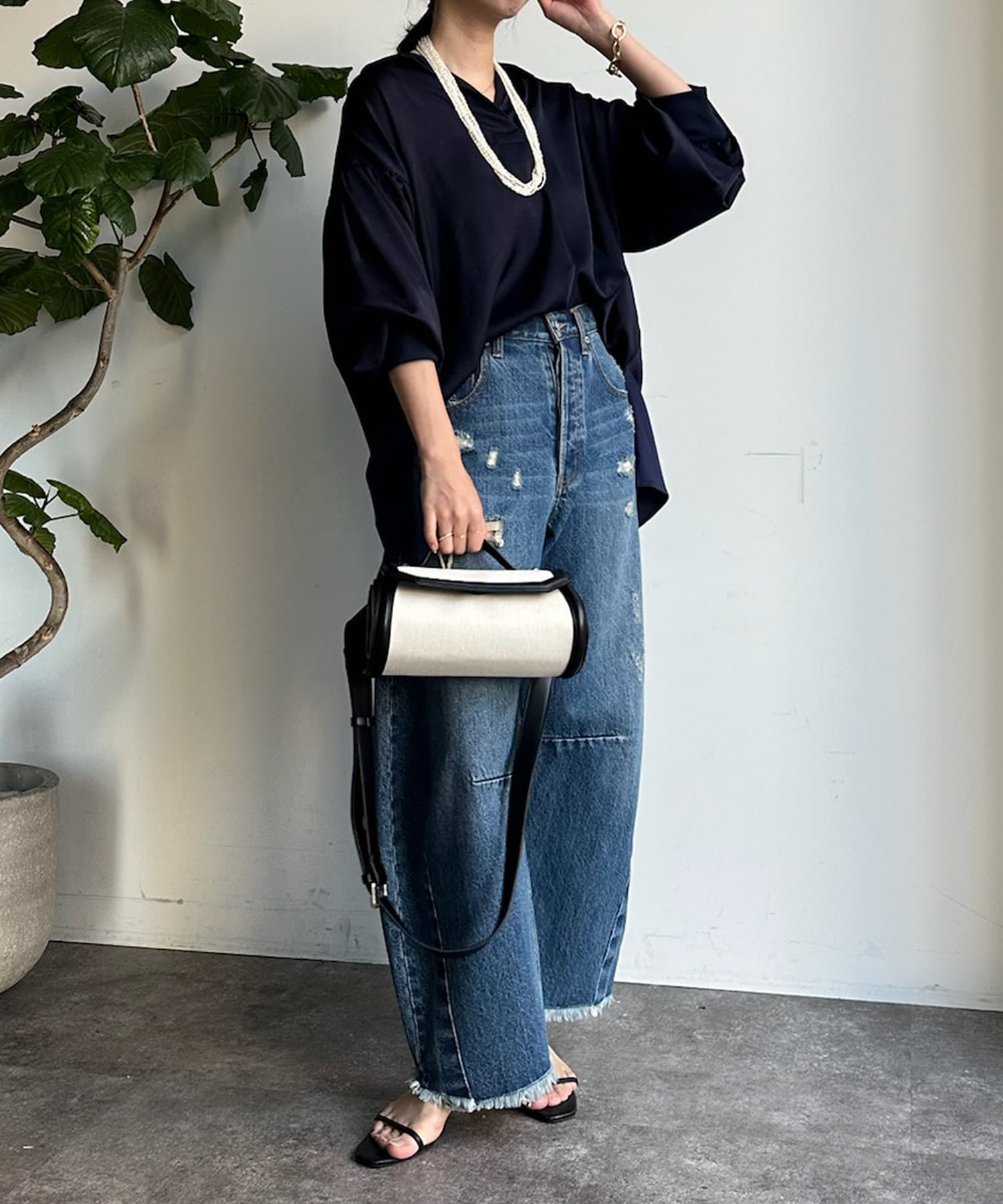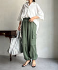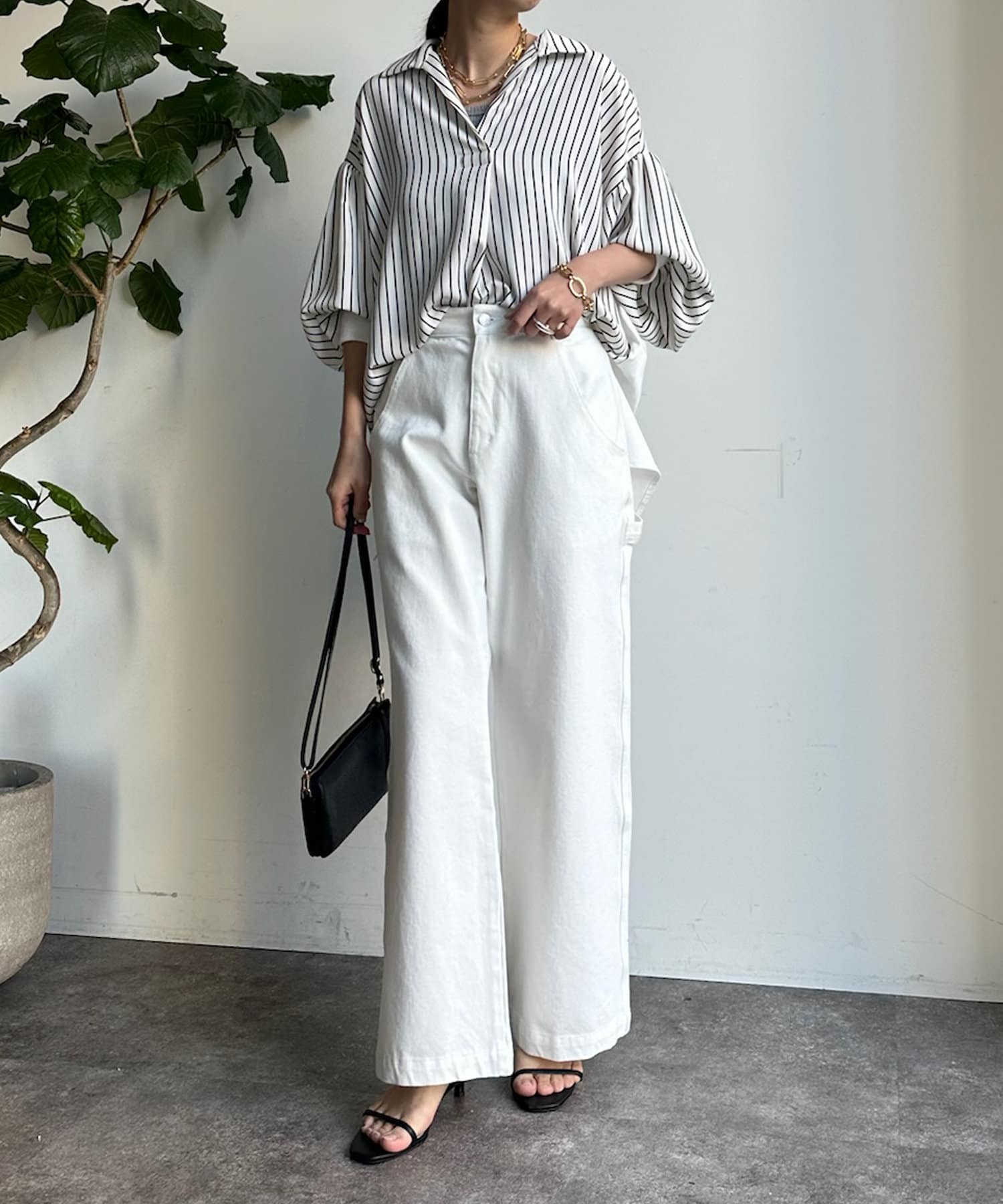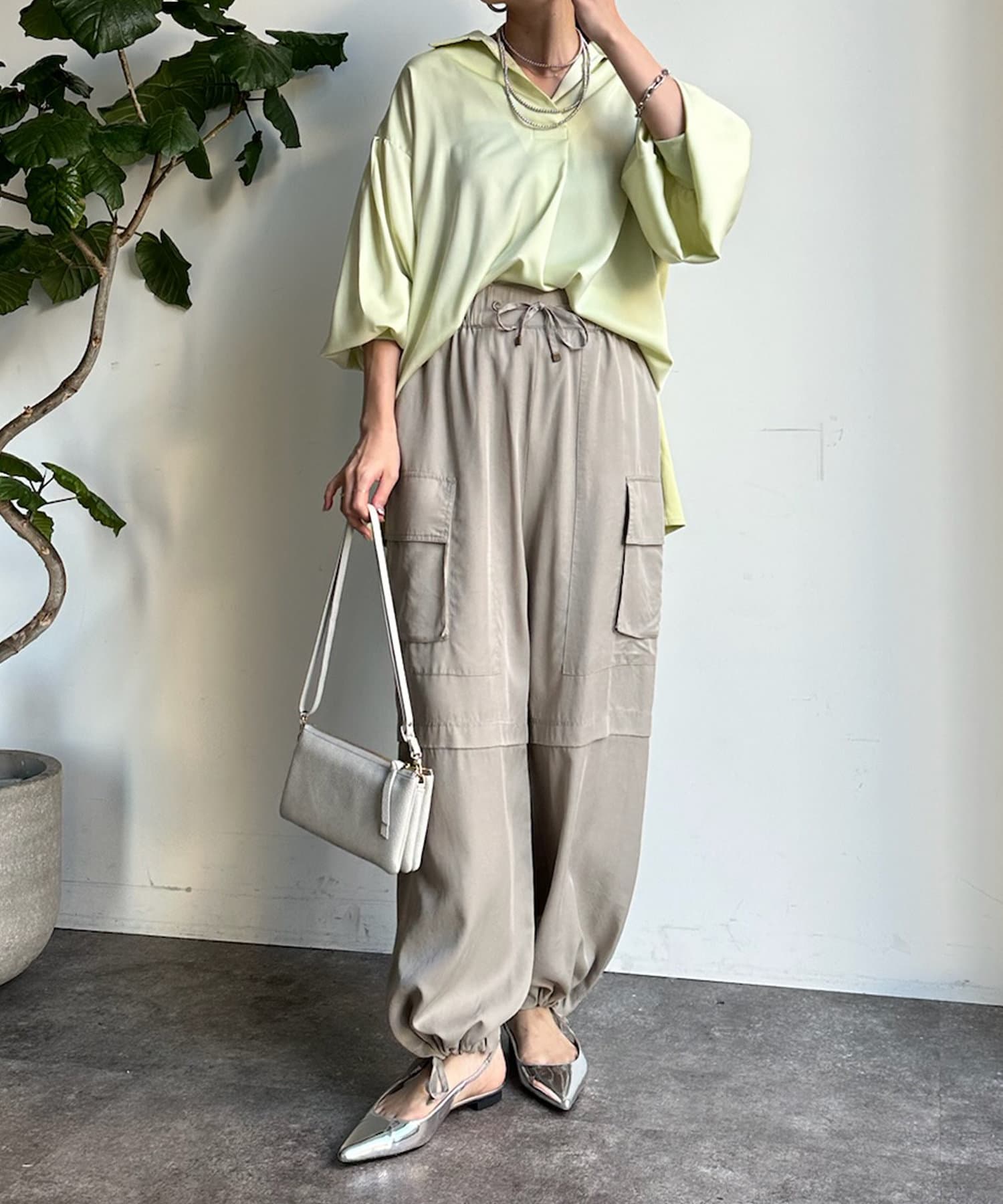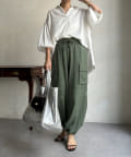 首元のスキッパーデザインは大人な雰囲気を醸し、ショートネックレスなどとも相性抜群。ぜひお手持ちのお気に入りアクセサリー合わせでお楽しみください。