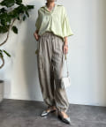 フロントとお袖部分は上品な素材感に。楽な着心地ながらきれい見えしてくれるので、幅広いシーンに活躍。