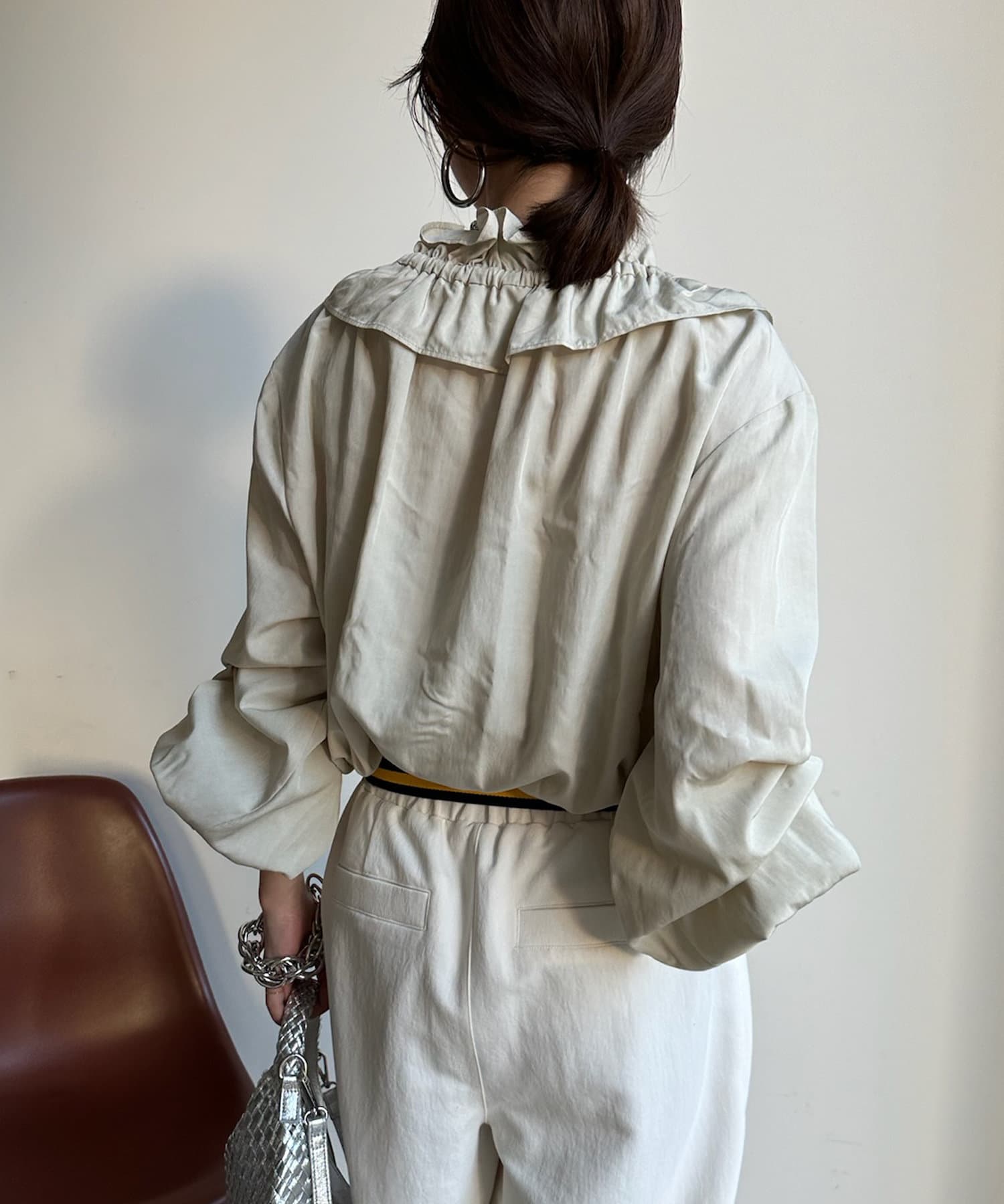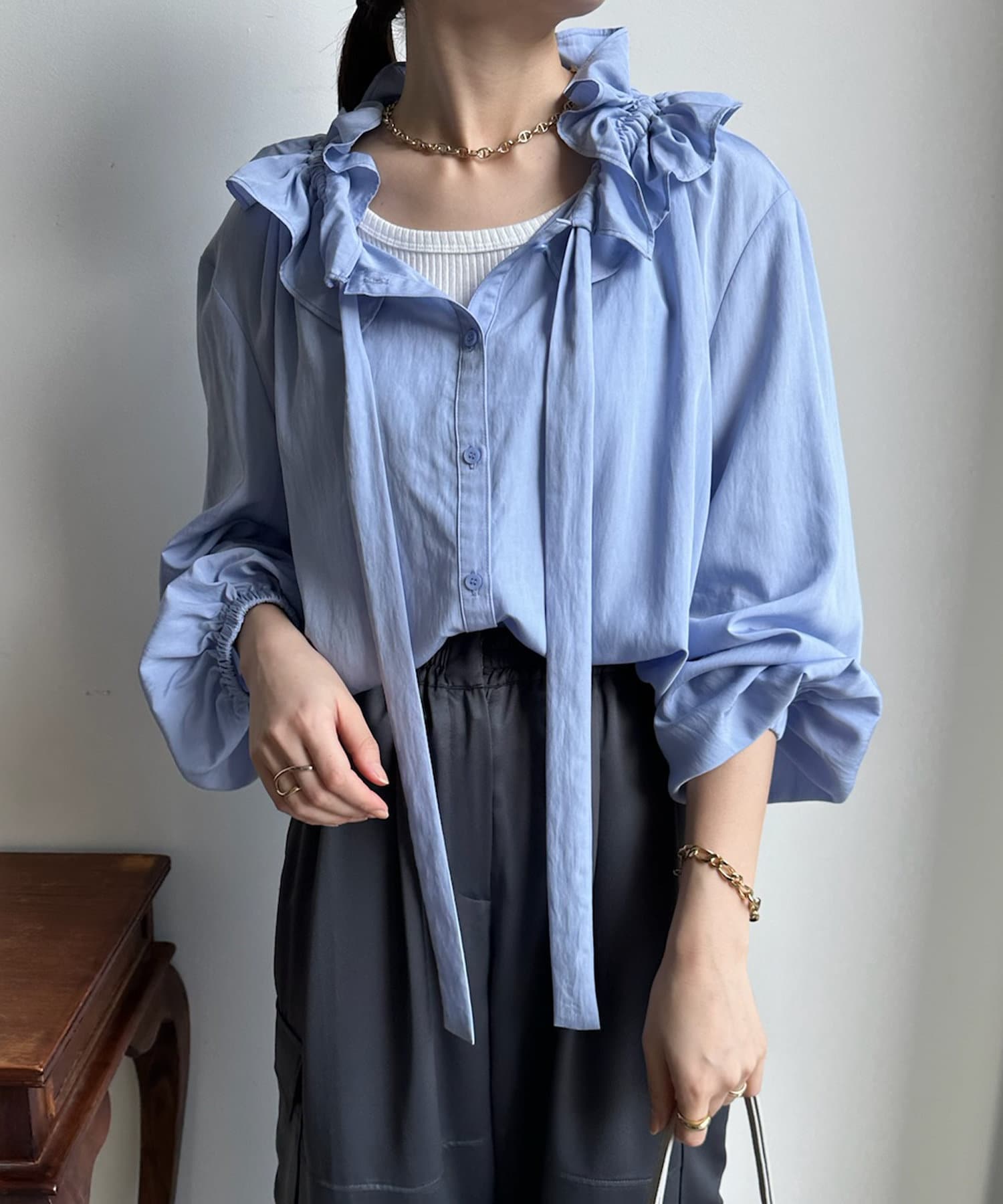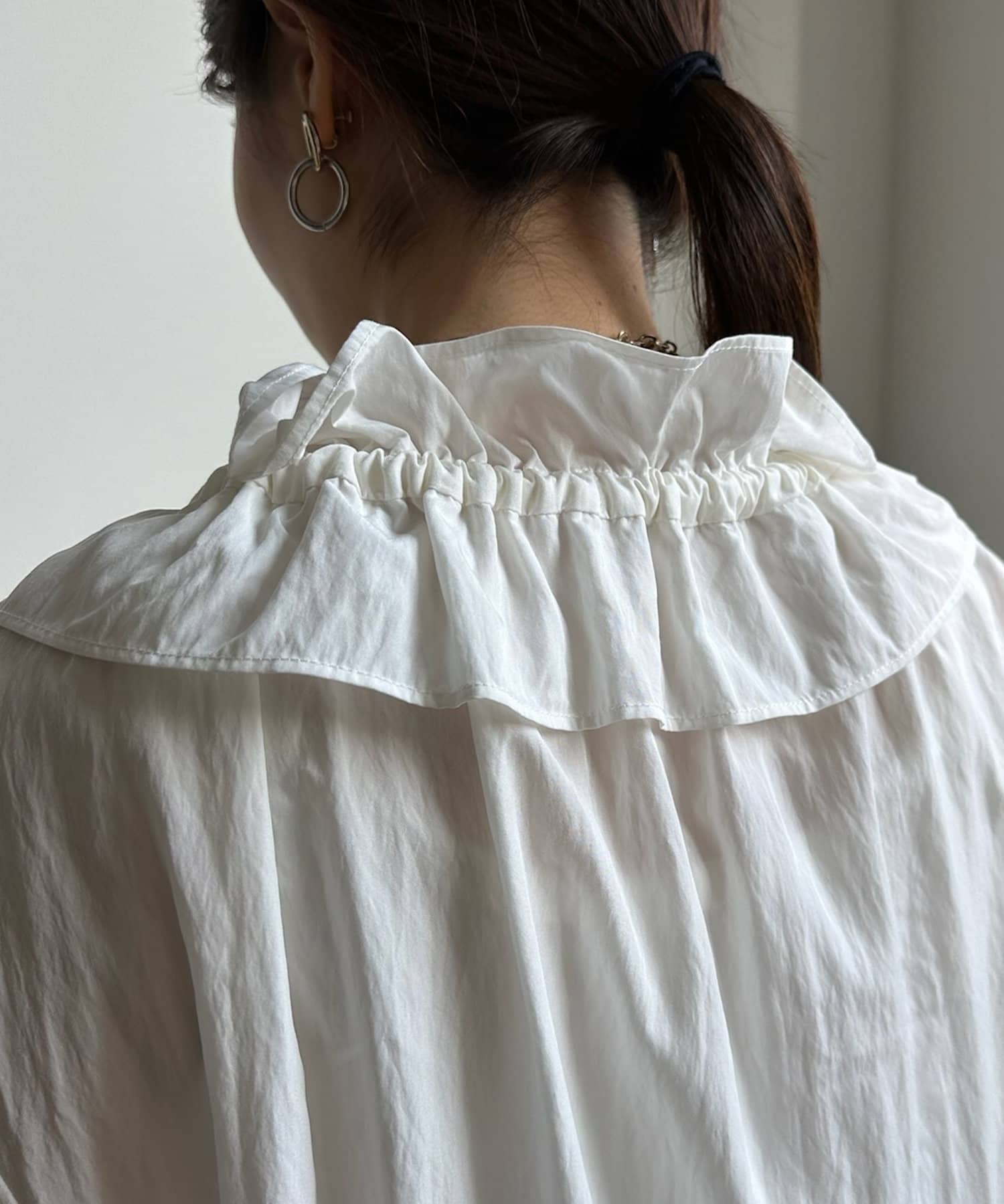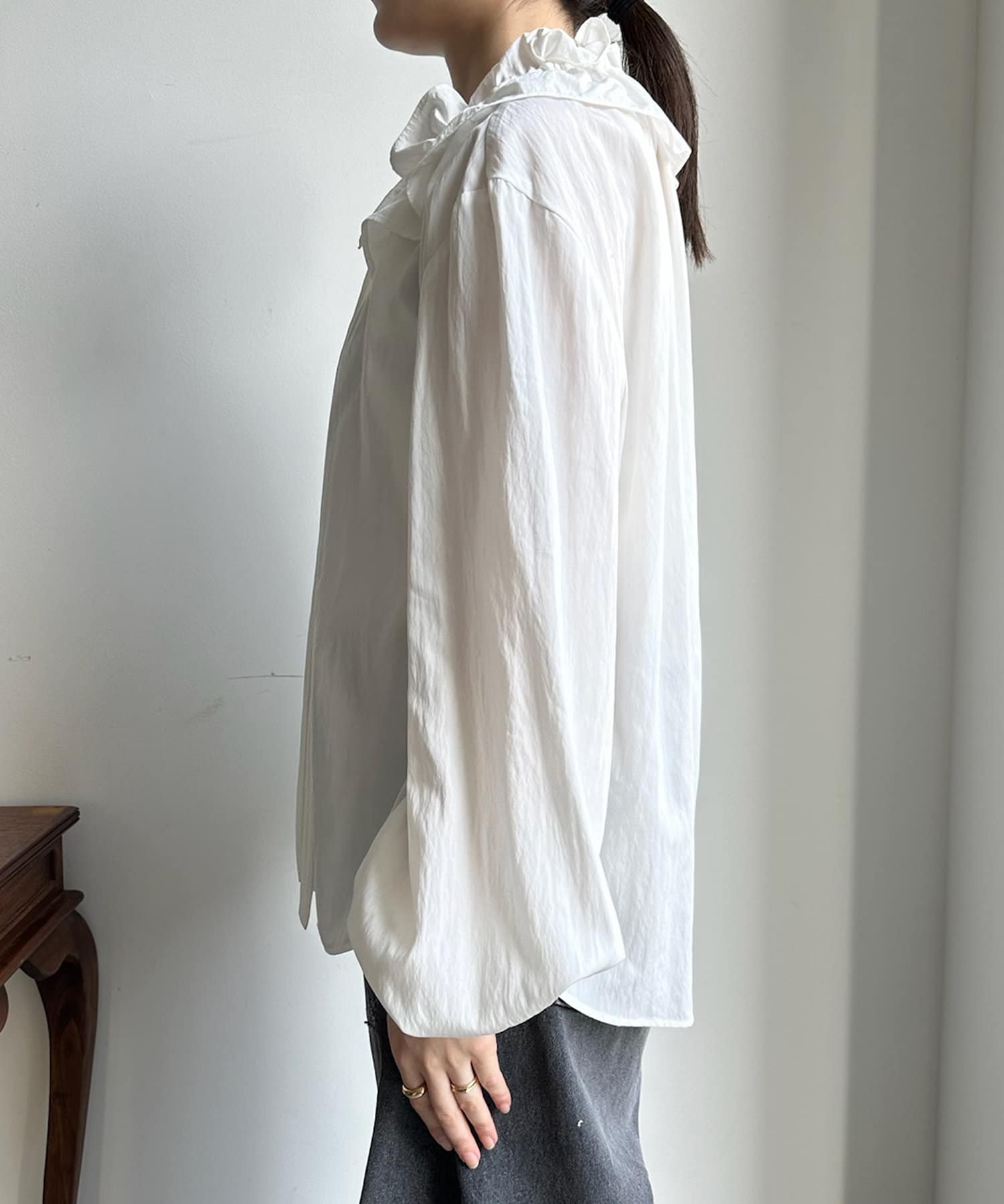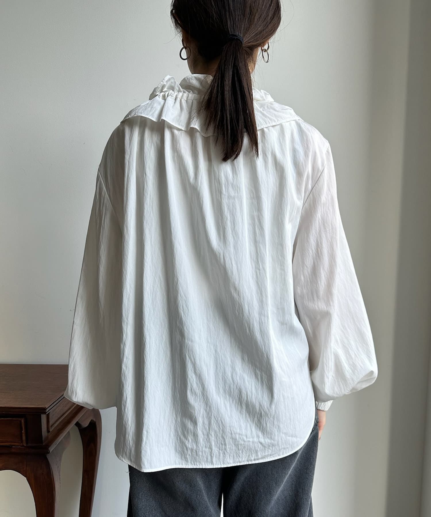 柔らかな素材感で春夏らしく仕上げたフリルブラウス。