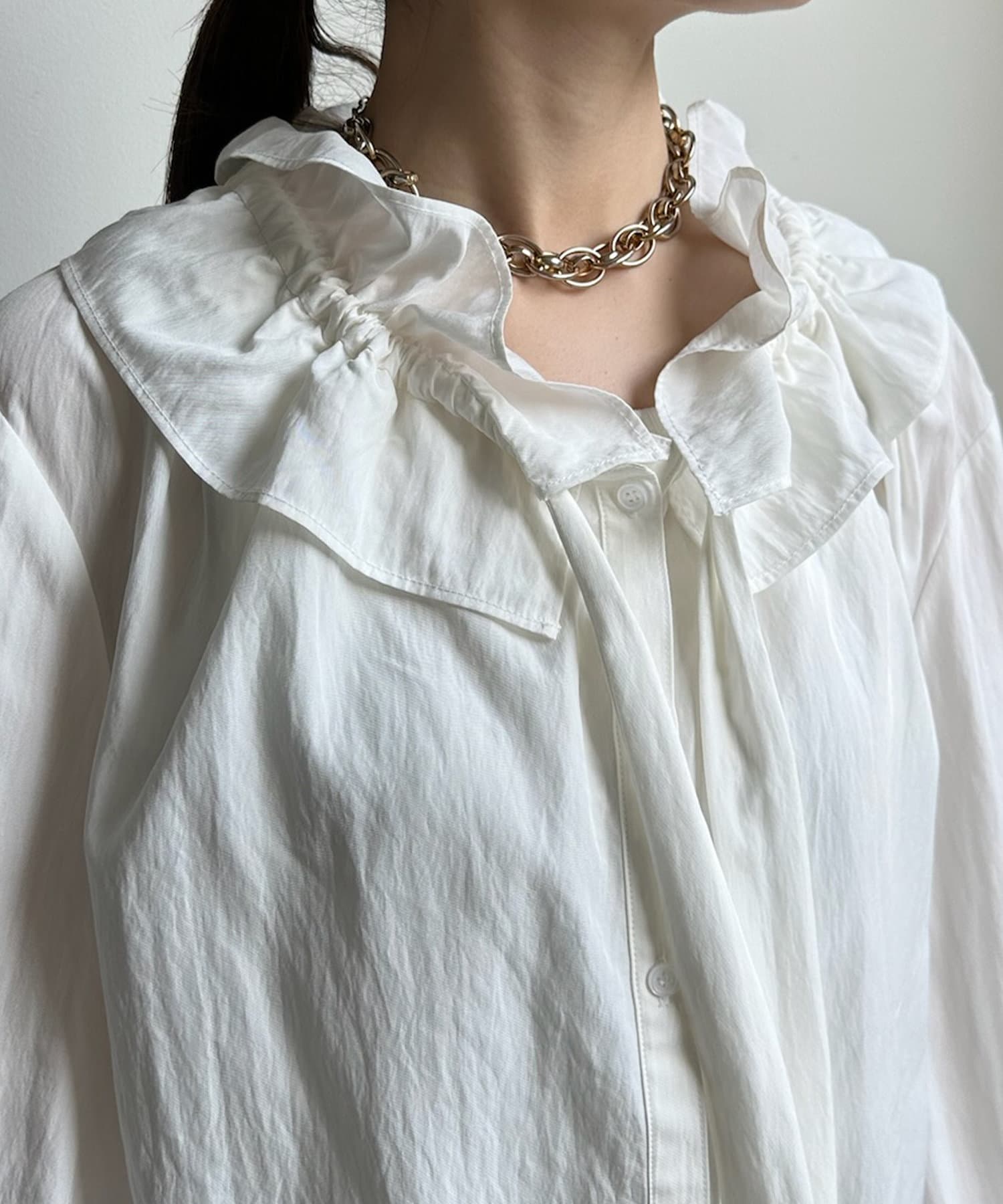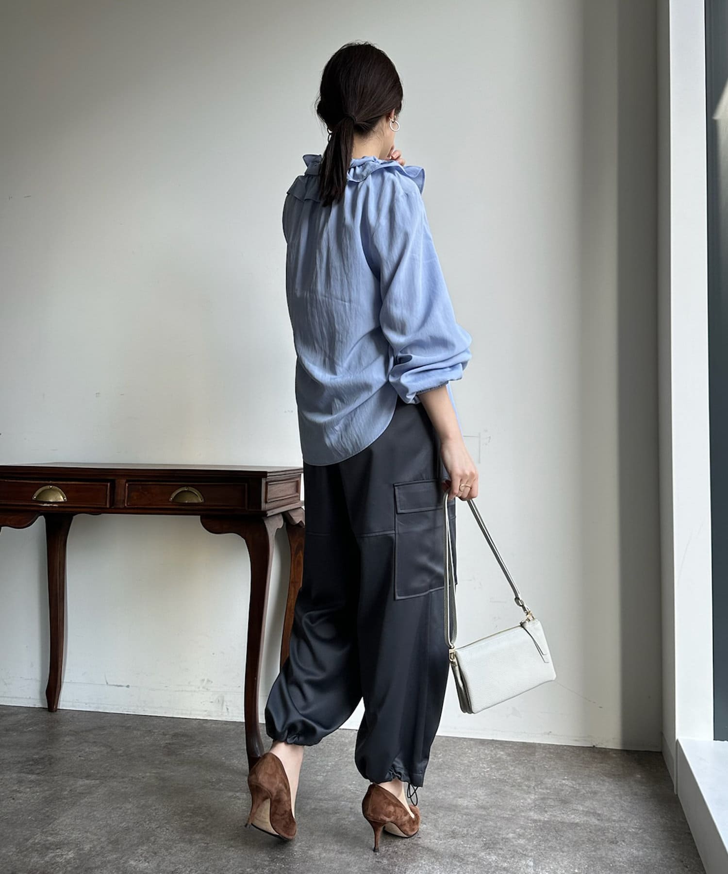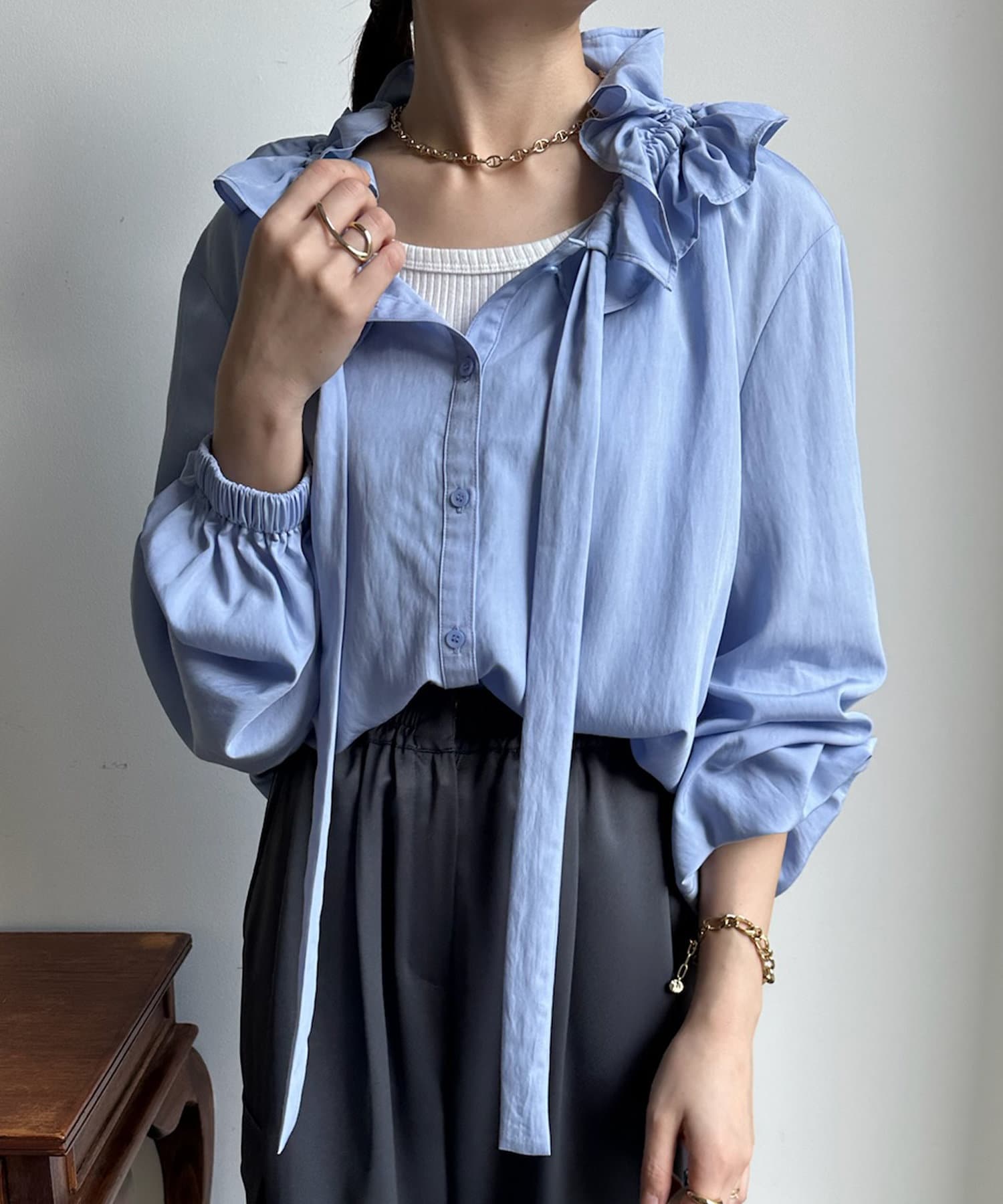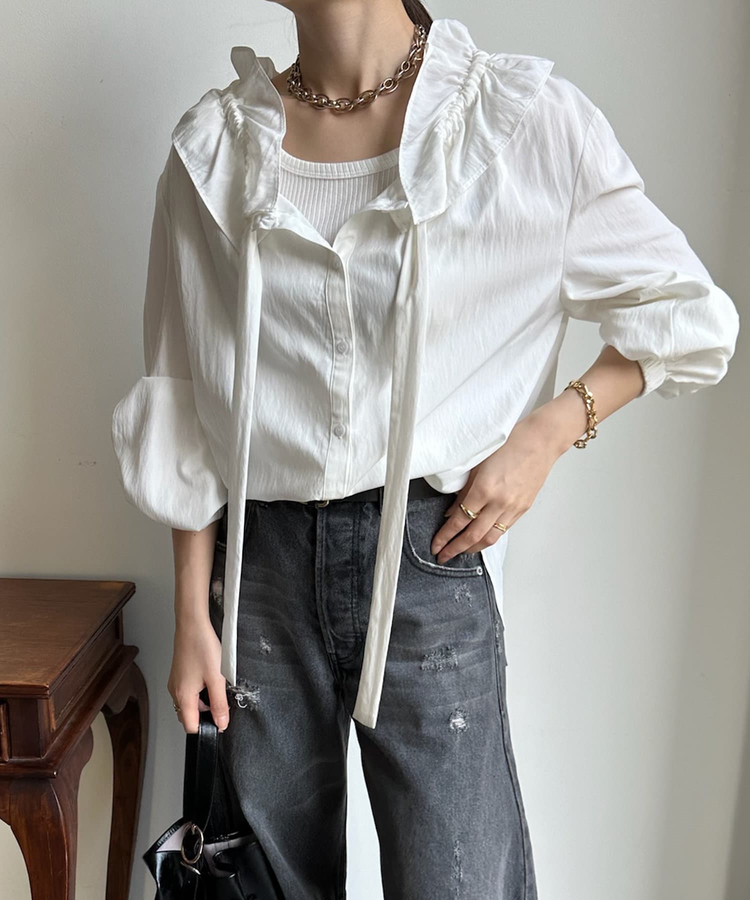 柔らかな素材感で春夏らしく仕上げたフリルブラウス。