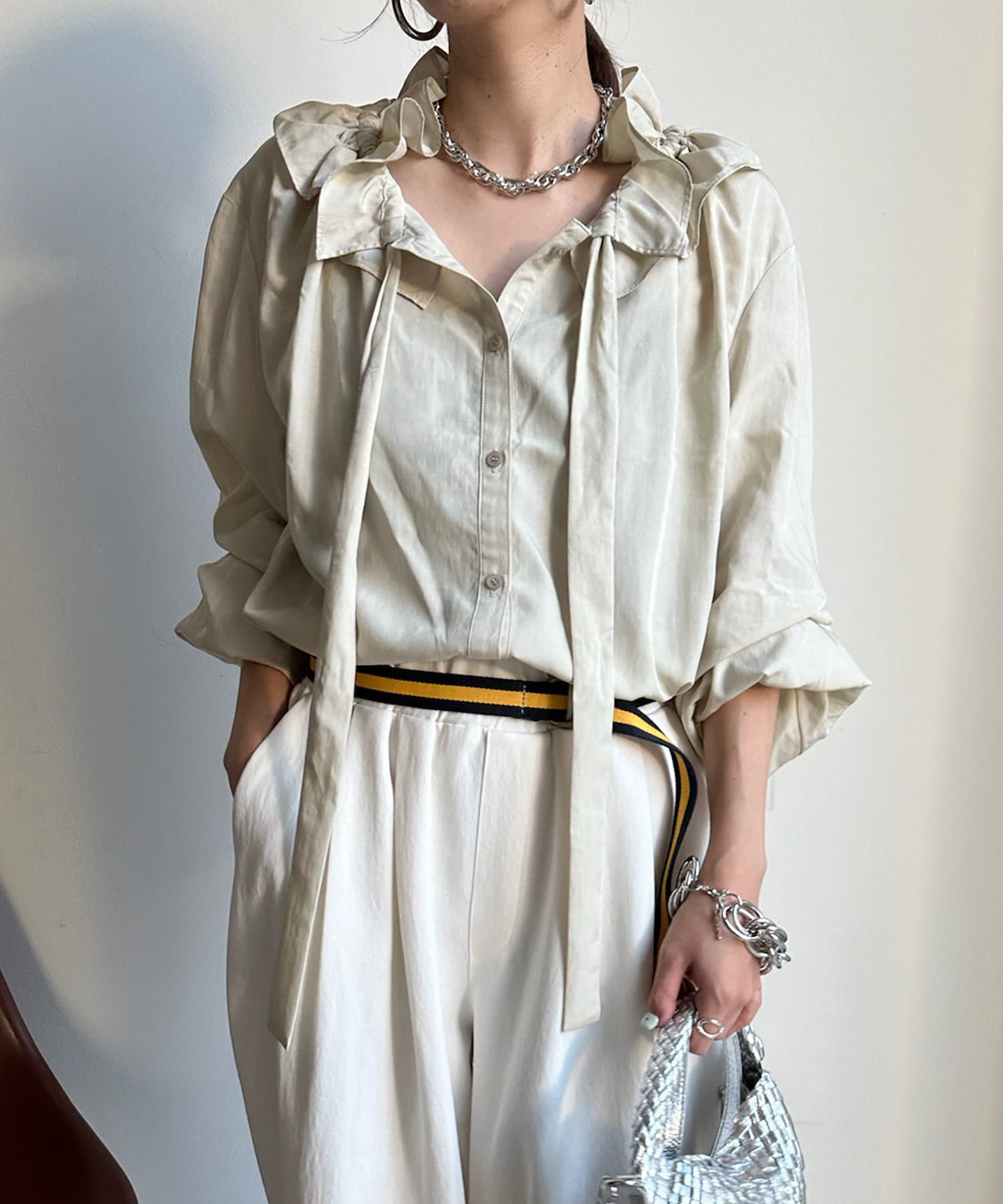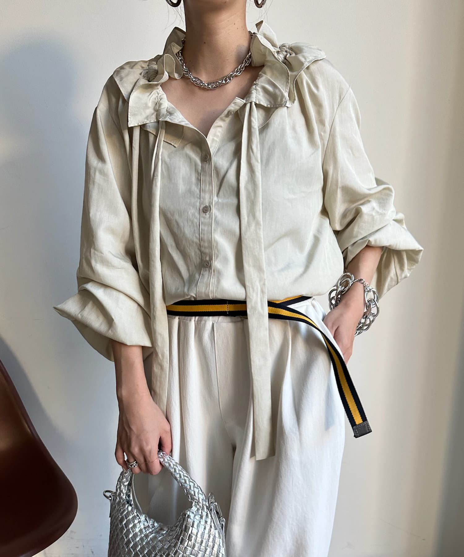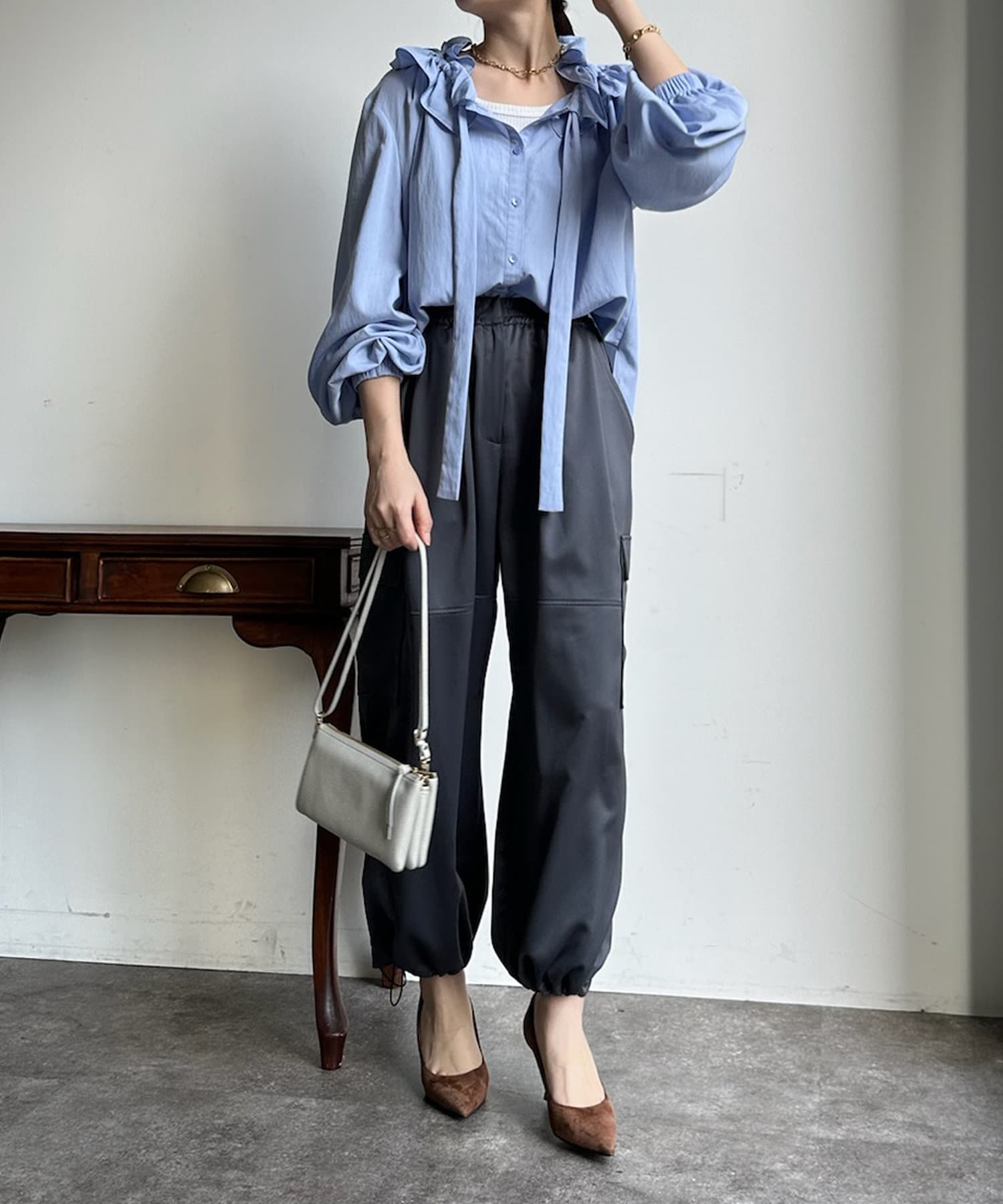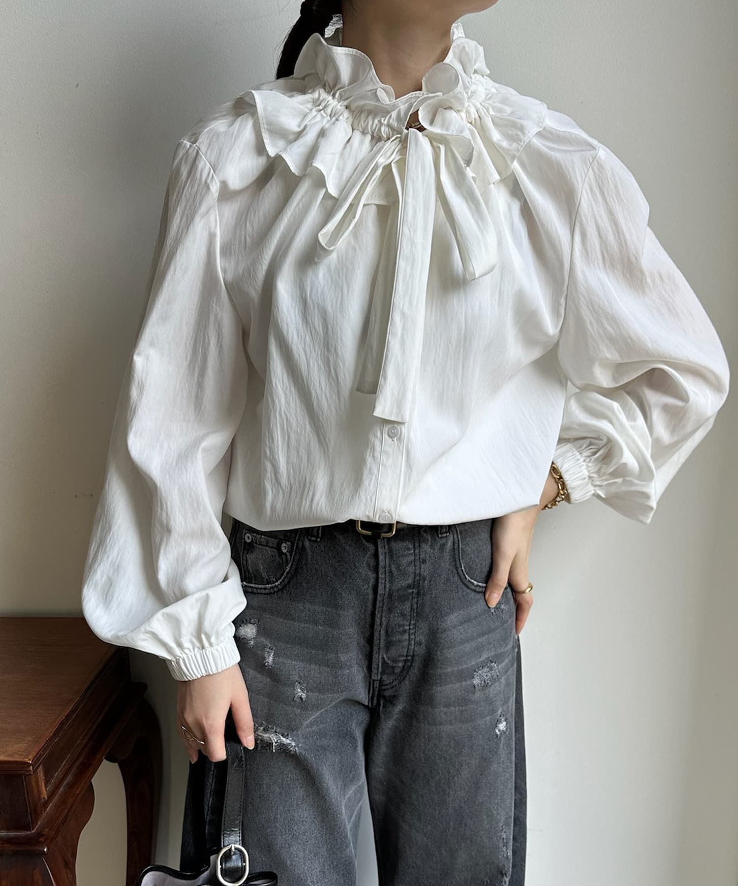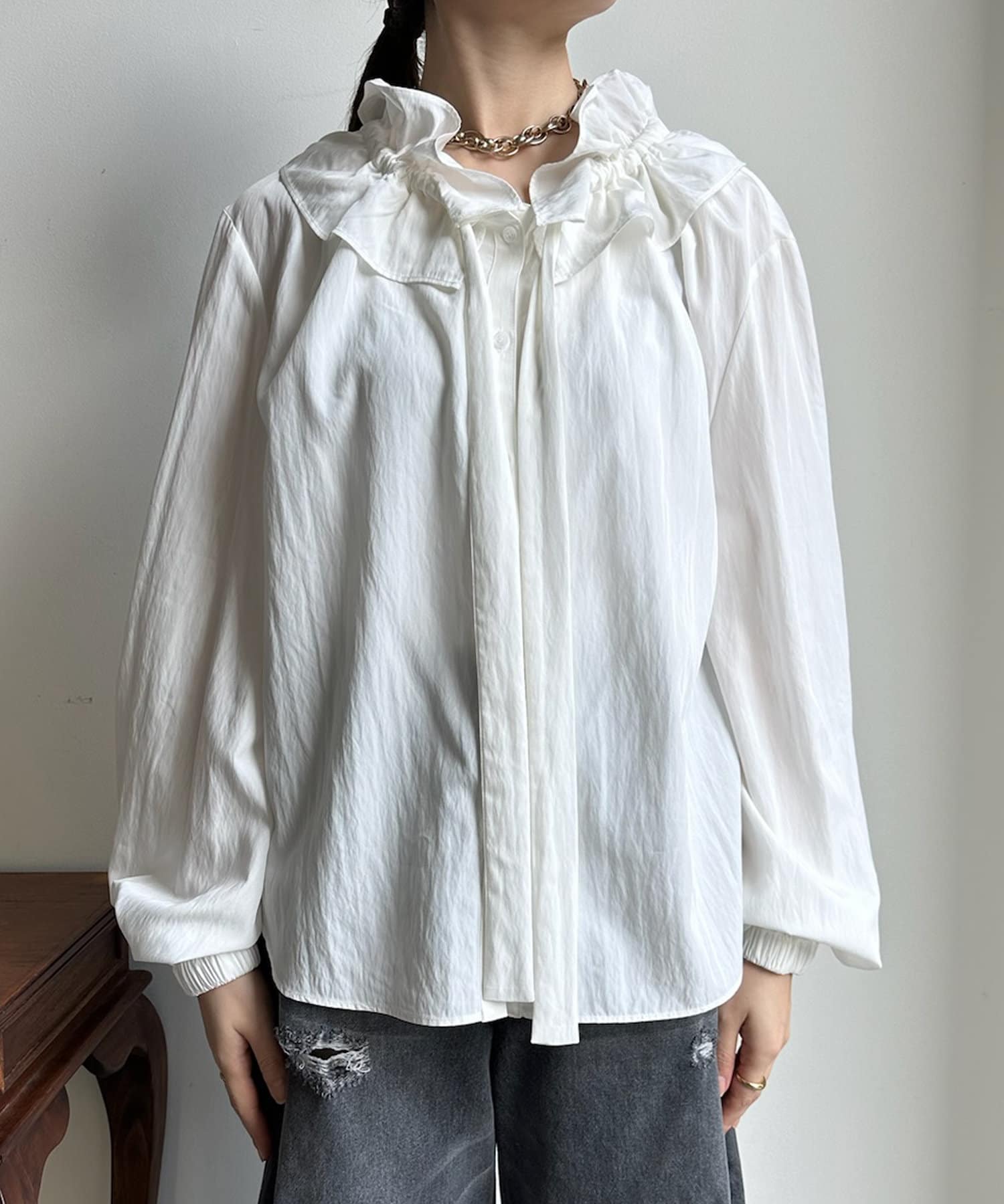 柔らかな素材感で春夏らしく仕上げたフリルブラウス。