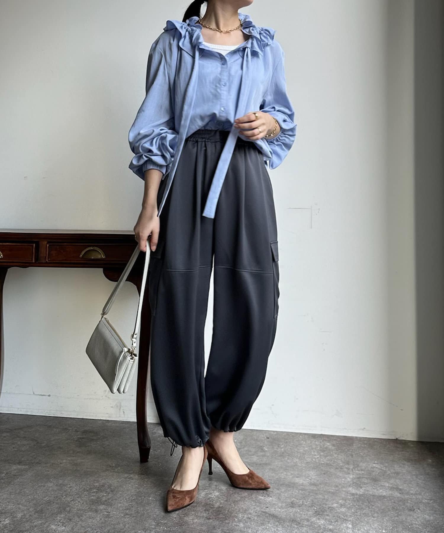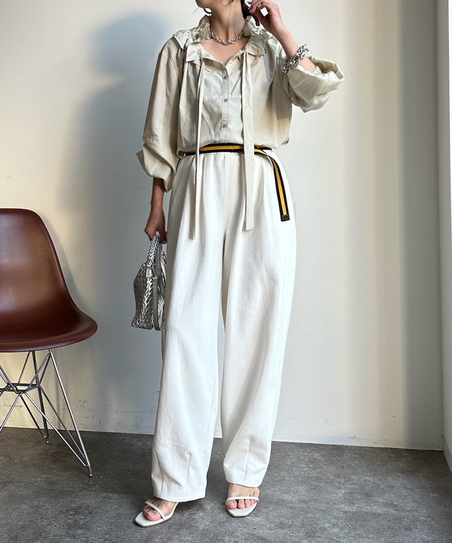 カジュアルなボトムと合わせて、MIXしたスタイリングがバランスよく決まっておしゃれですよ!