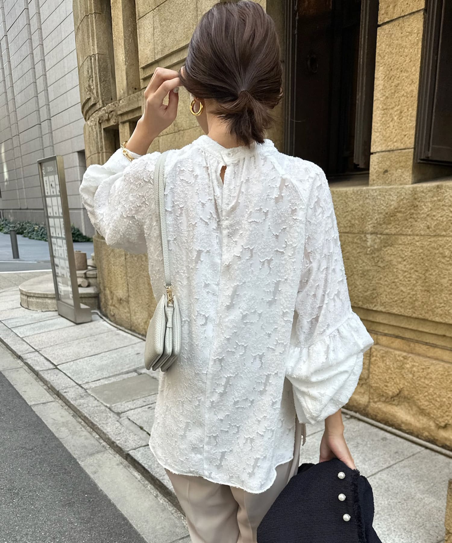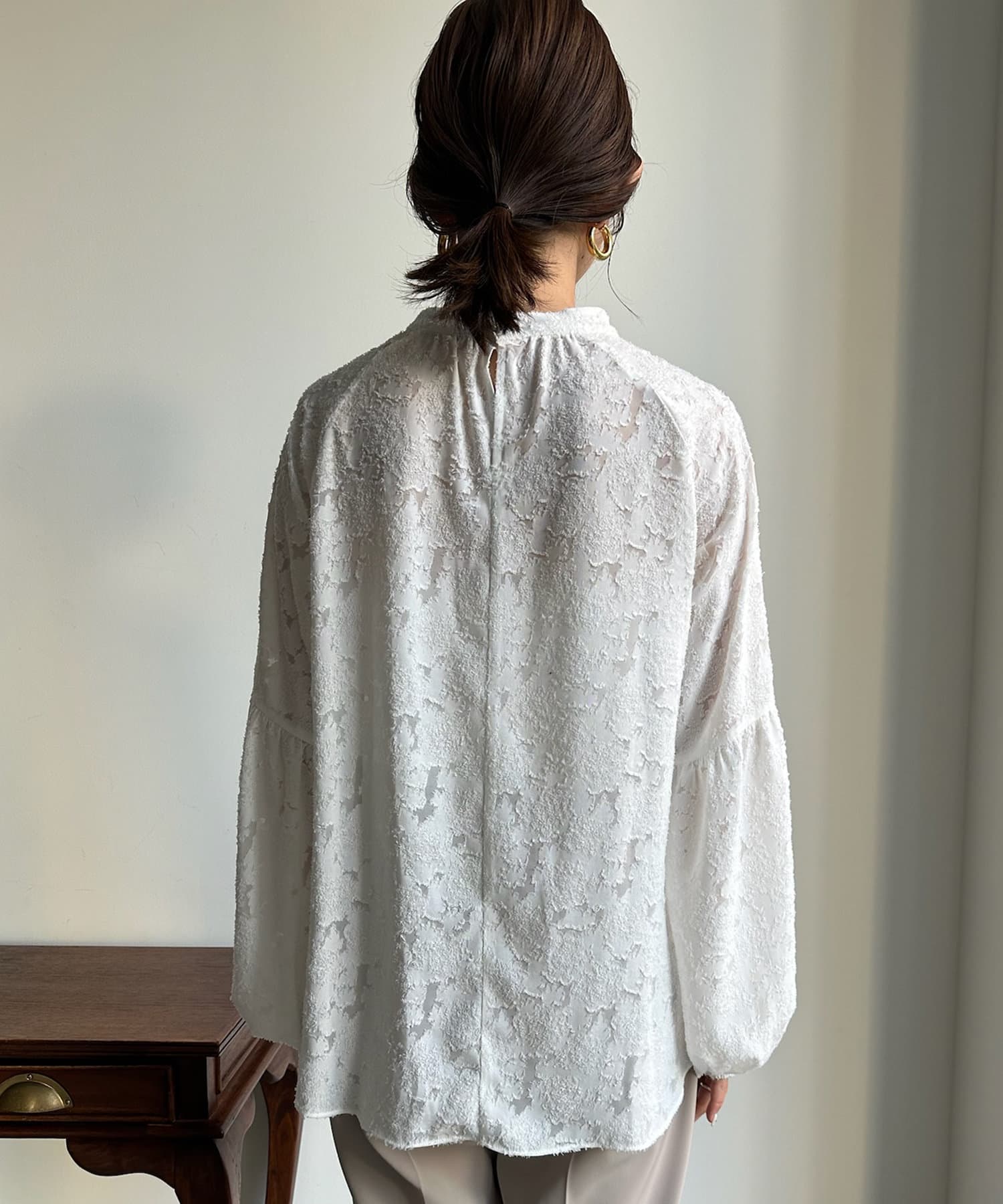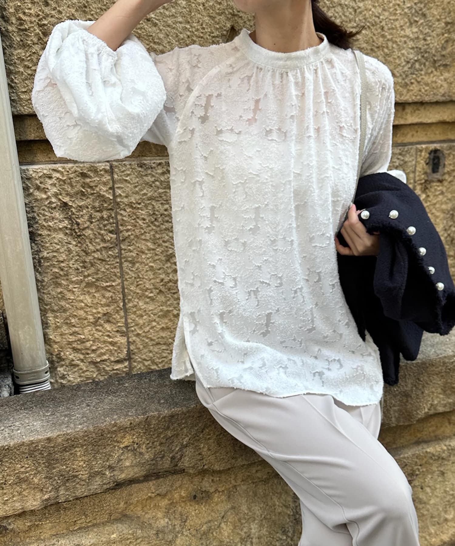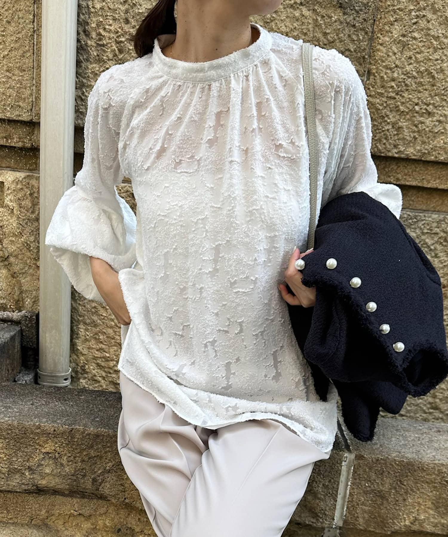 素材の厚みで表現されたニュアンス感のあるジャカード柄のブラウスが登場!