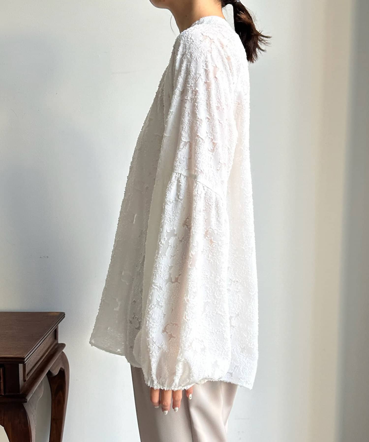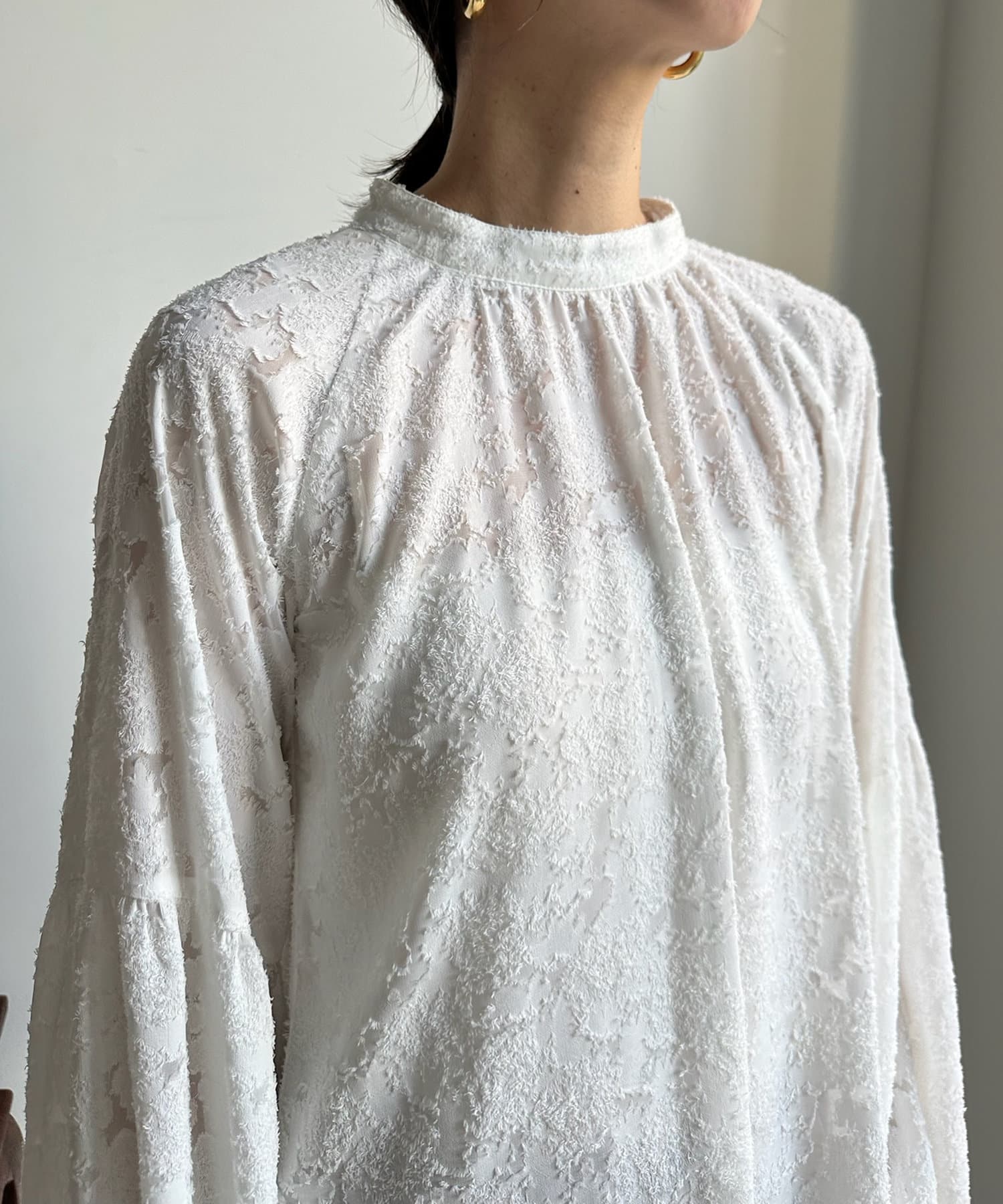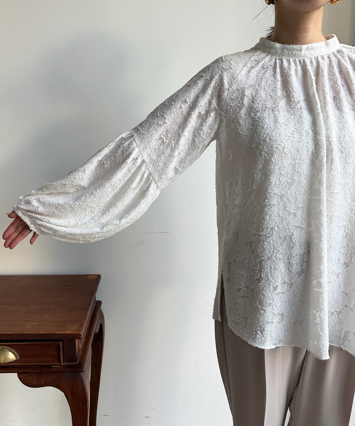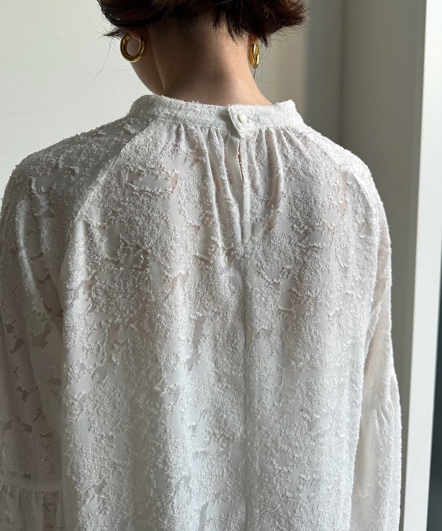 素材の厚みで表現されたニュアンス感のあるジャカード柄のブラウスが登場!