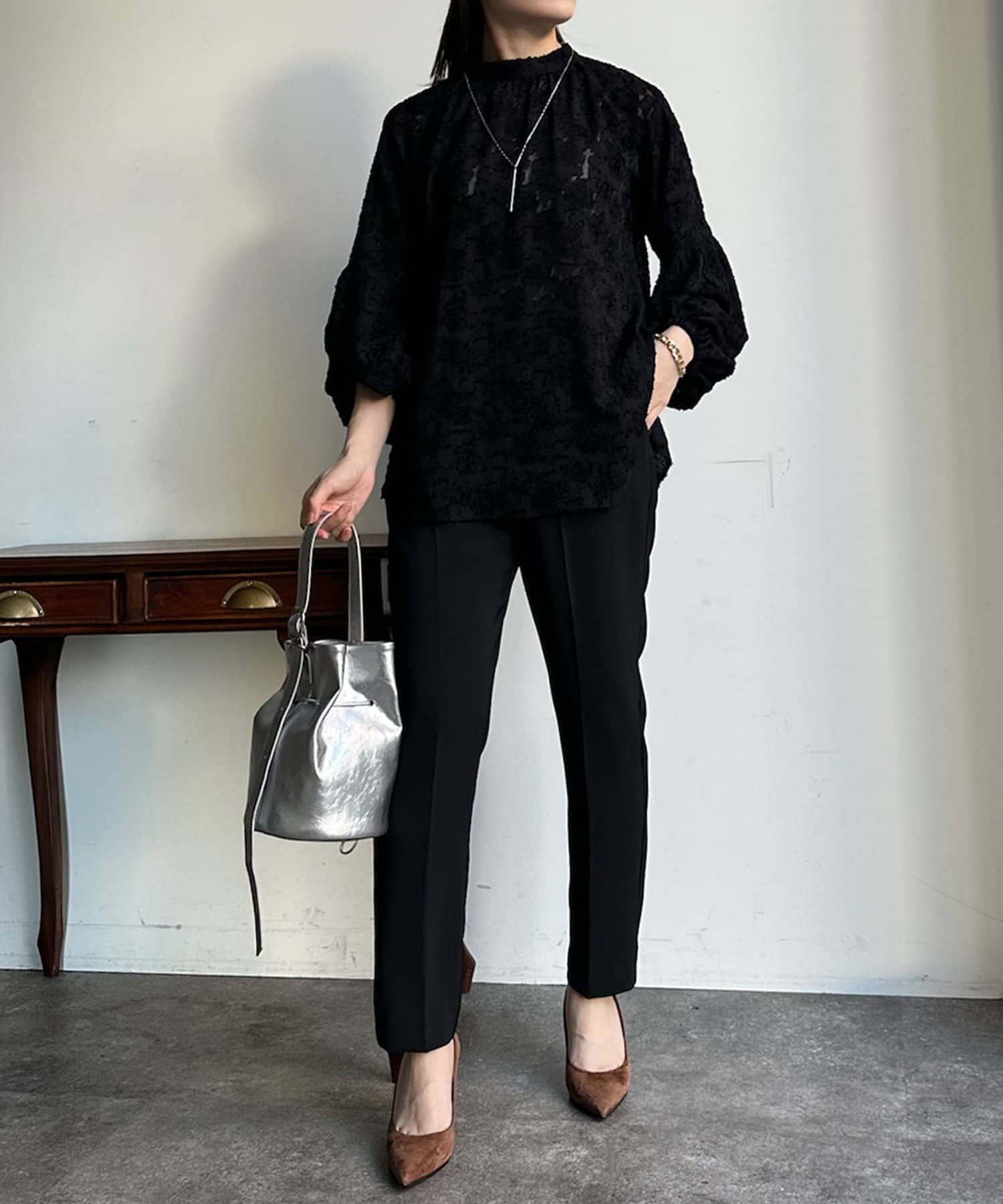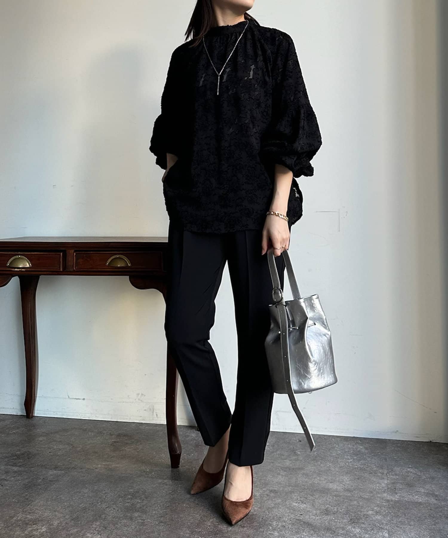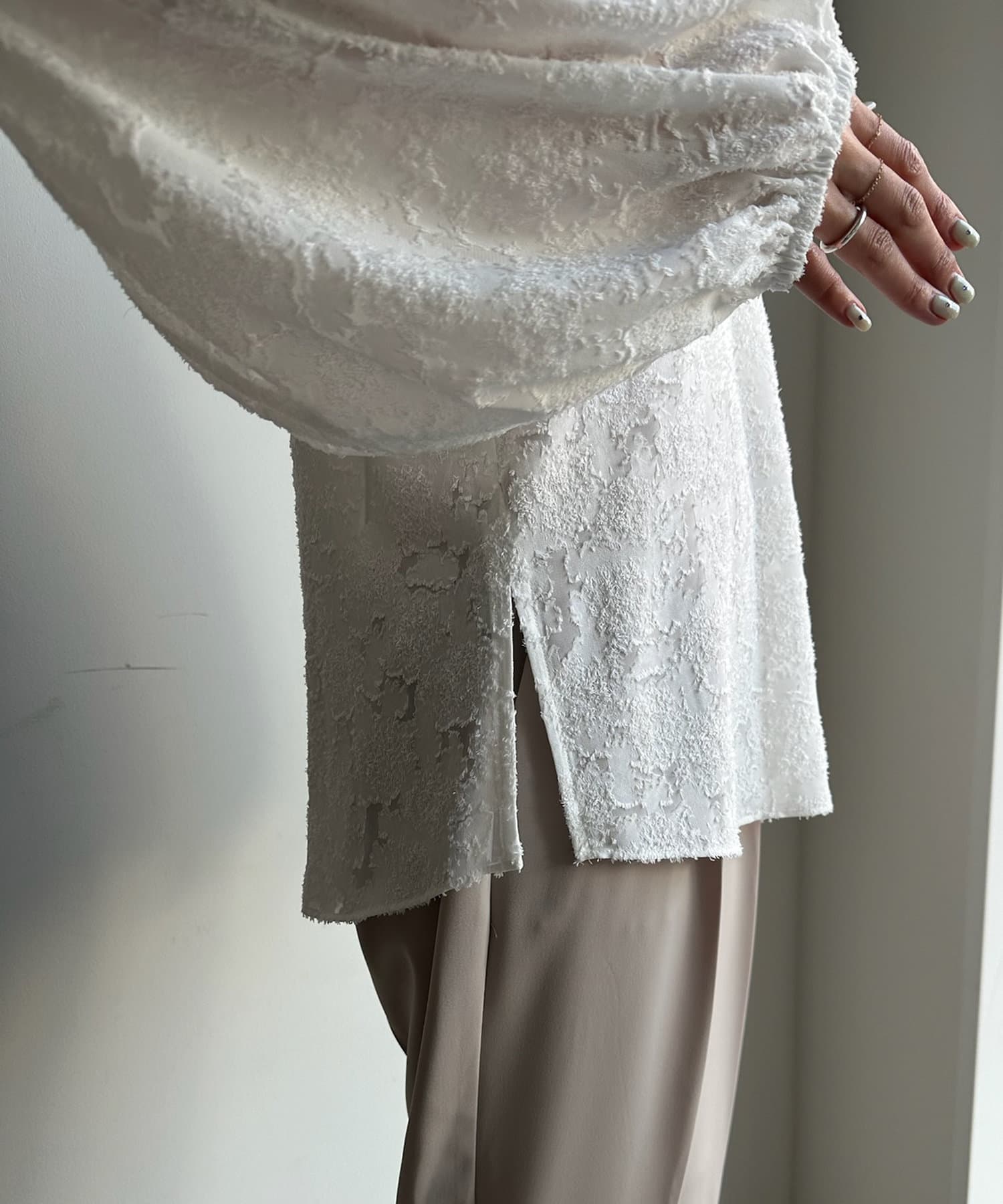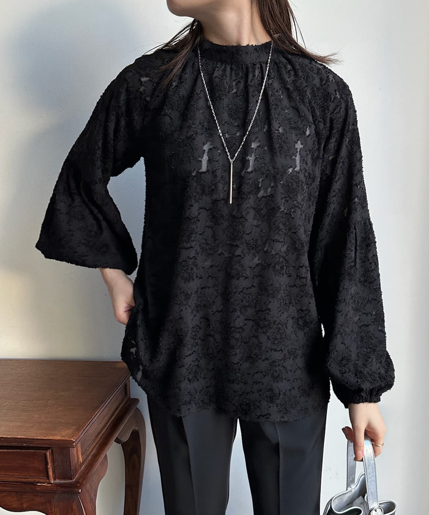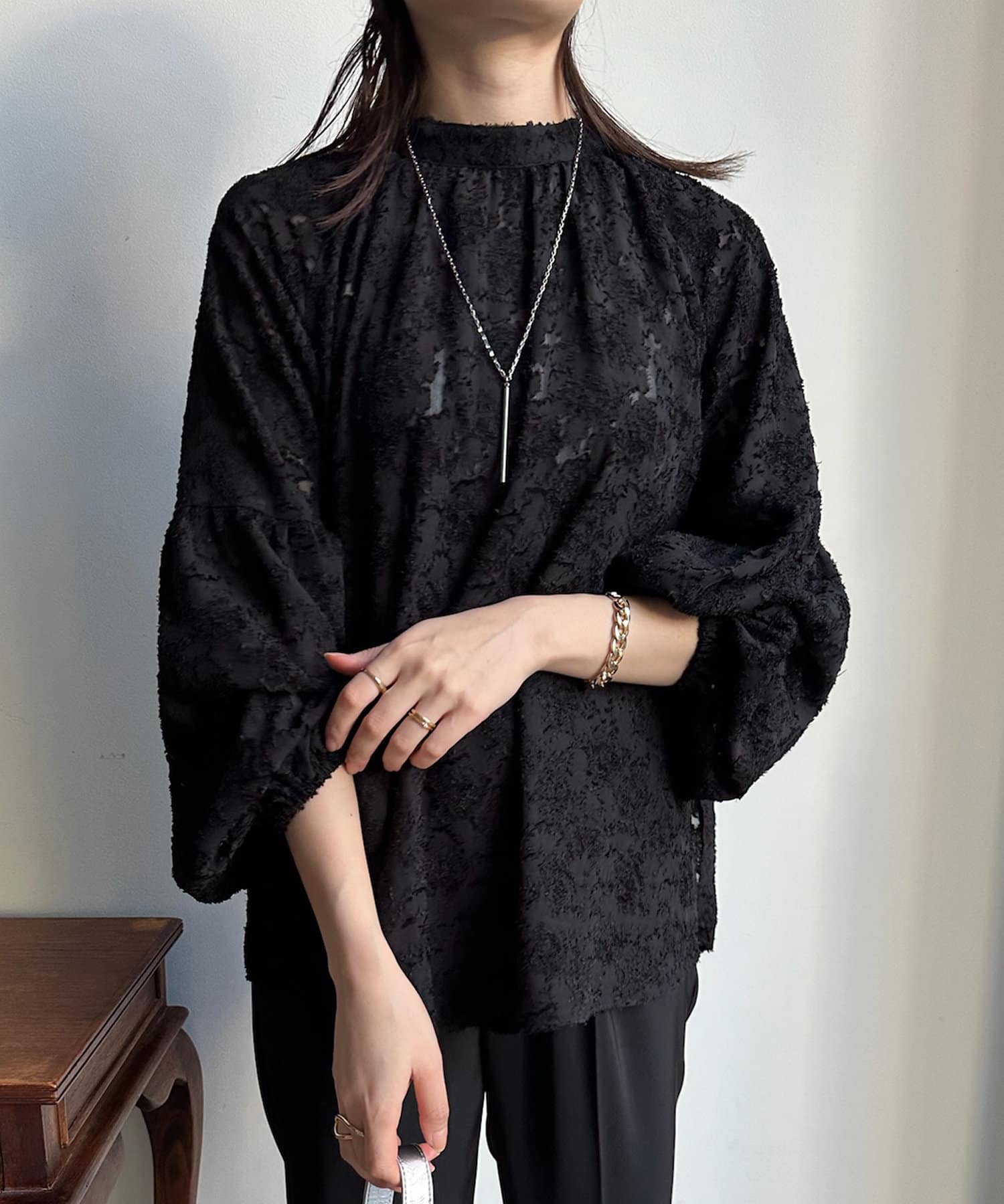 素材の厚みで表現されたニュアンス感のあるジャカード柄のブラウスが登場!