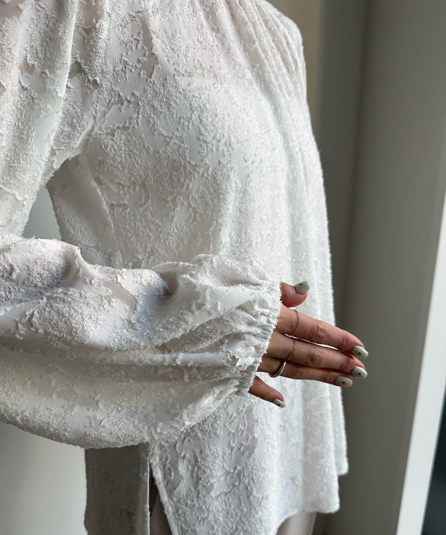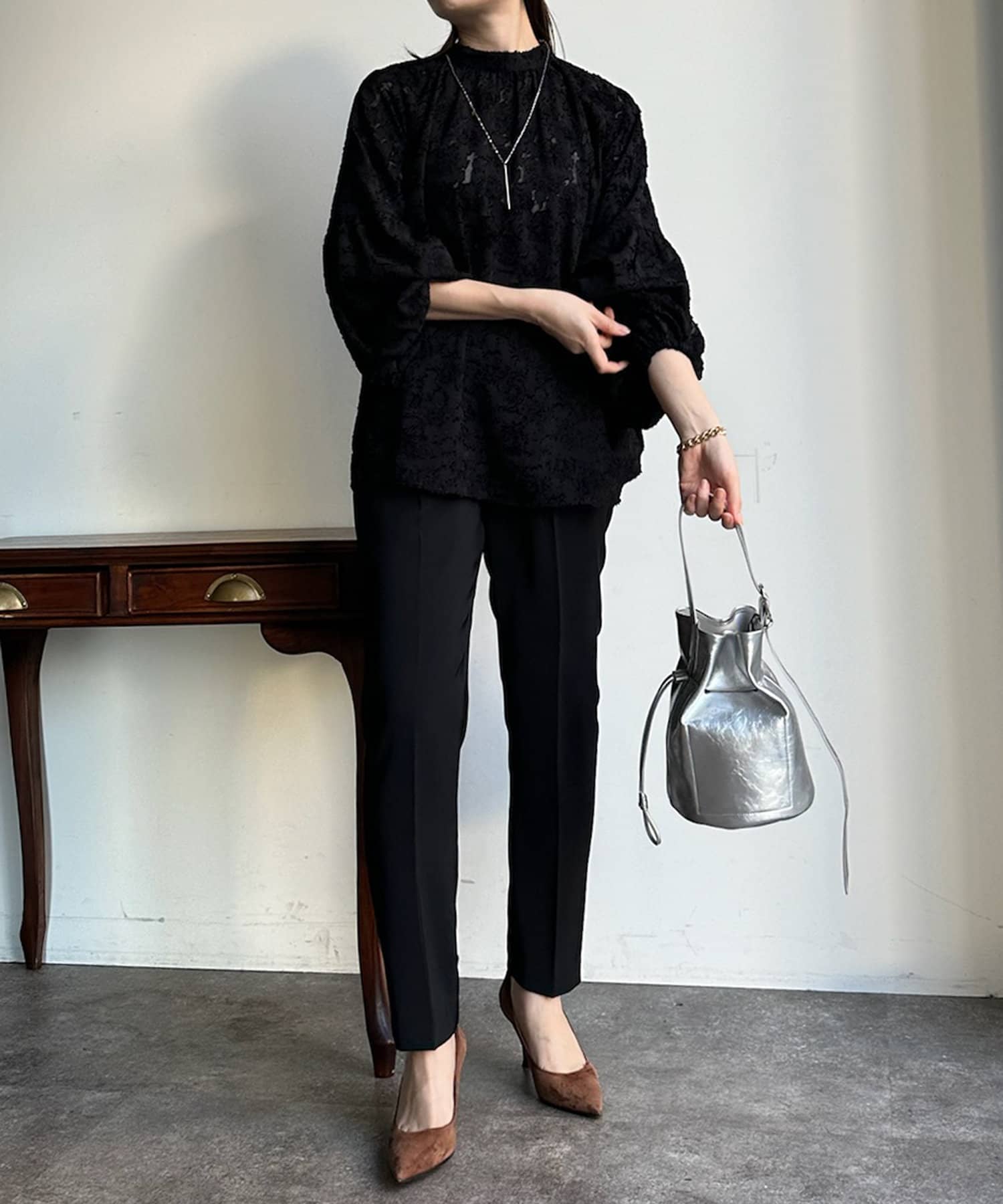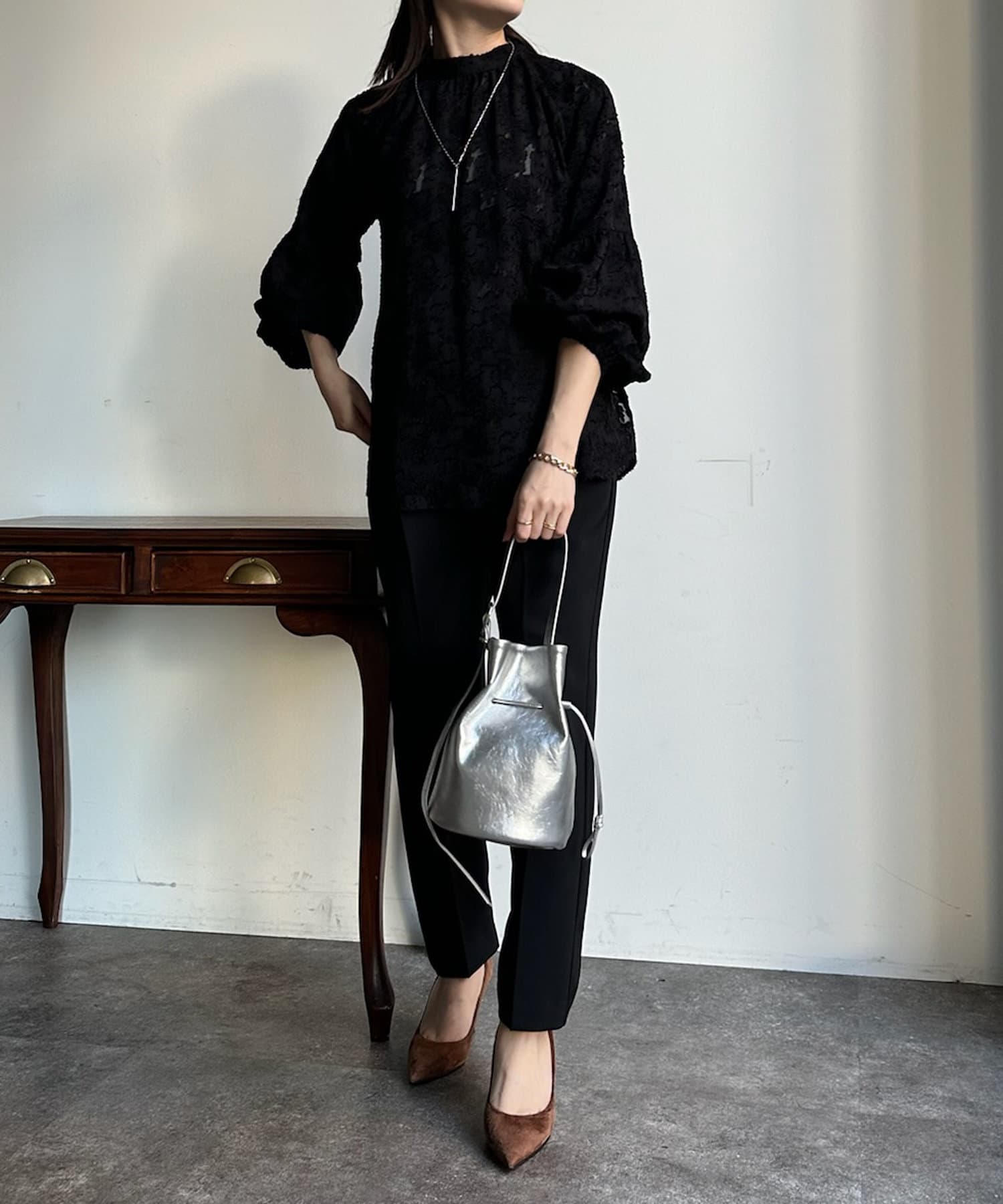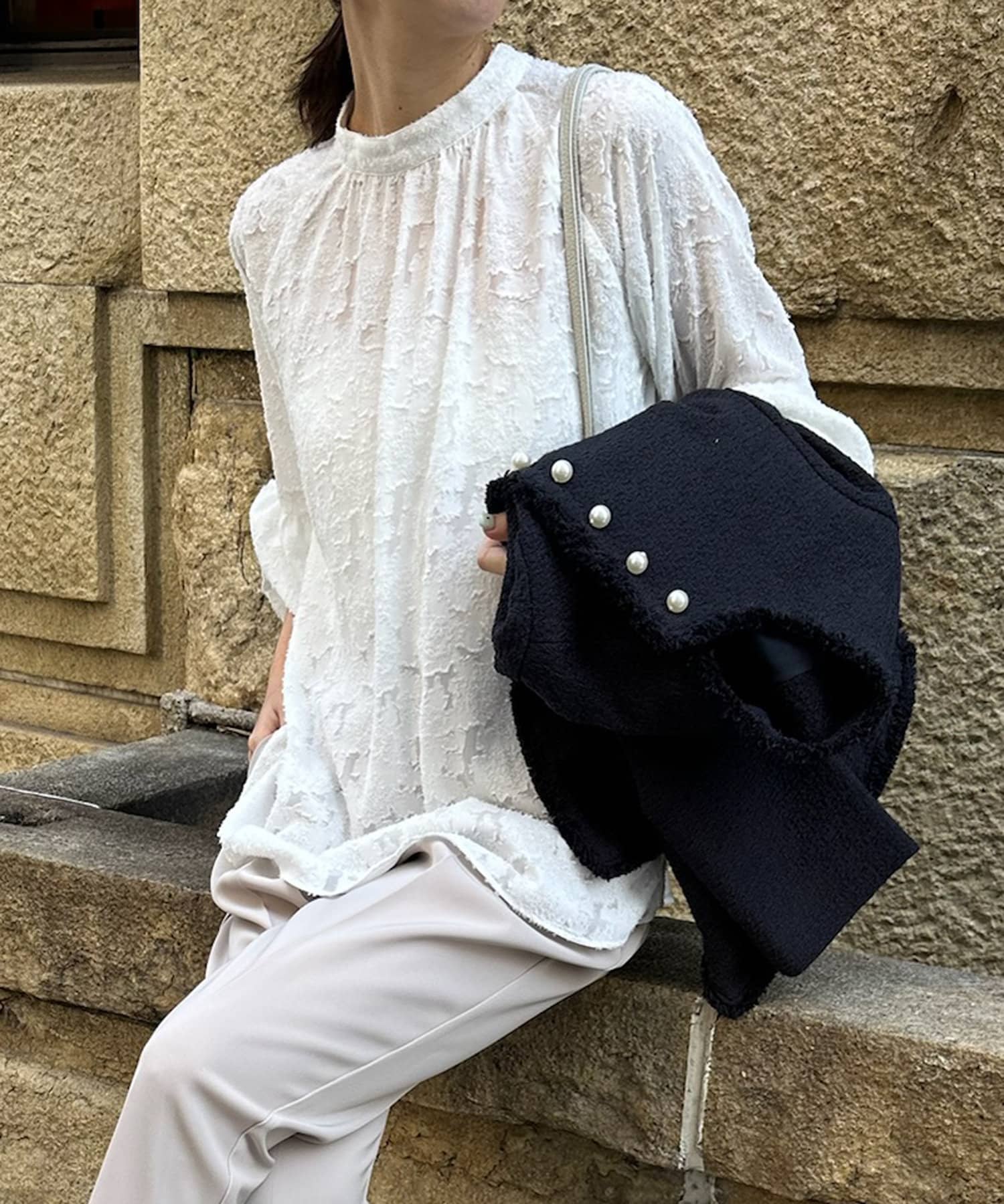 素材の厚みで表現されたニュアンス感のあるジャカード柄のブラウスが登場!