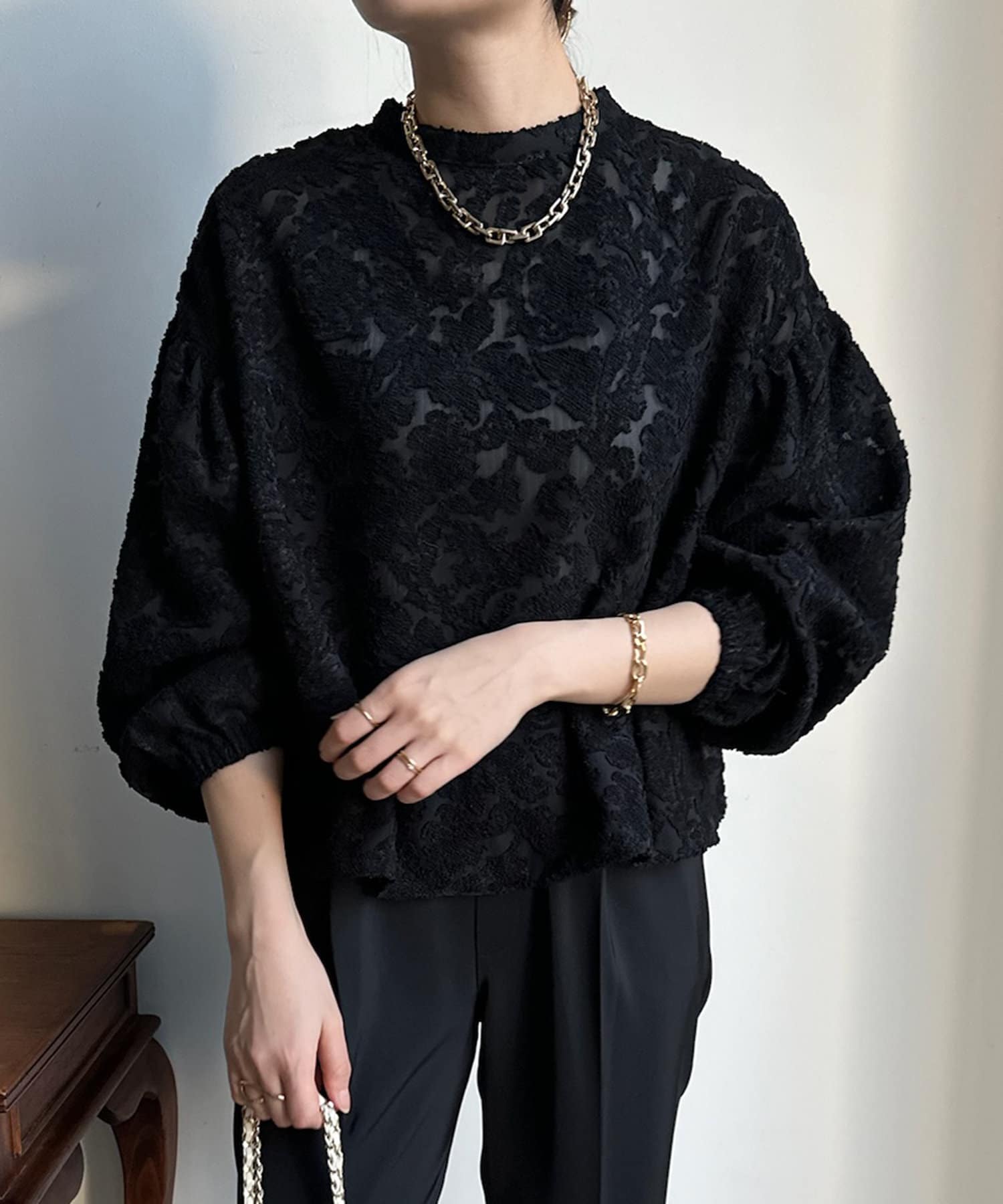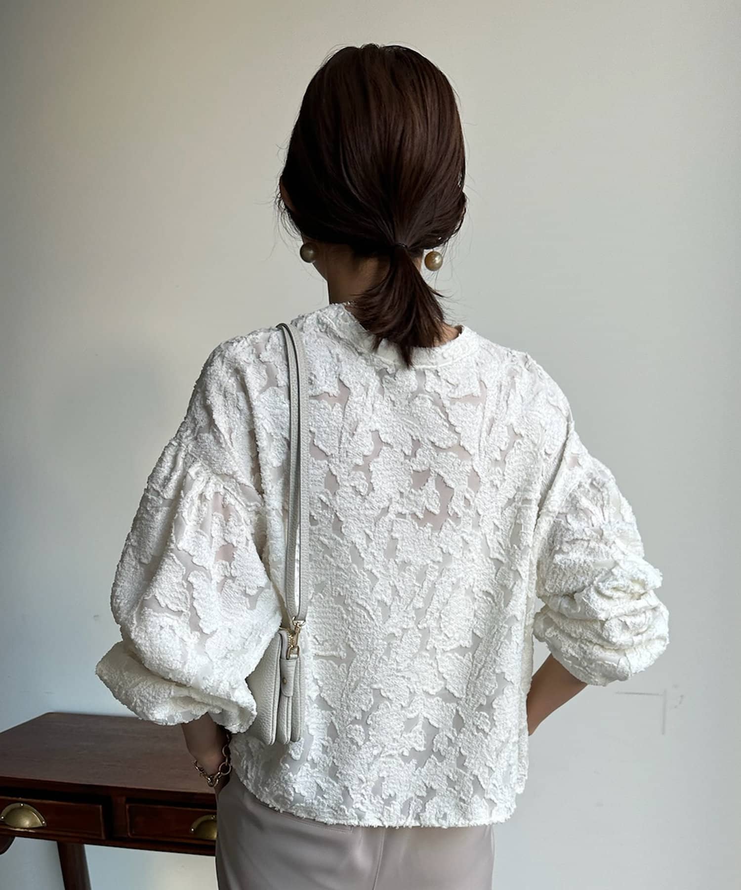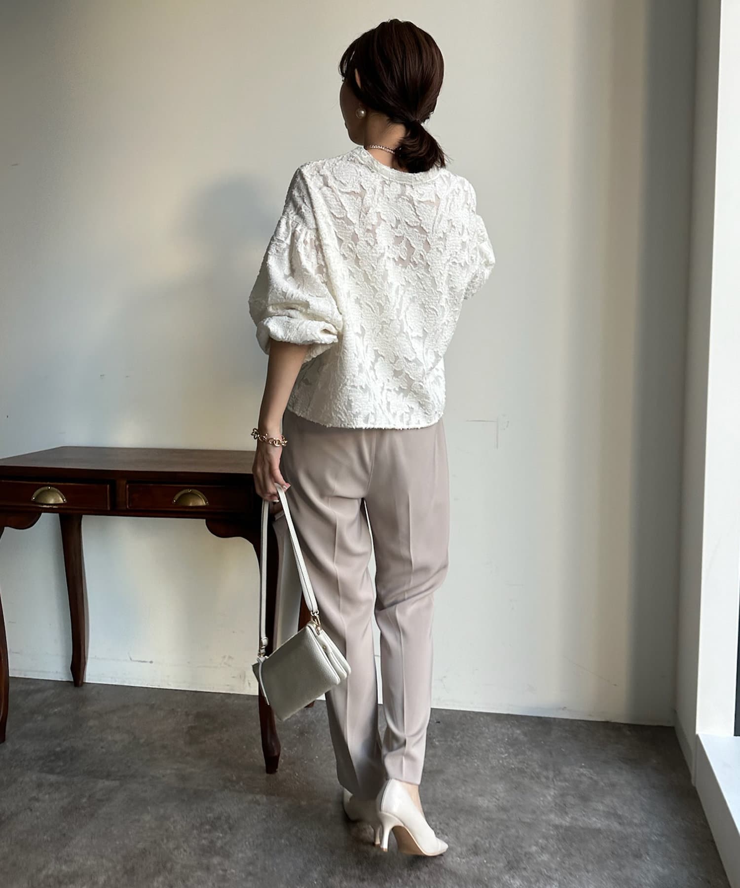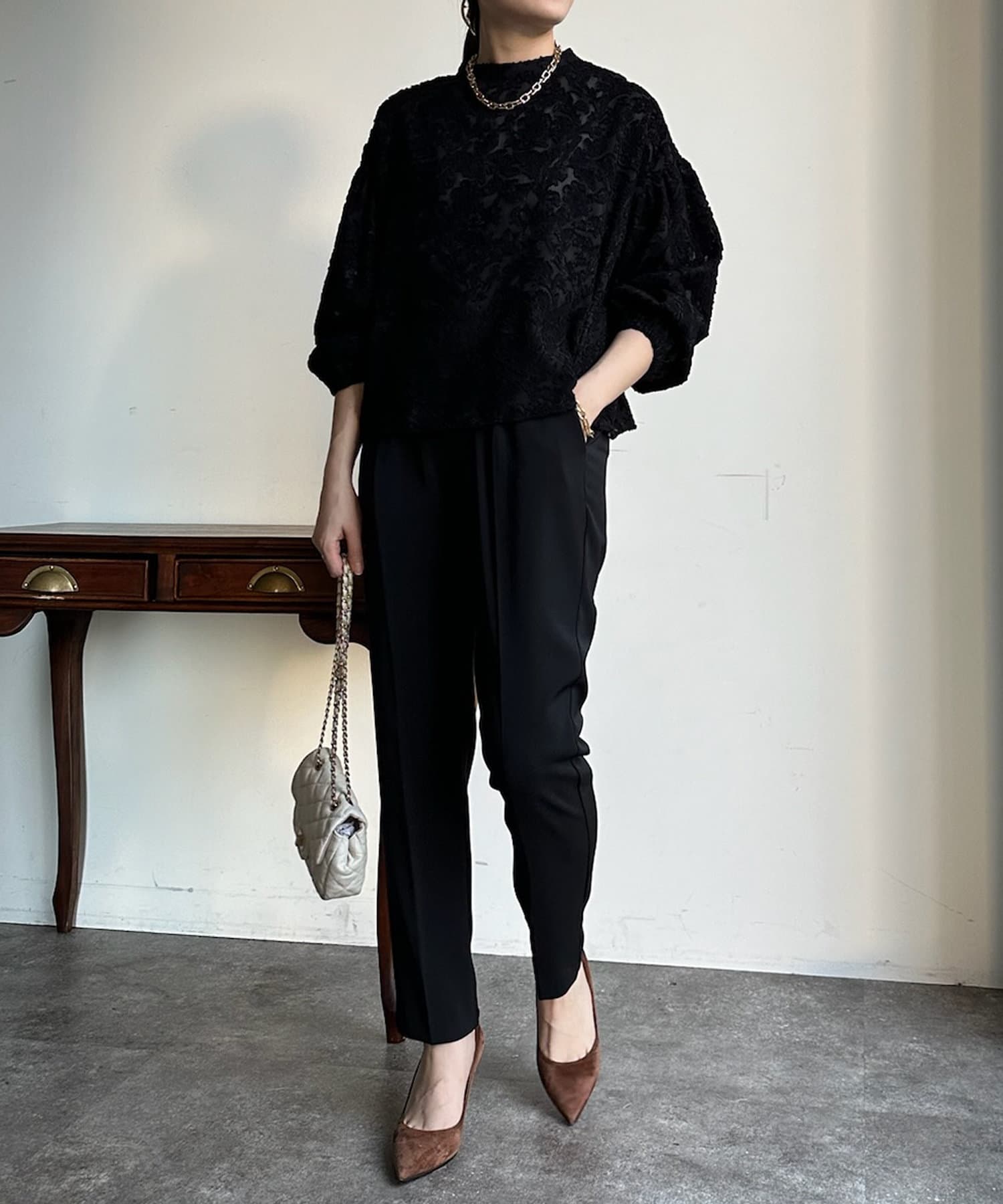ボリューム袖がアクセントになり、レースデザインがシンプルながらもこなれ感をプラスしてくれますよ。