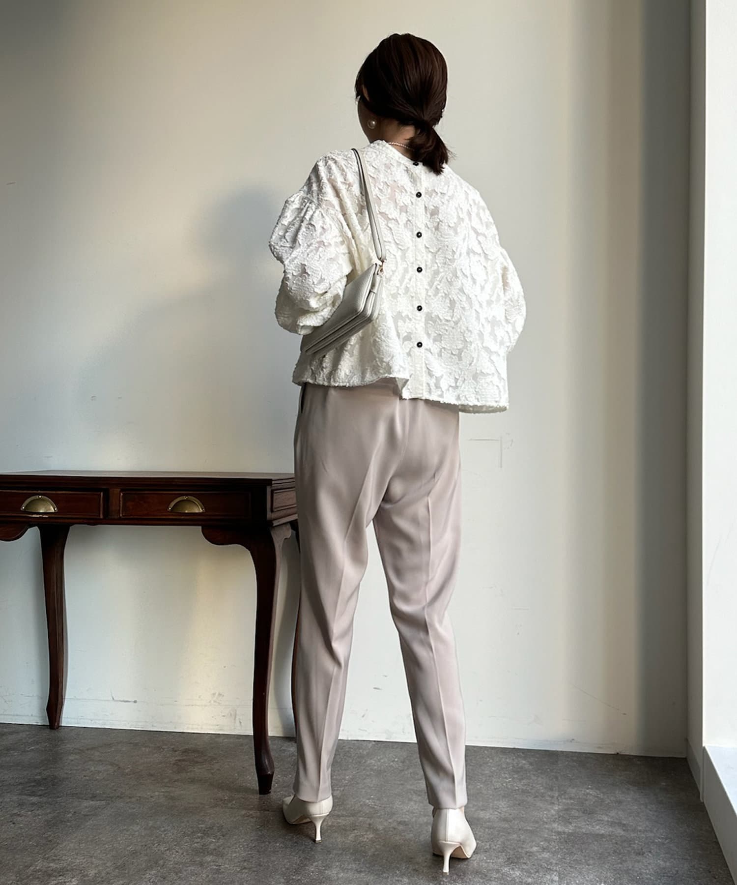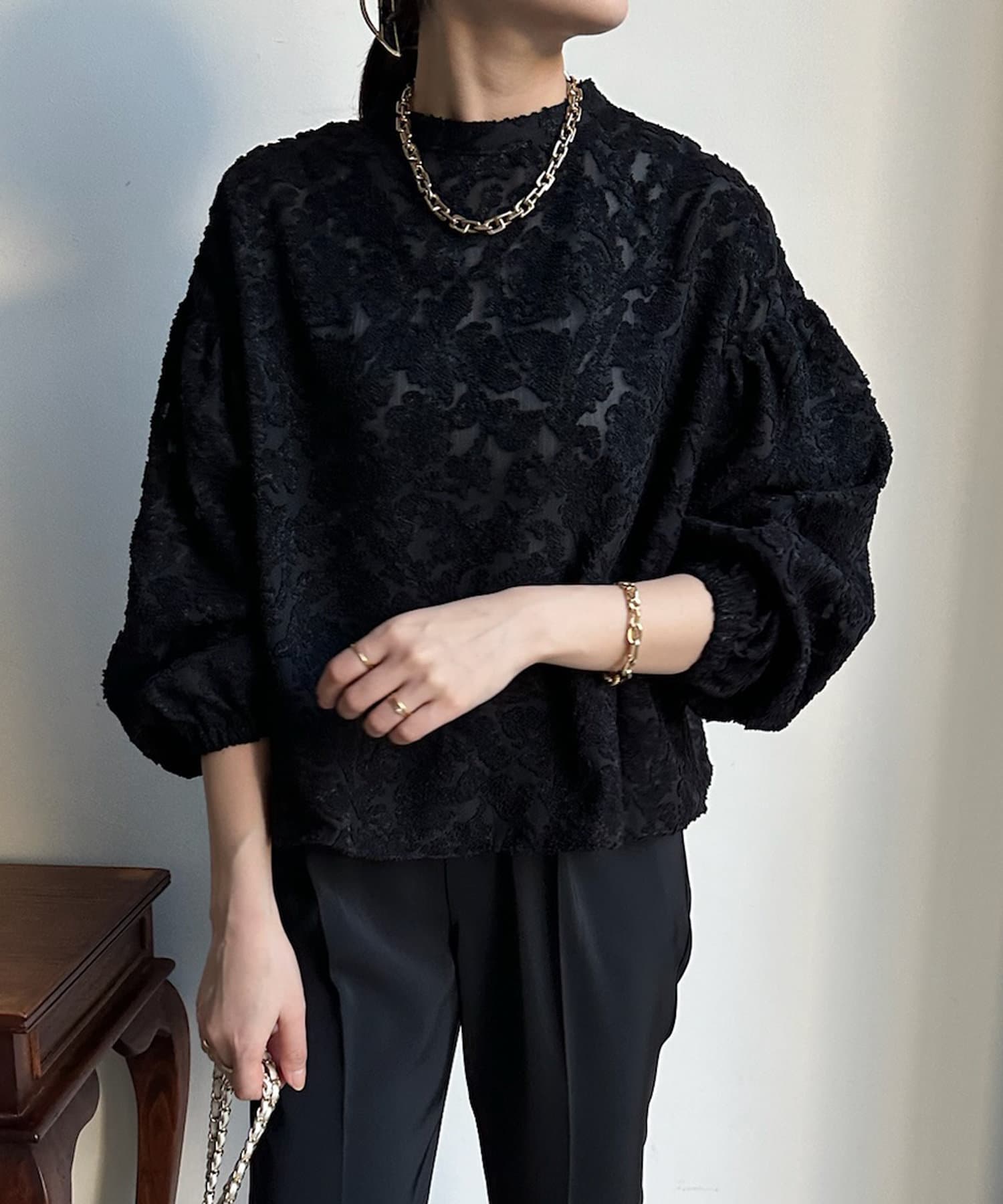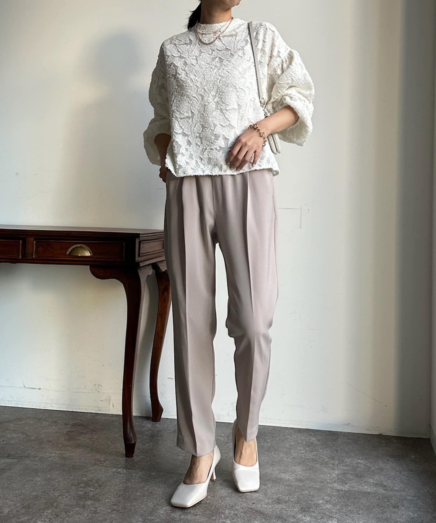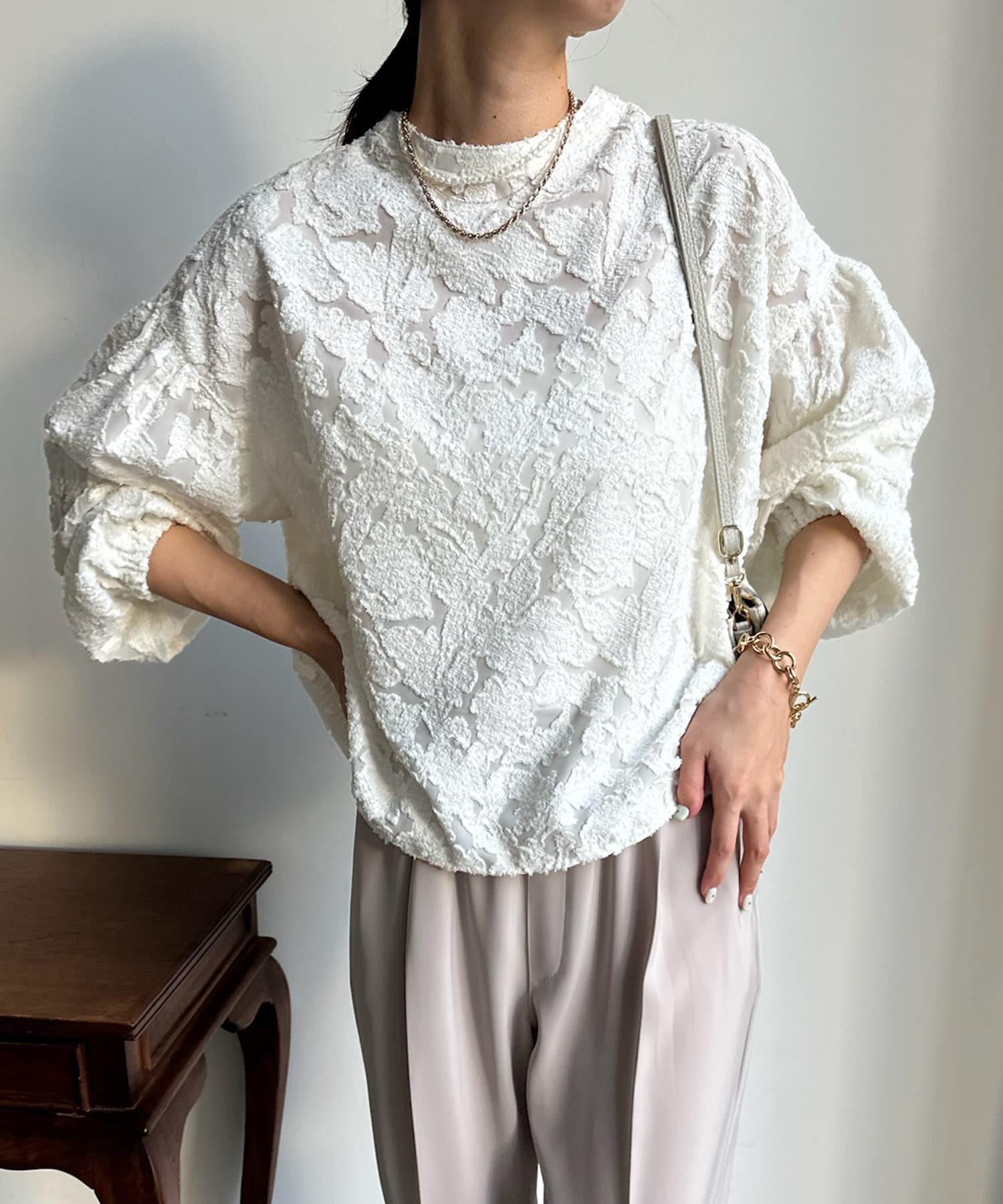 ボリューム袖がアクセントになり、レースデザインがシンプルながらもこなれ感をプラスしてくれますよ。