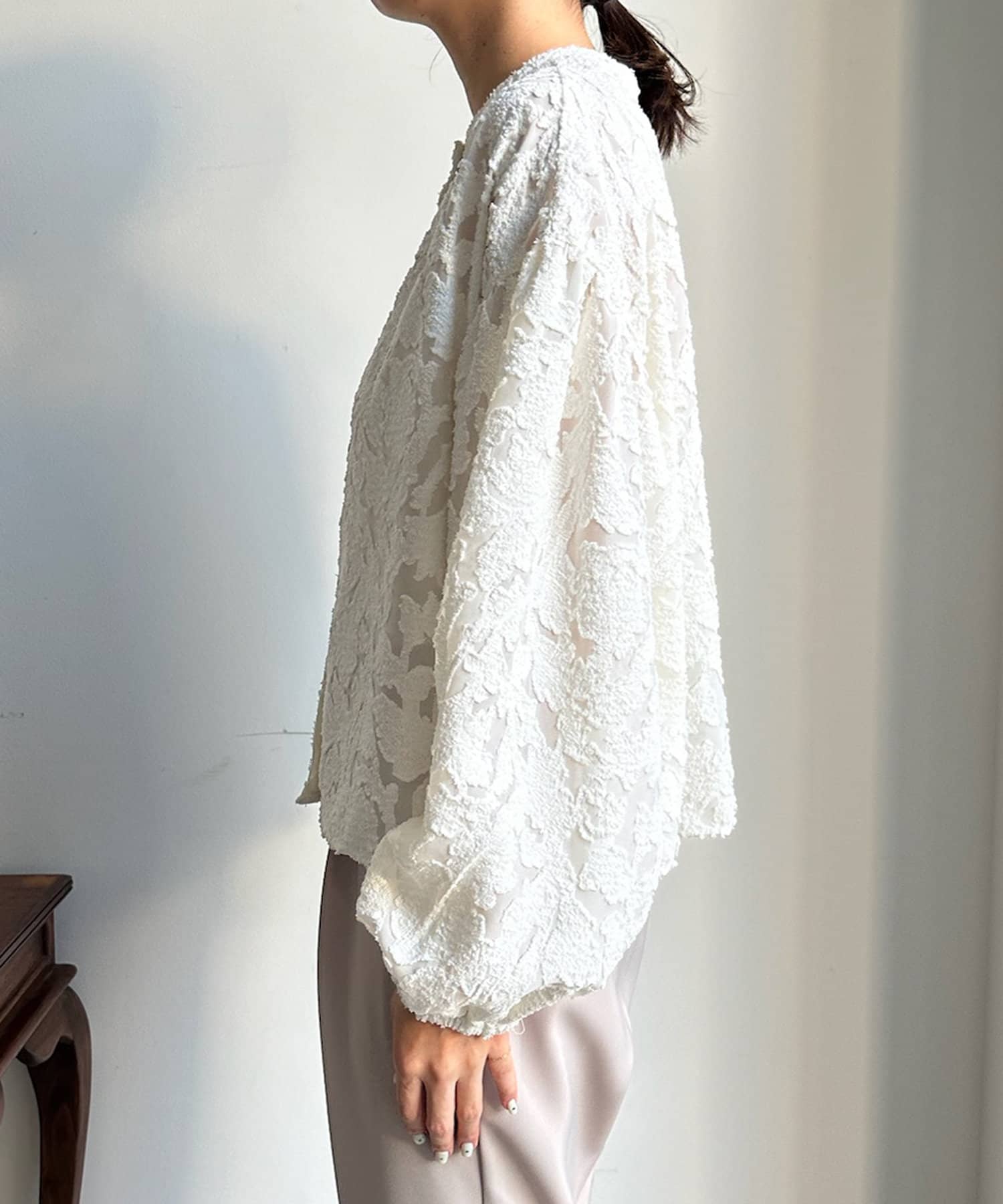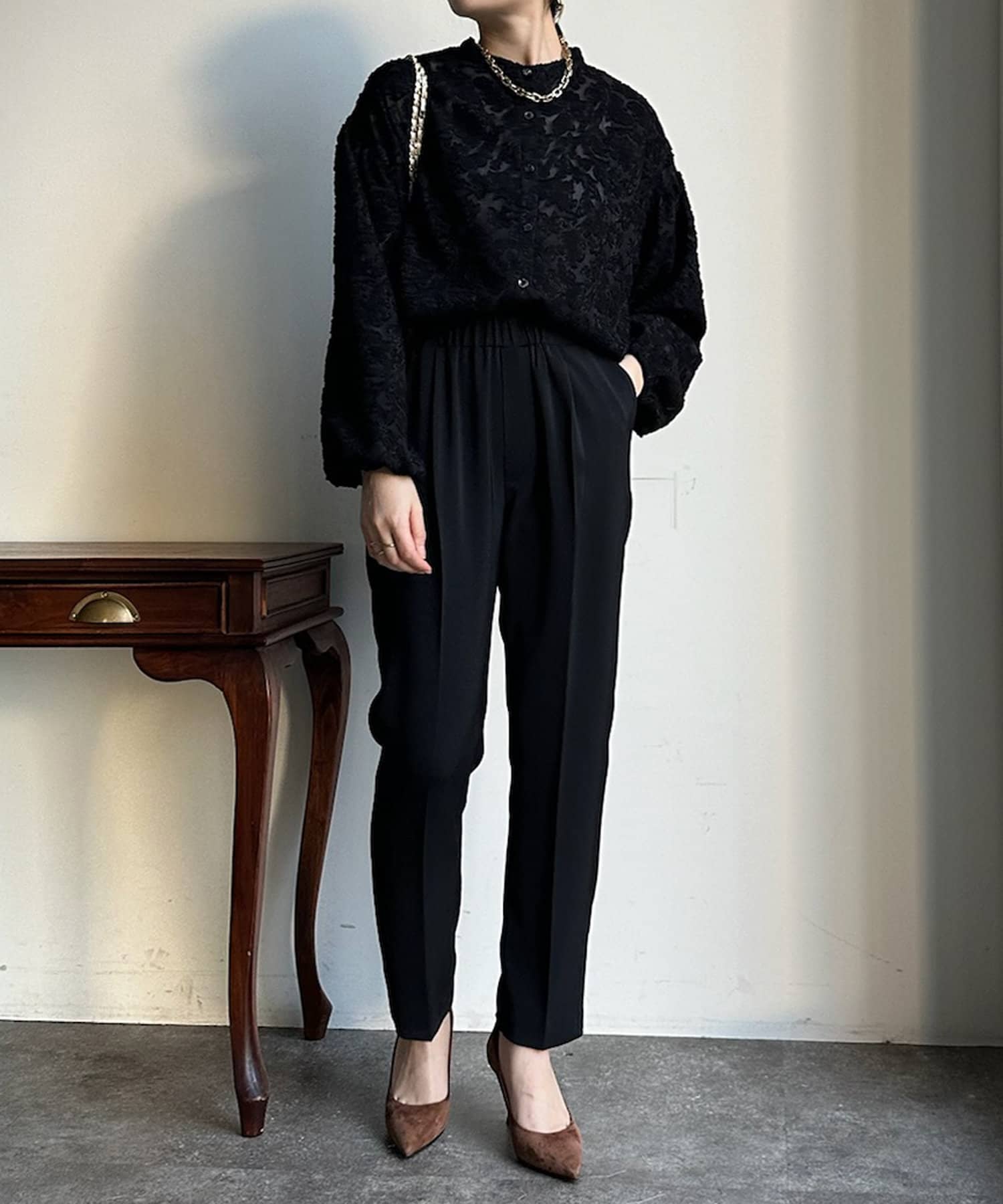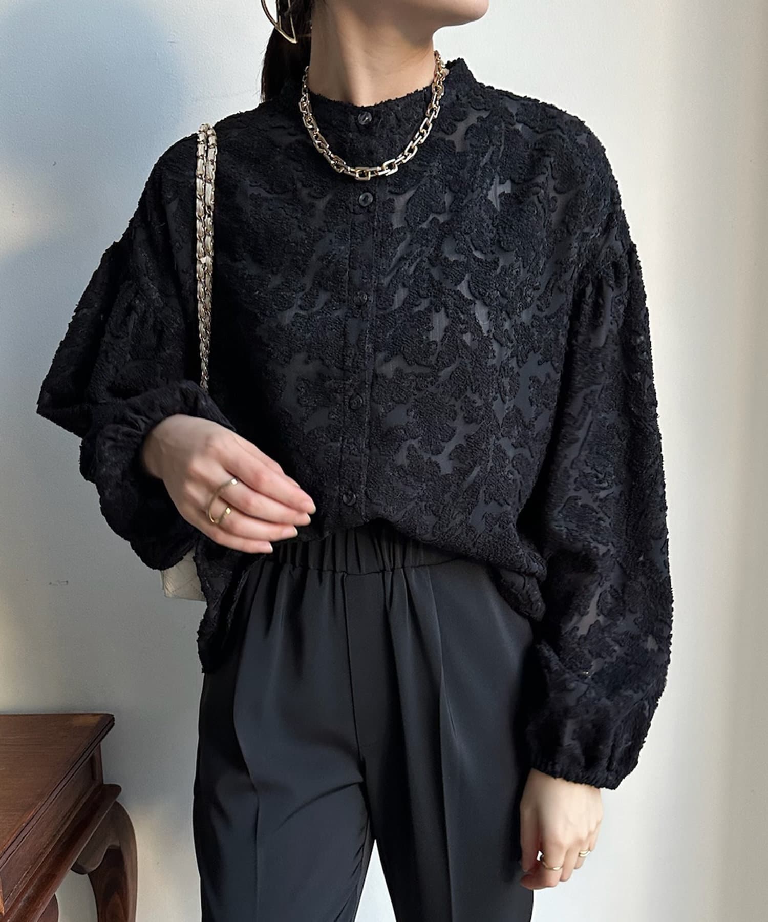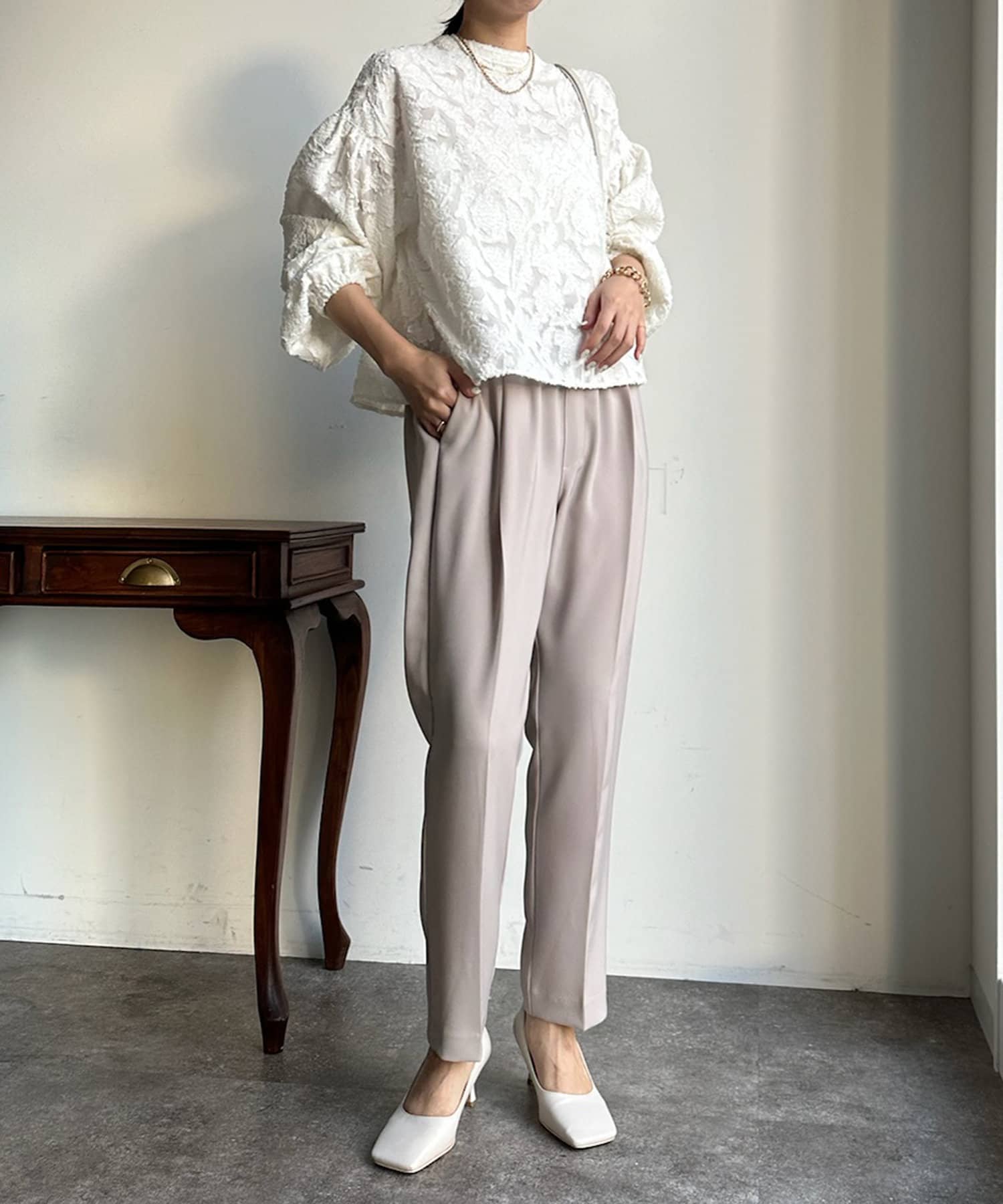 ボリューム袖がアクセントになり、レースデザインがシンプルながらもこなれ感をプラスしてくれますよ。