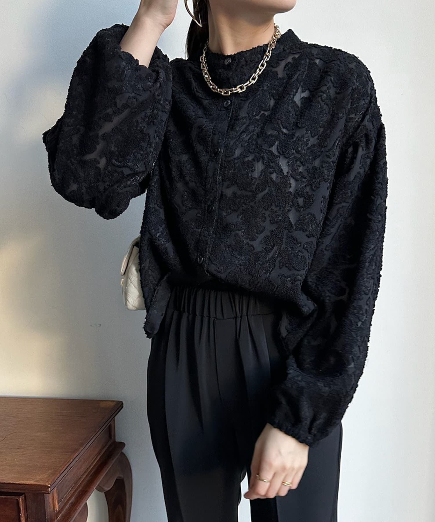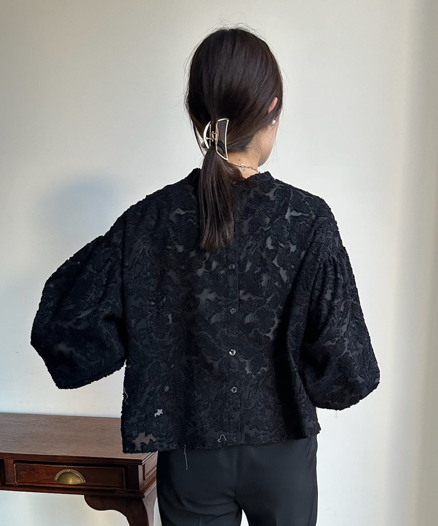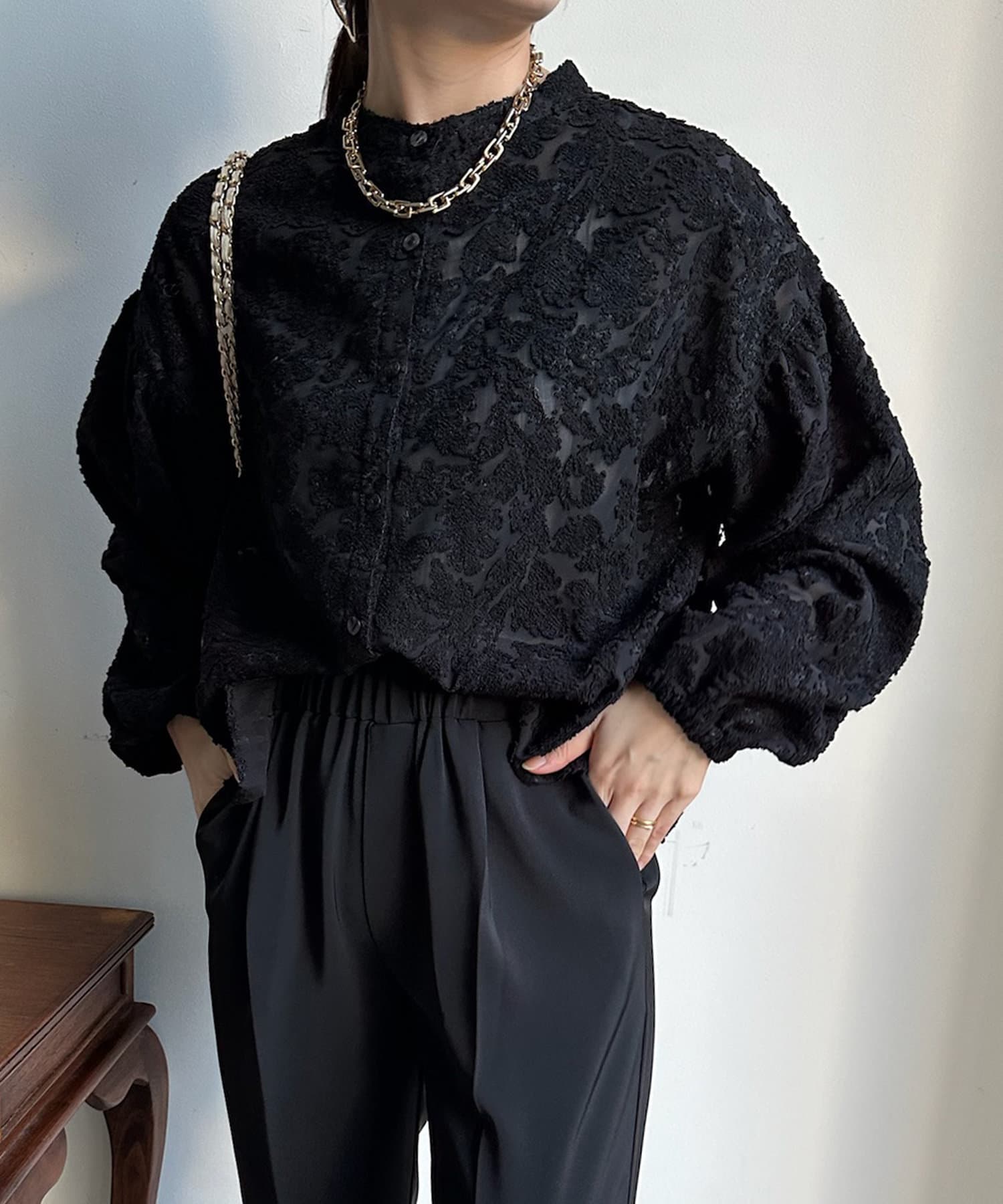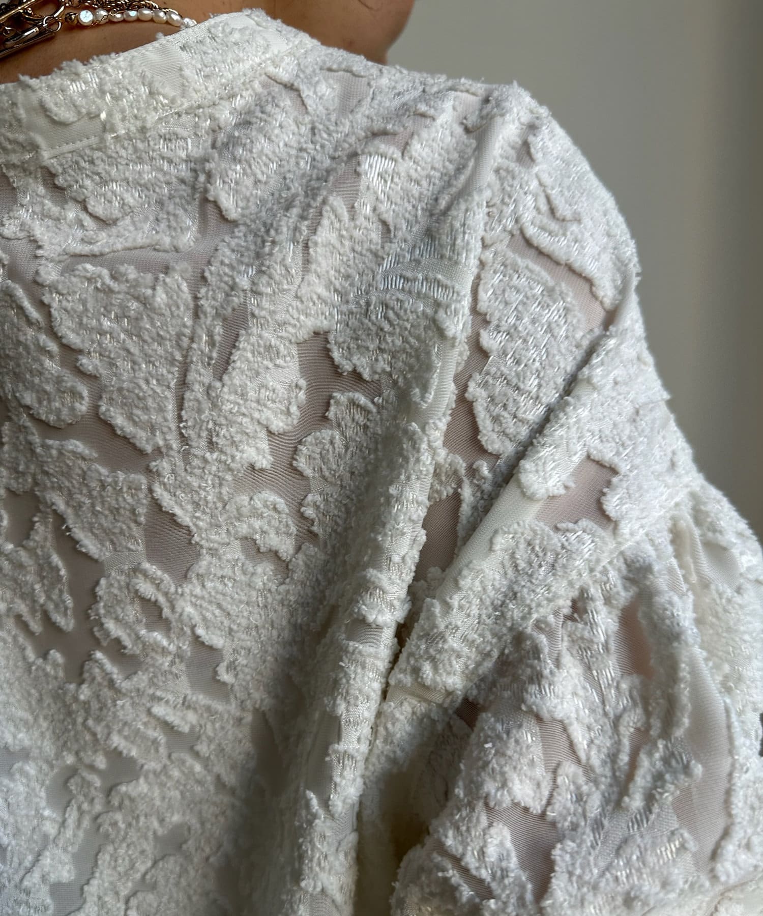 ボリューム袖がアクセントになり、レースデザインがシンプルながらもこなれ感をプラスしてくれますよ。