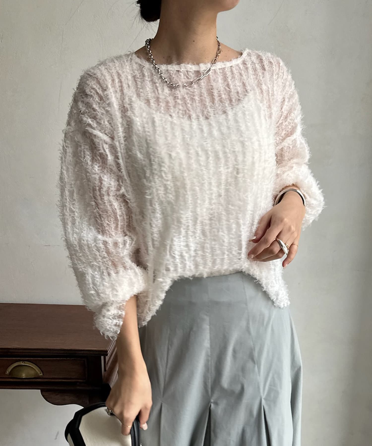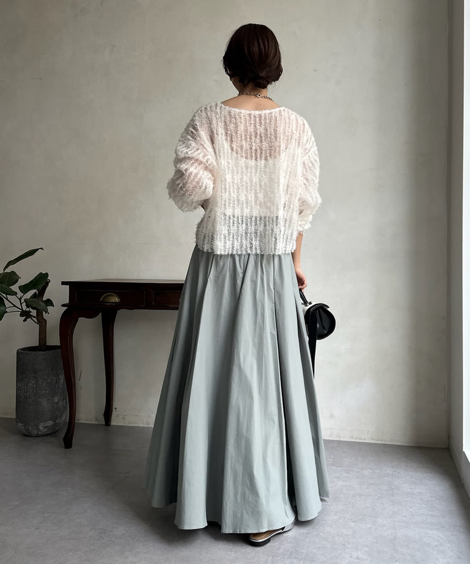 透け感がシーズンムードに抜け感を出してくれ、大人な女性の着こなしが叶います。