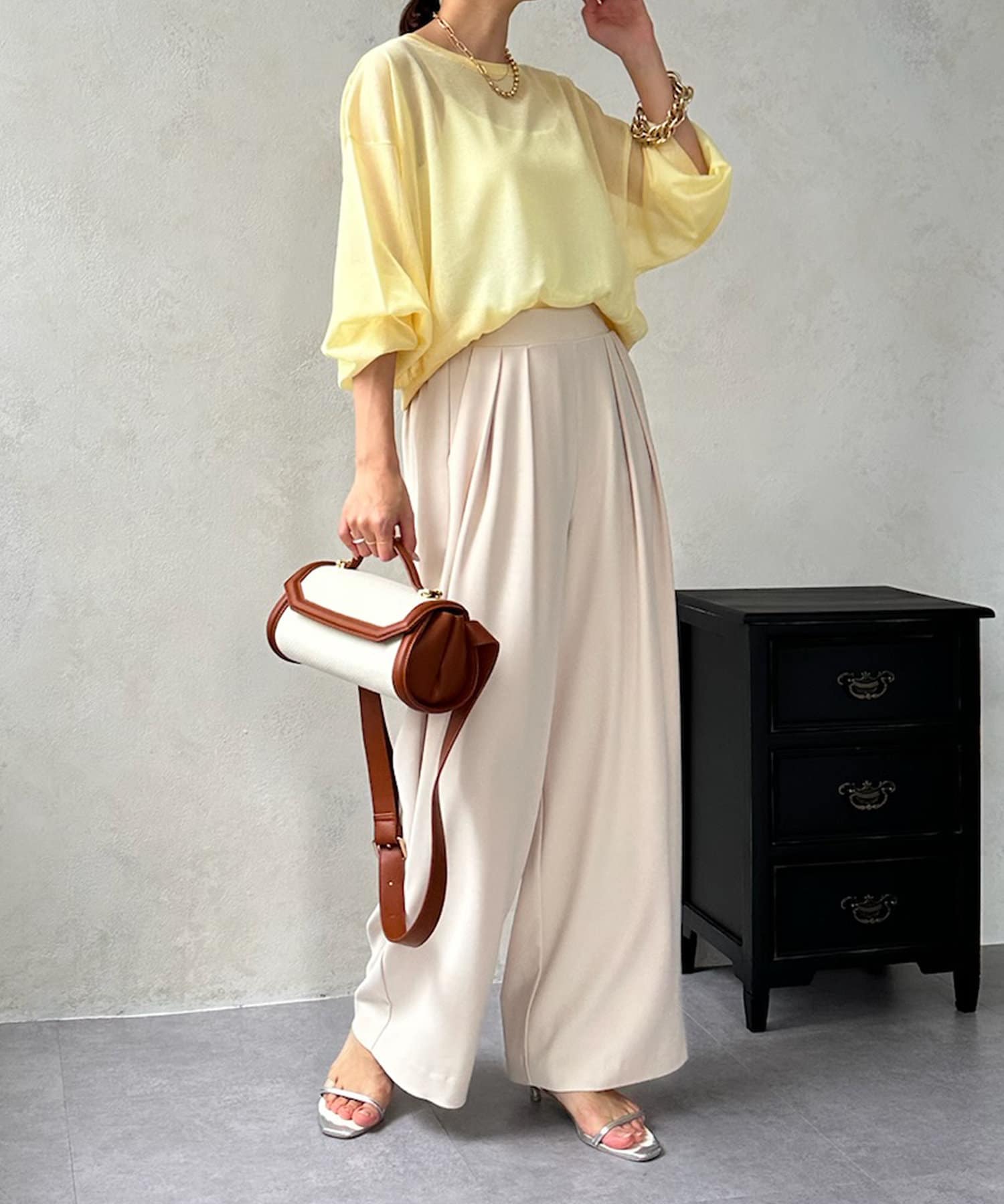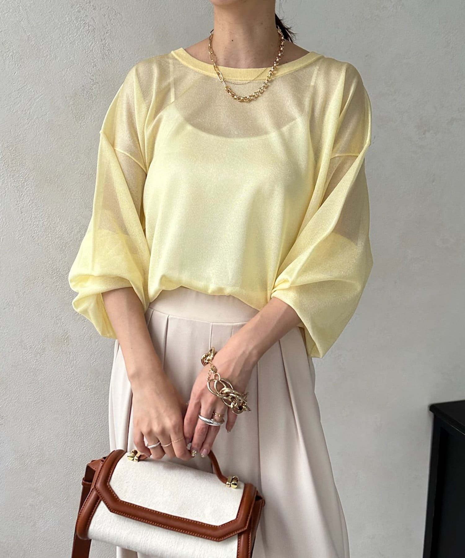 シアー感のある素材と新鮮なカラー展開でシーズンムード高まる1着。