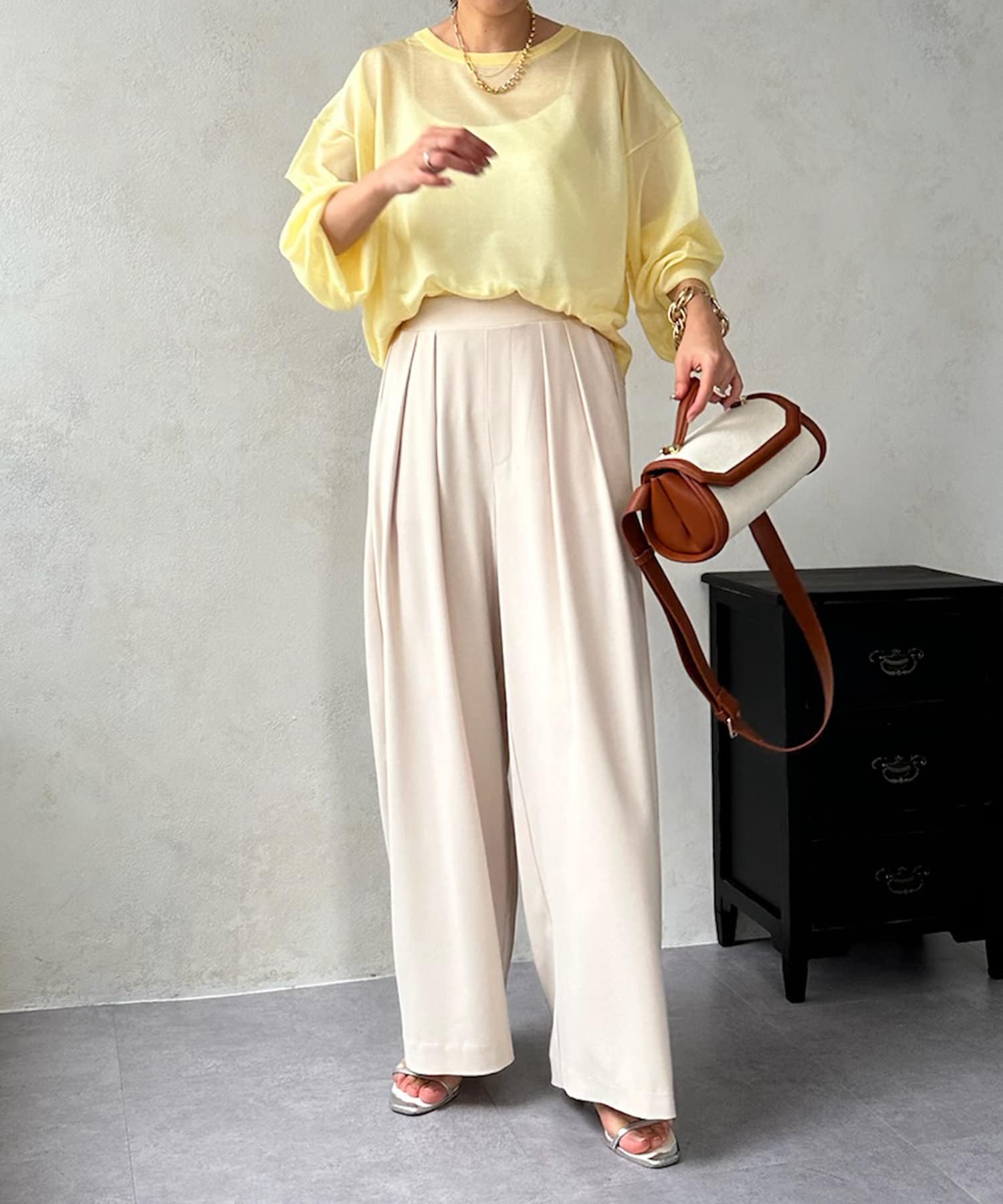 肌離れのいいさらっとドライタッチな素材感で、ロングシーズン着られそうなアイテムです。