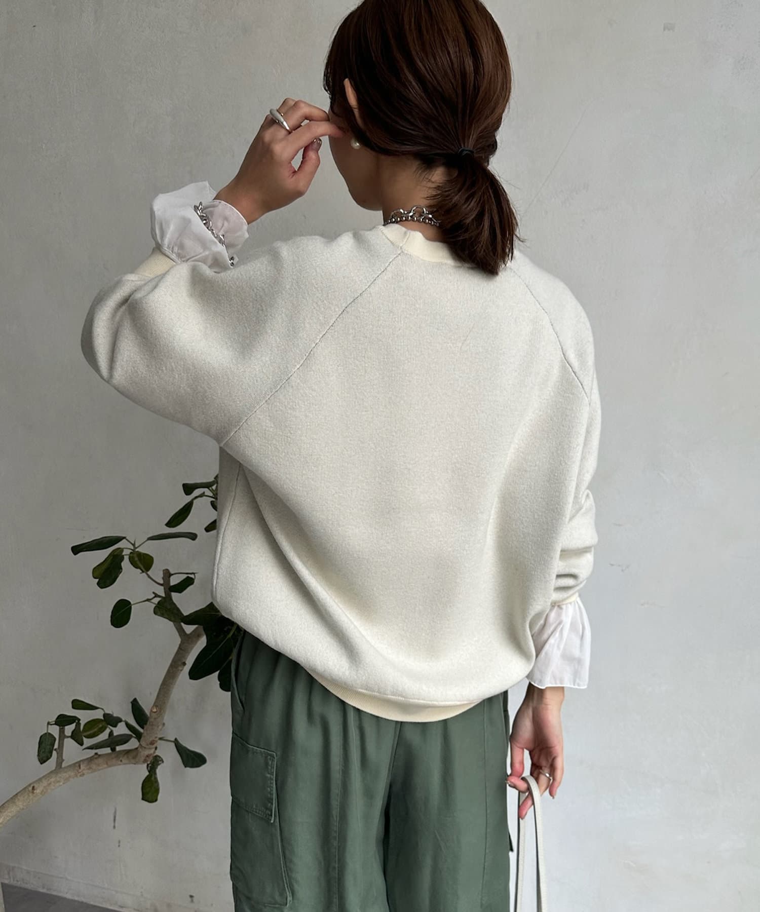 お袖部分はラグラン切り替えになっているため、リラックス感のある着こなしが叶います。