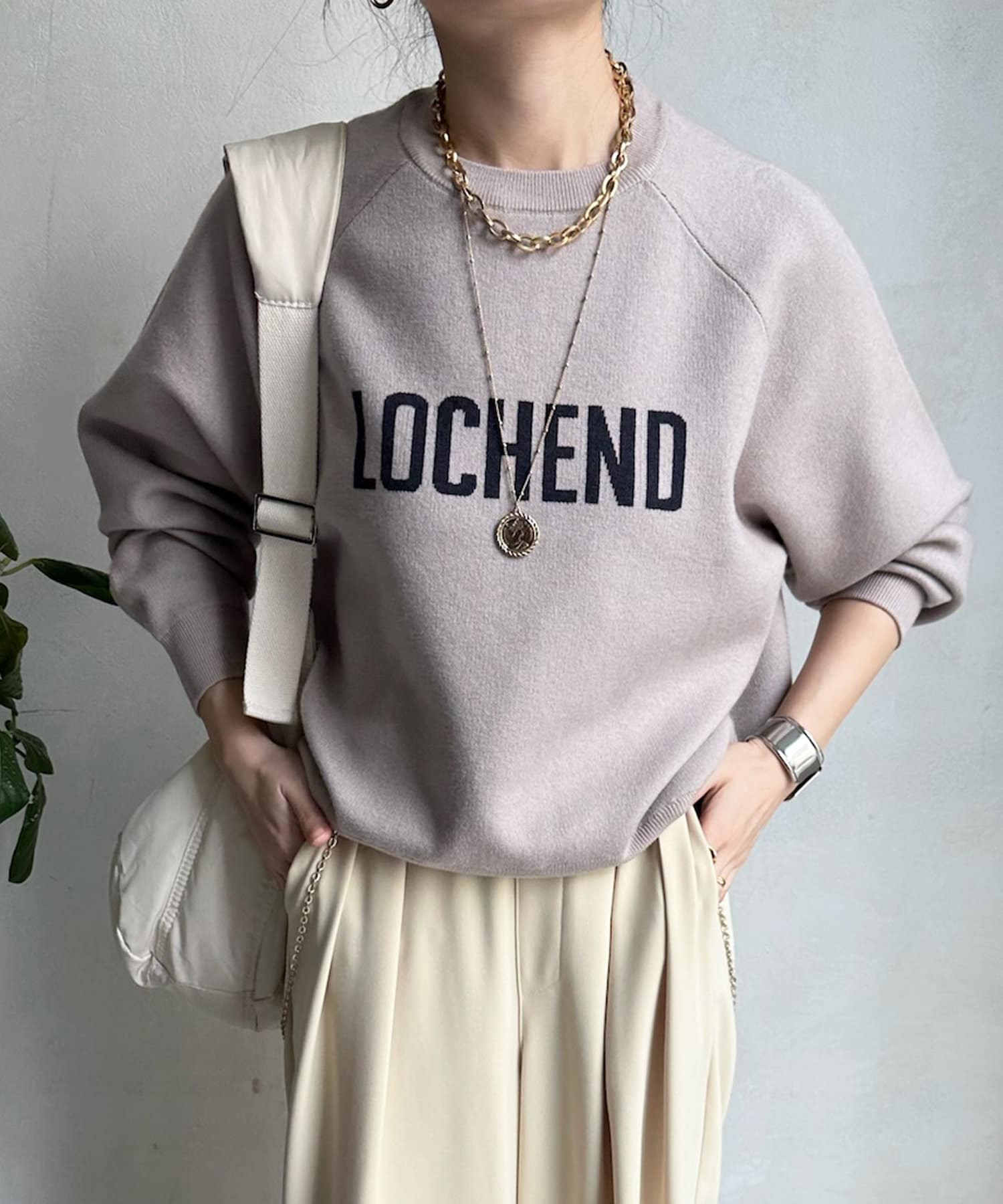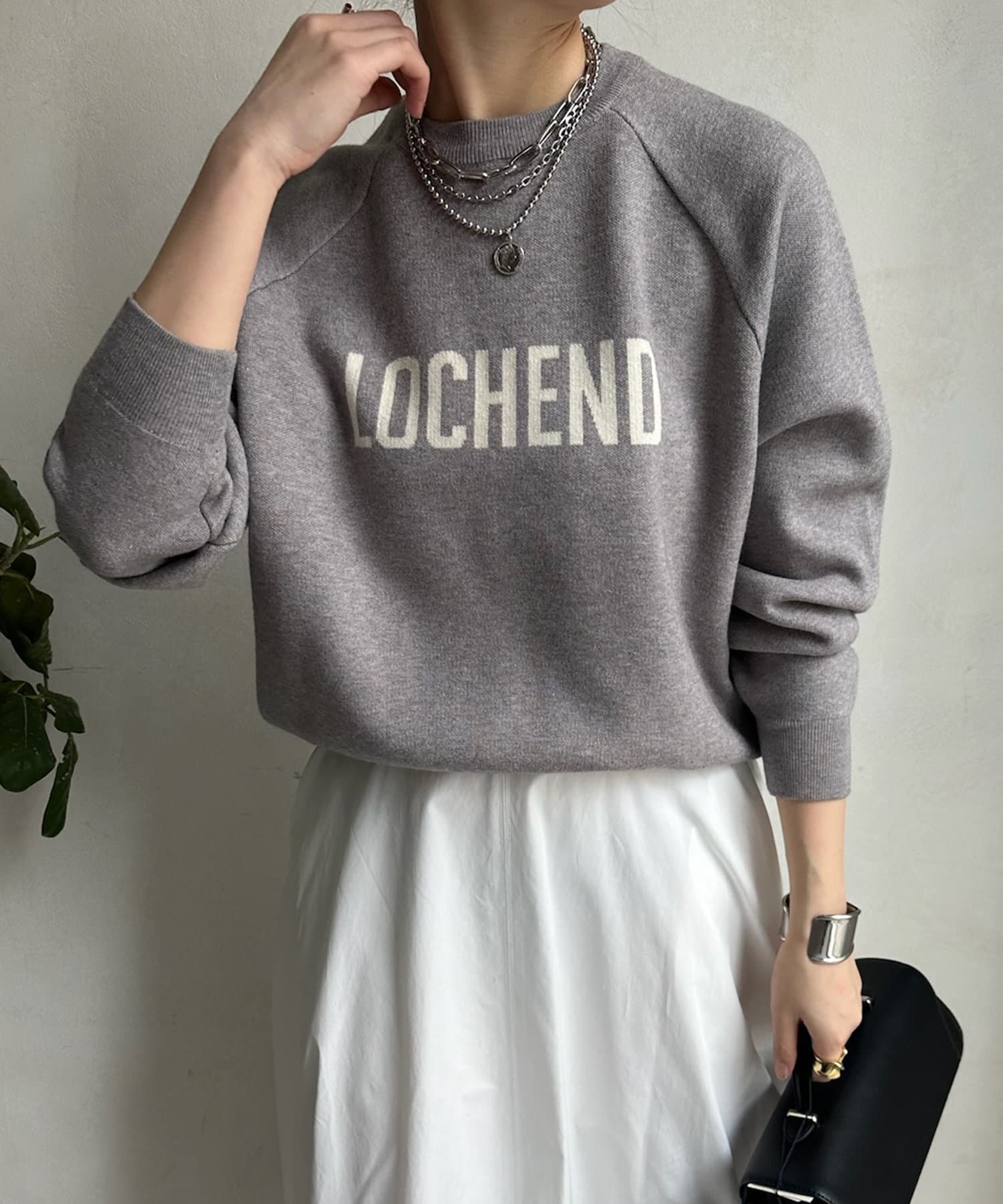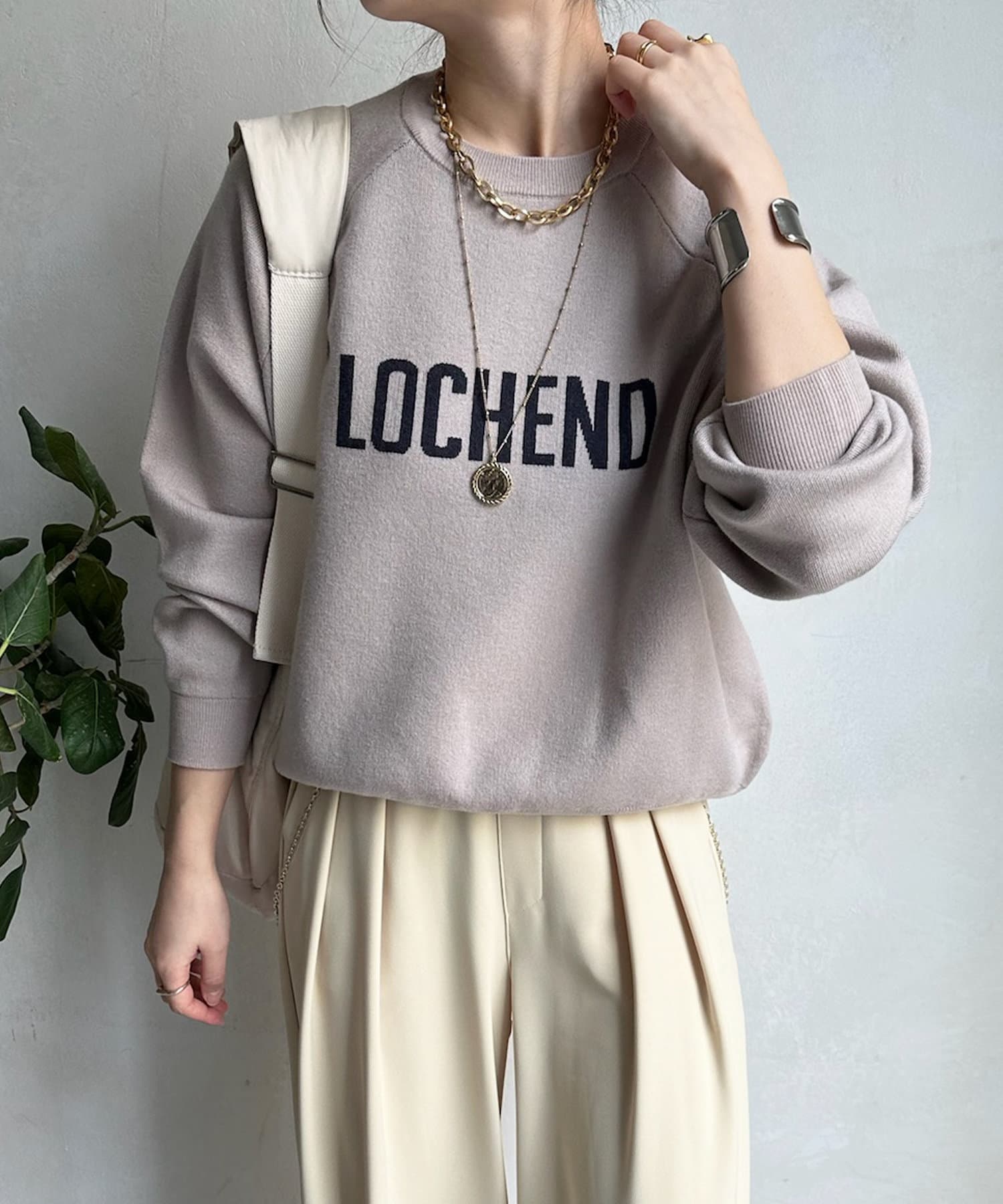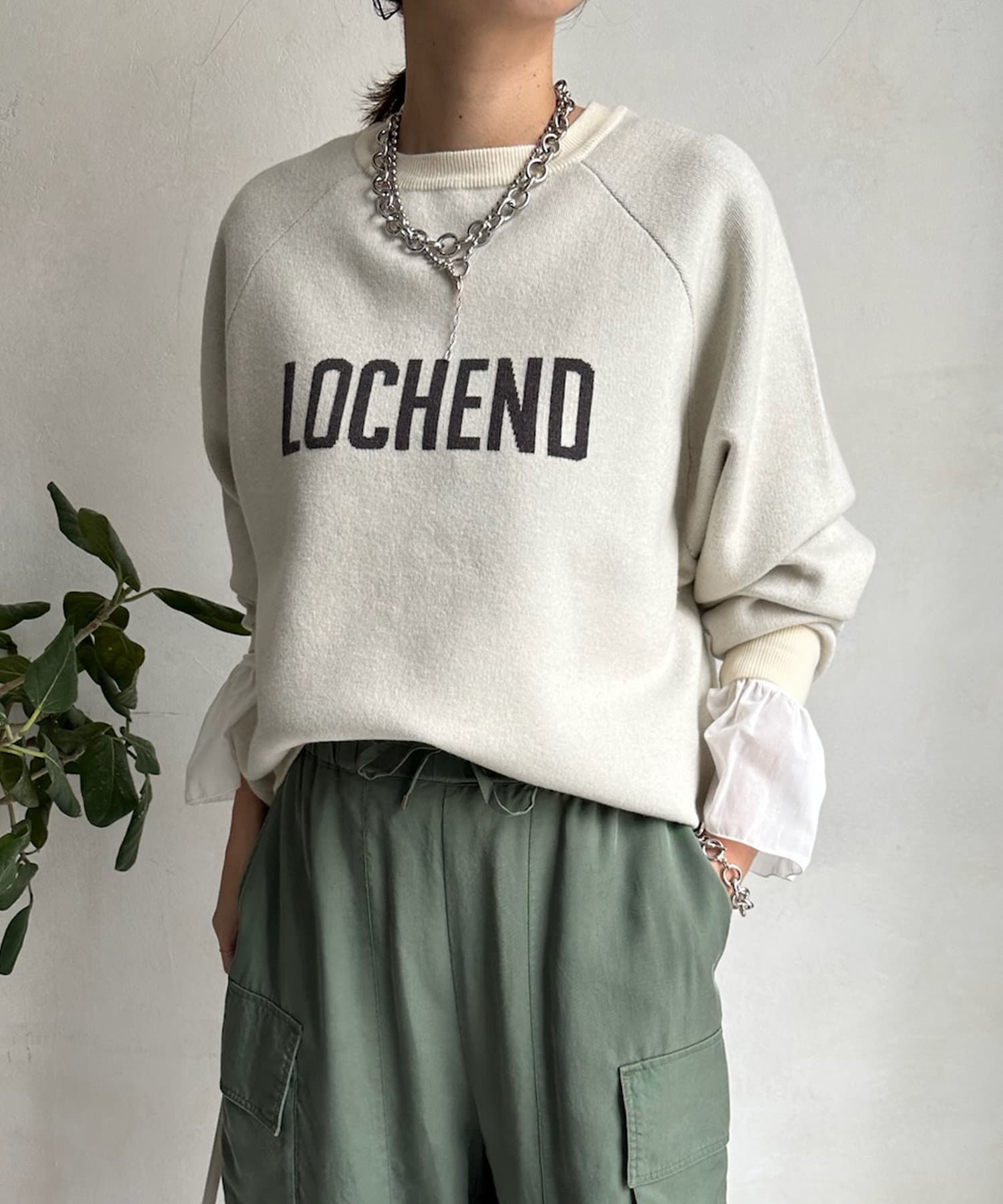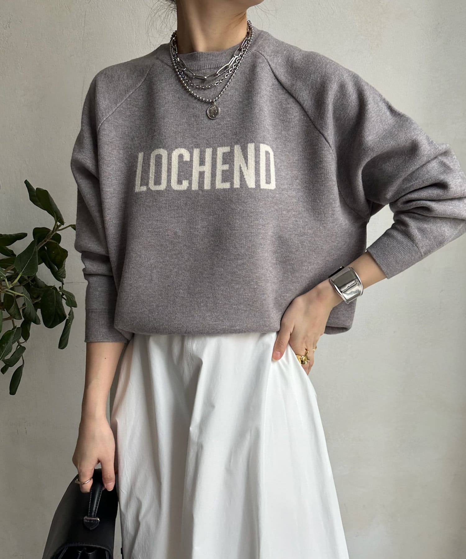 目を惹くロゴからこなれ感漂うニット。