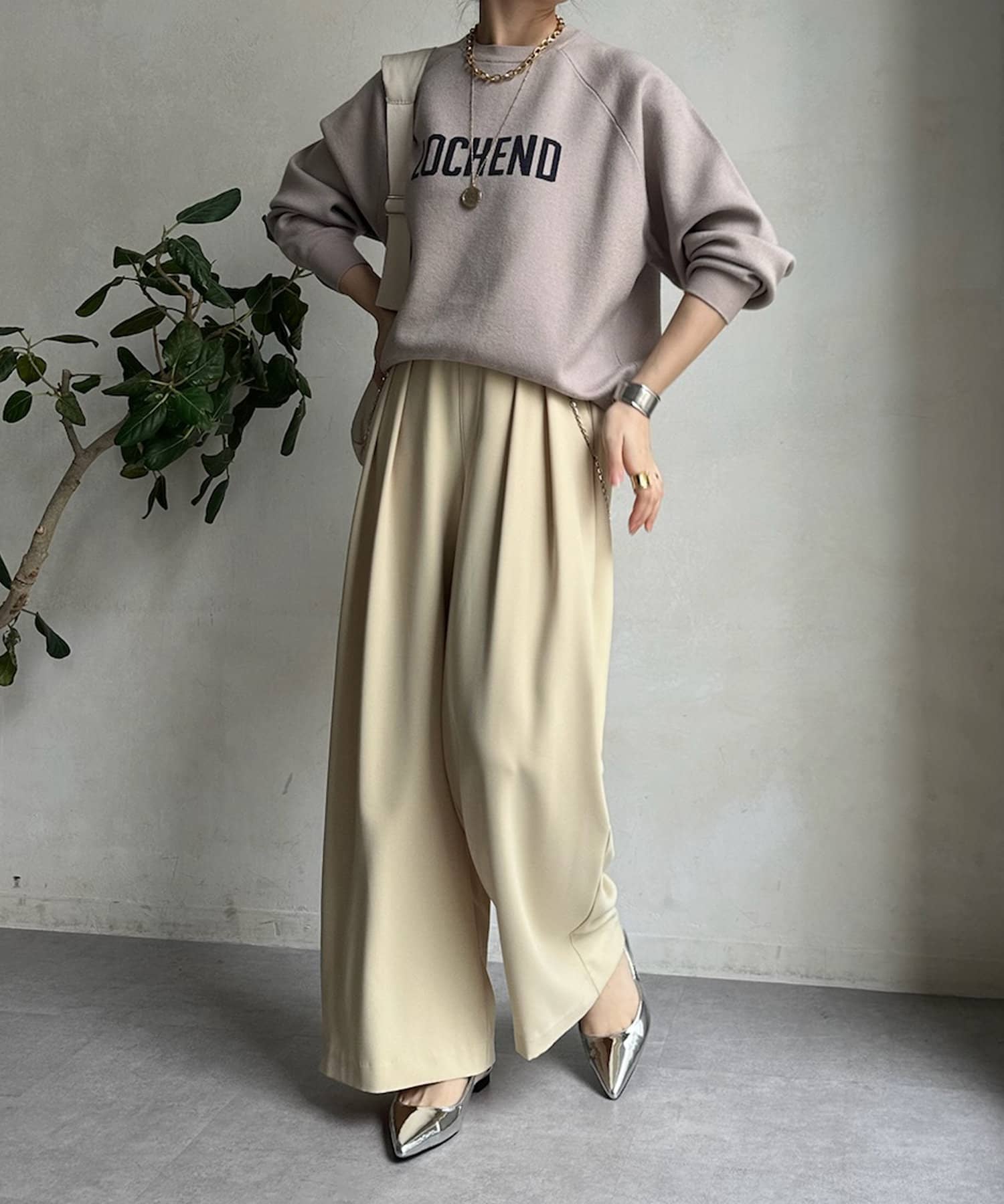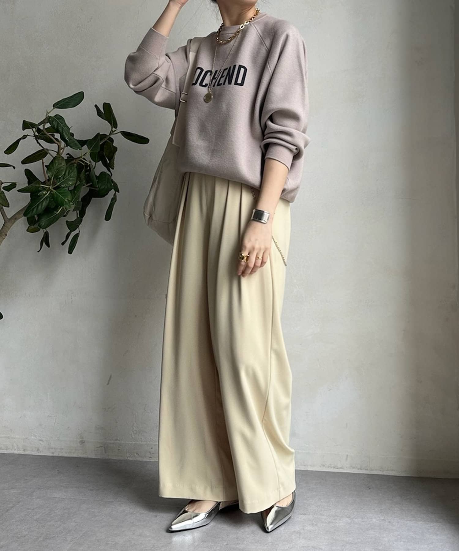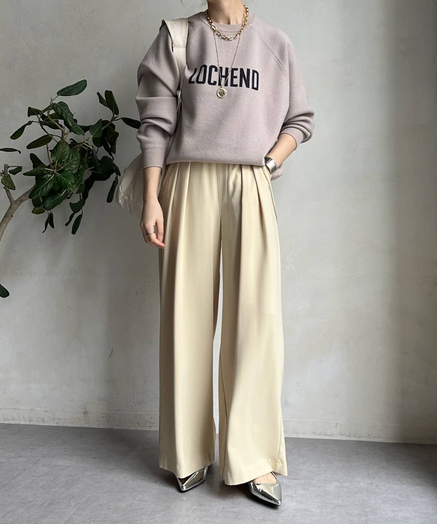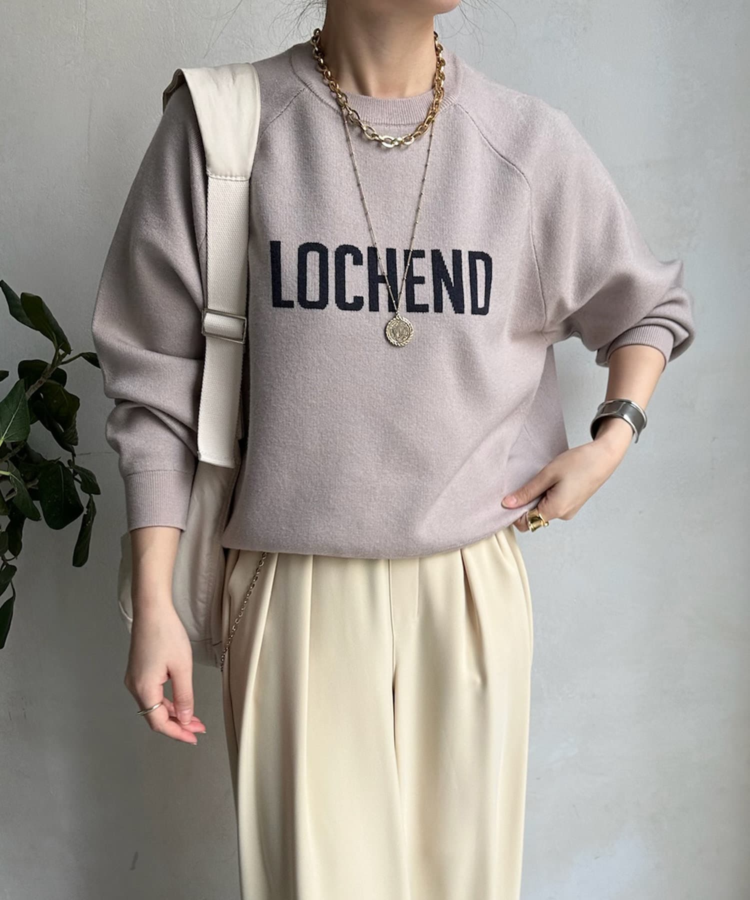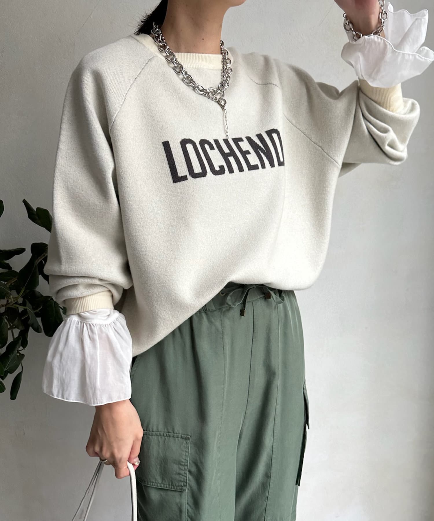 目を惹くロゴからこなれ感漂うニット。