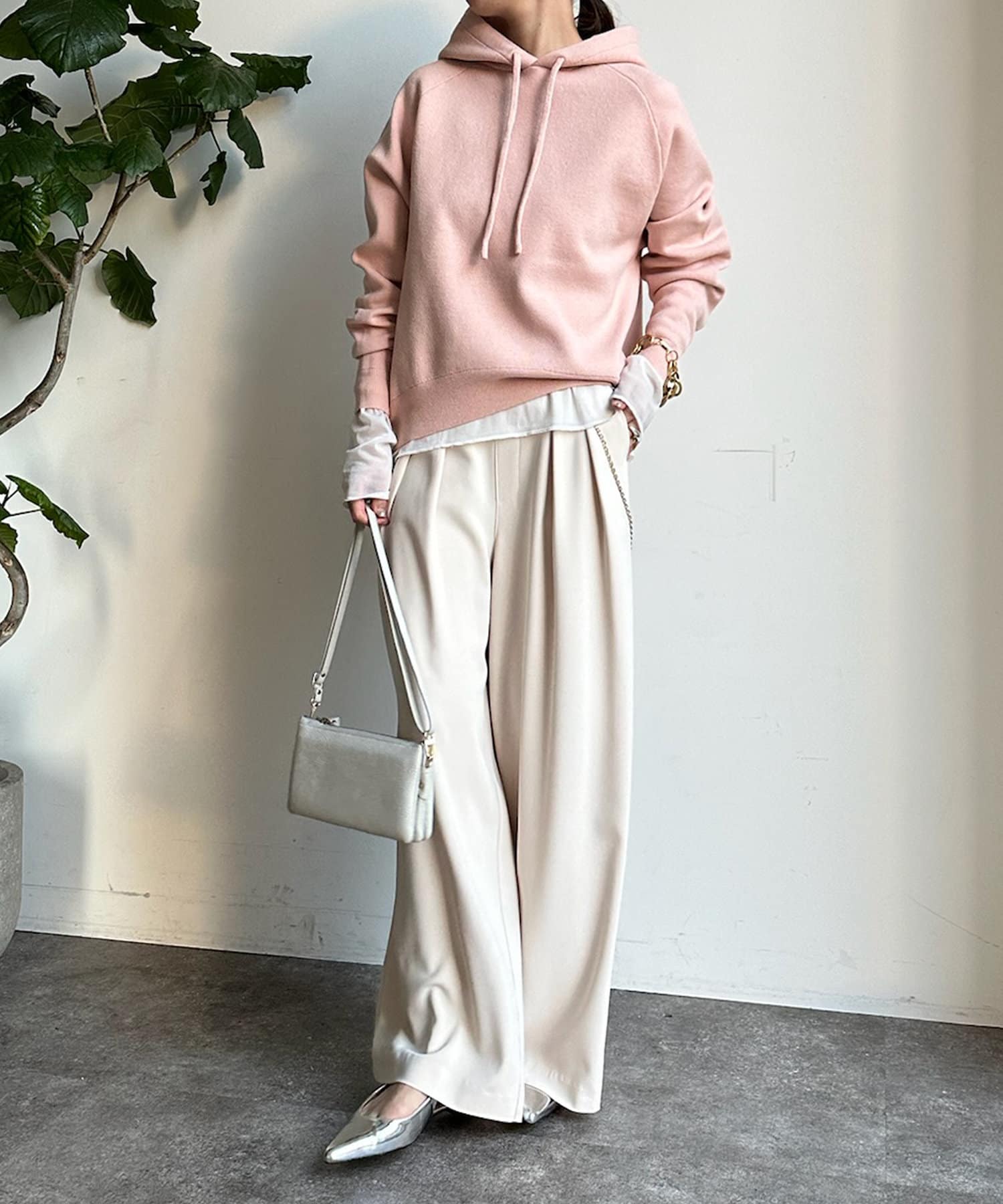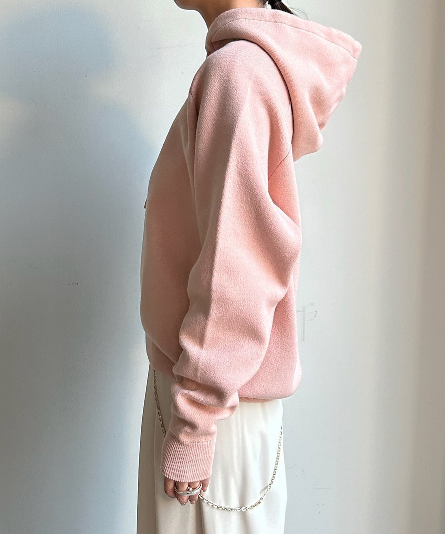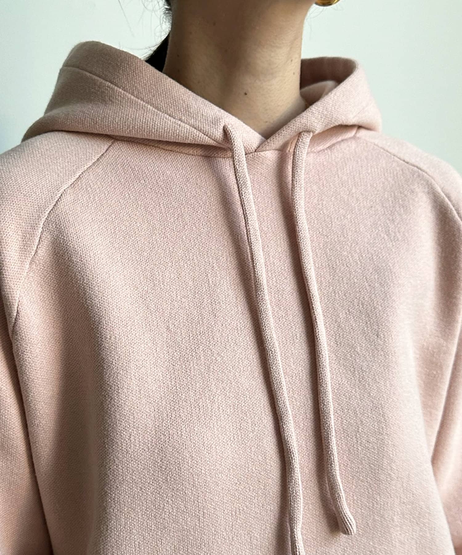 カジュアルになりすぎない上品なフーディーニット。