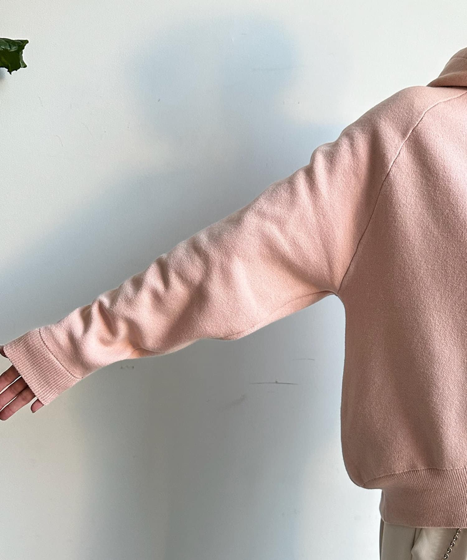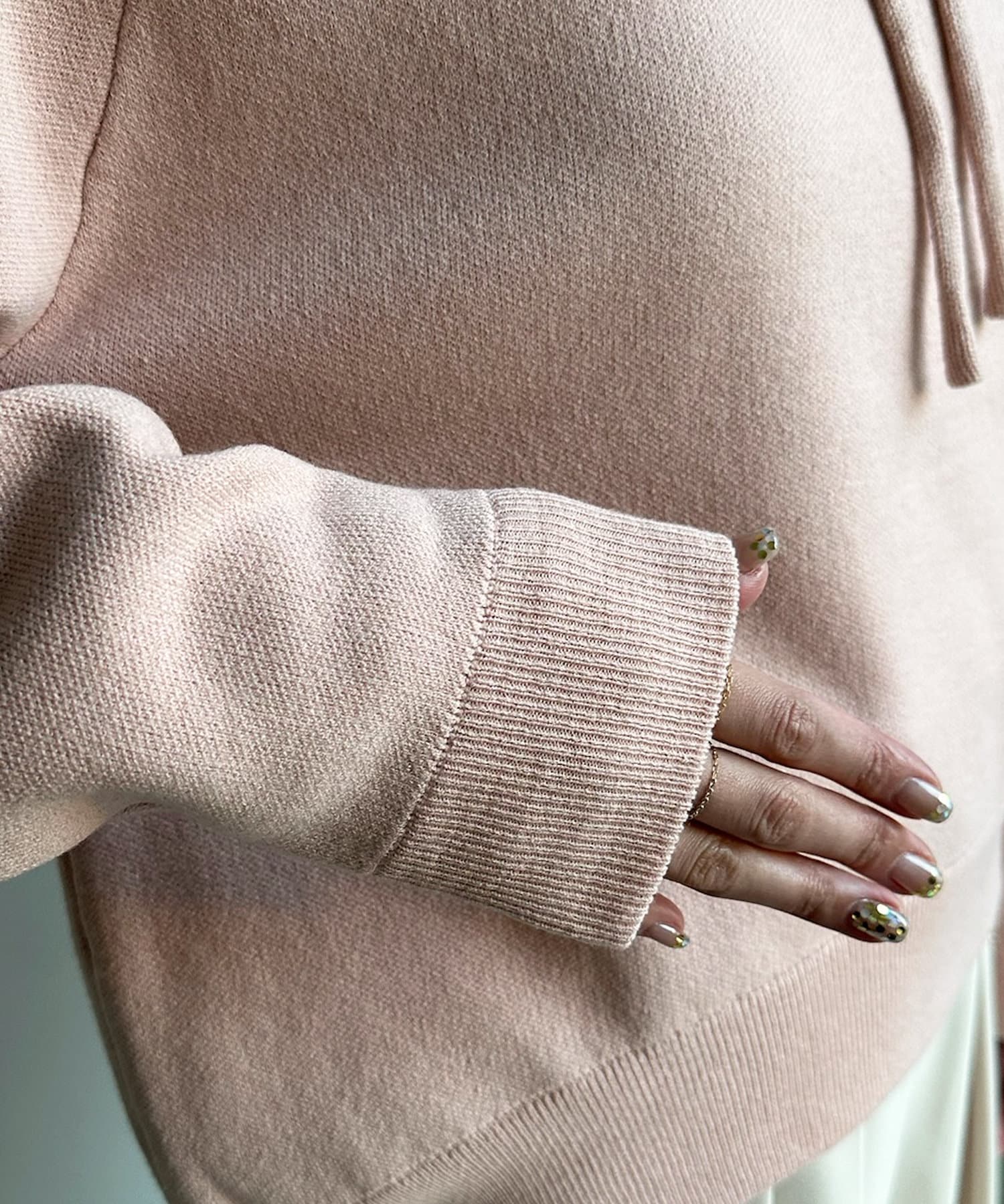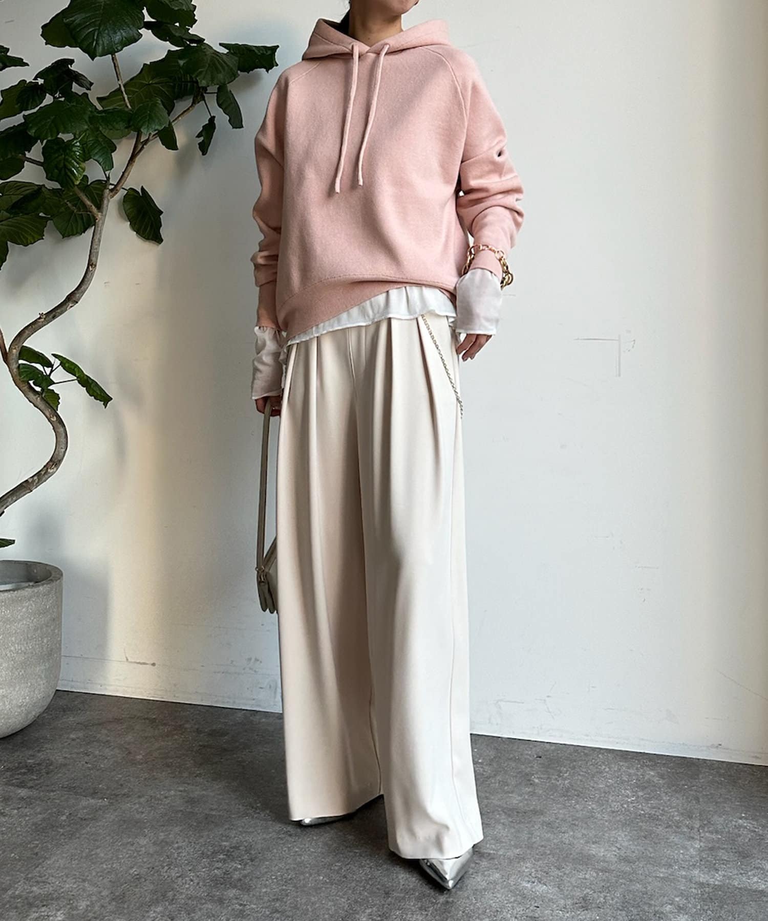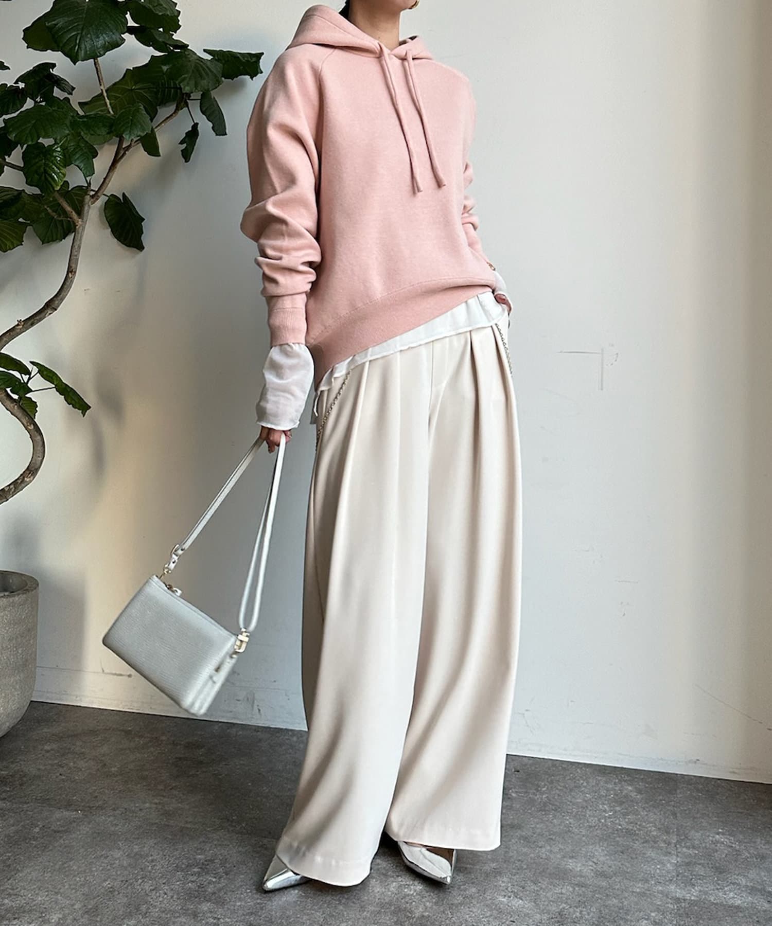 カジュアルになりすぎない上品なフーディーニット。