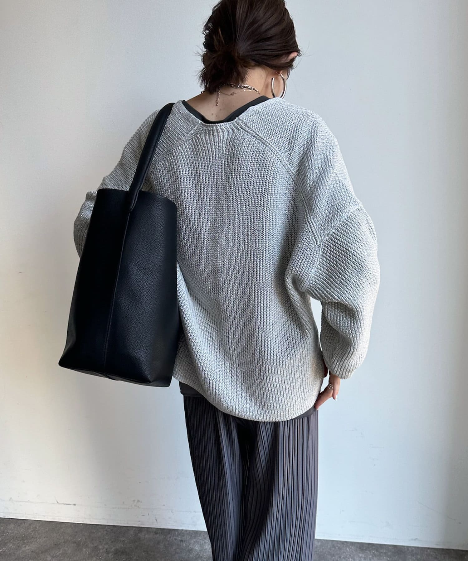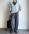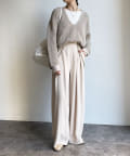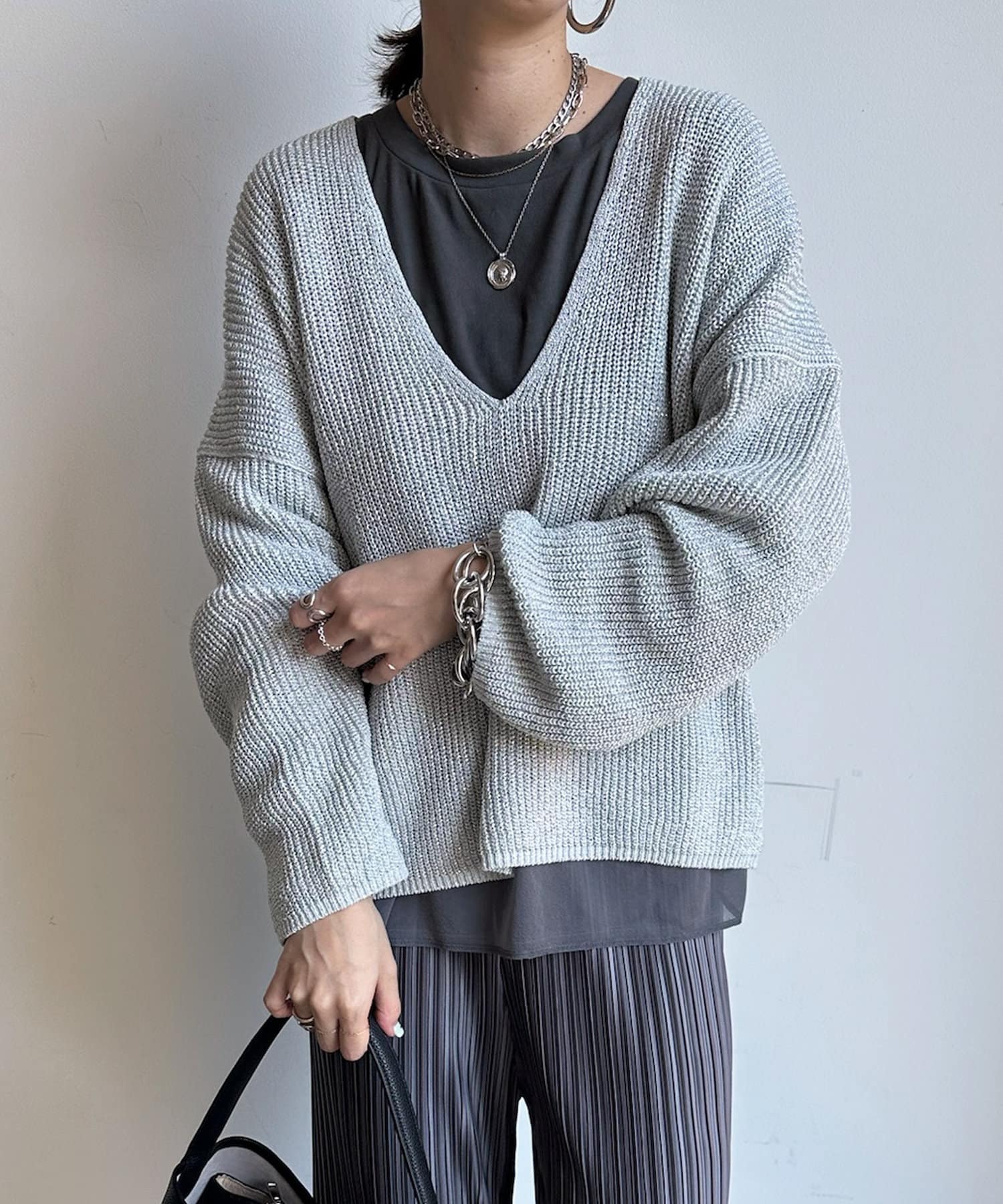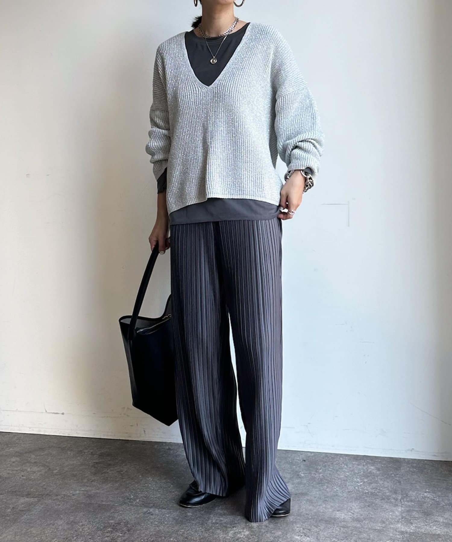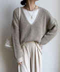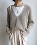 シルエットは、顔周りをすっきりと見せてくれるVネックデザインに仕上げ、シンプルで着回しの効くデザインに落とし込みました。