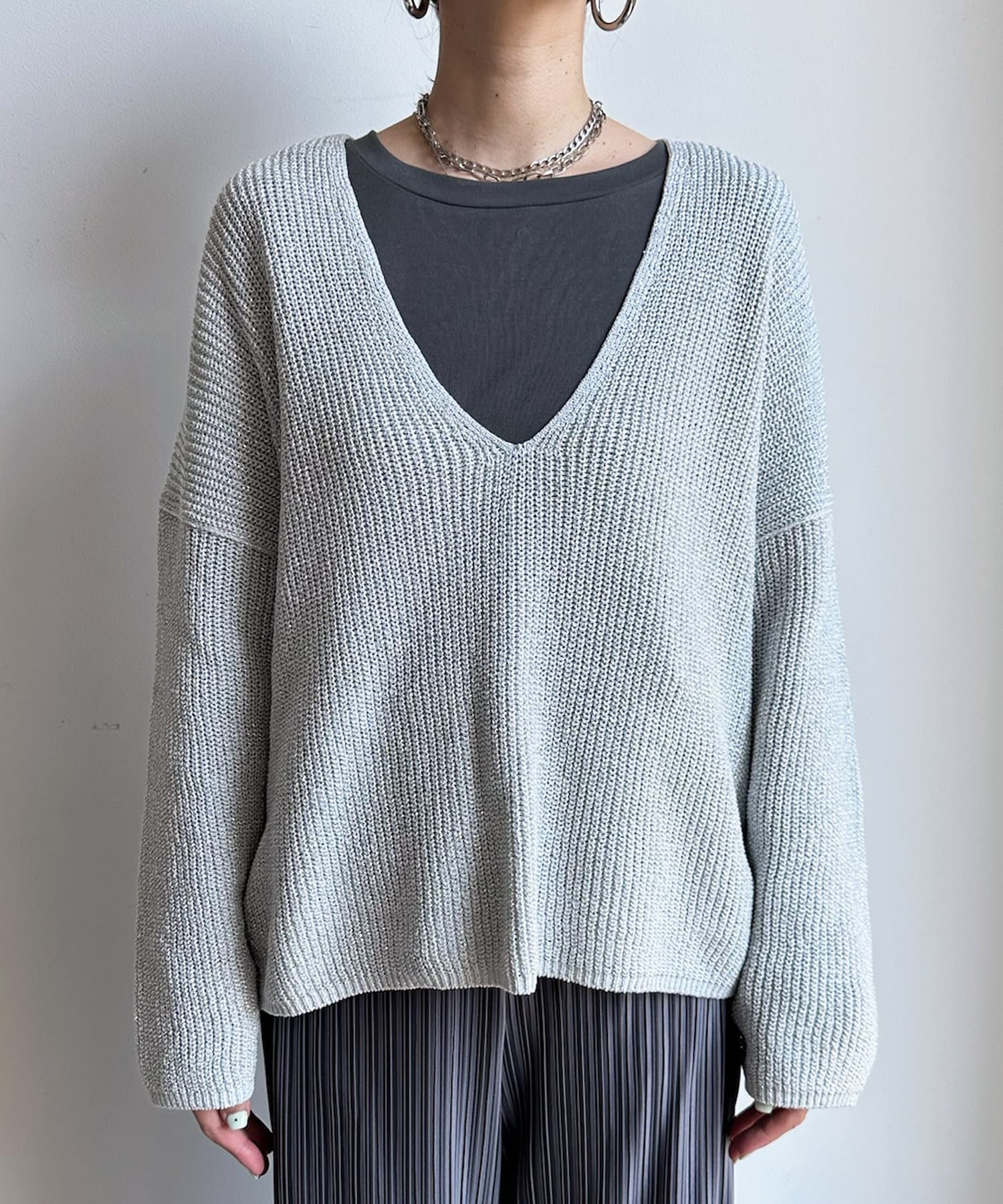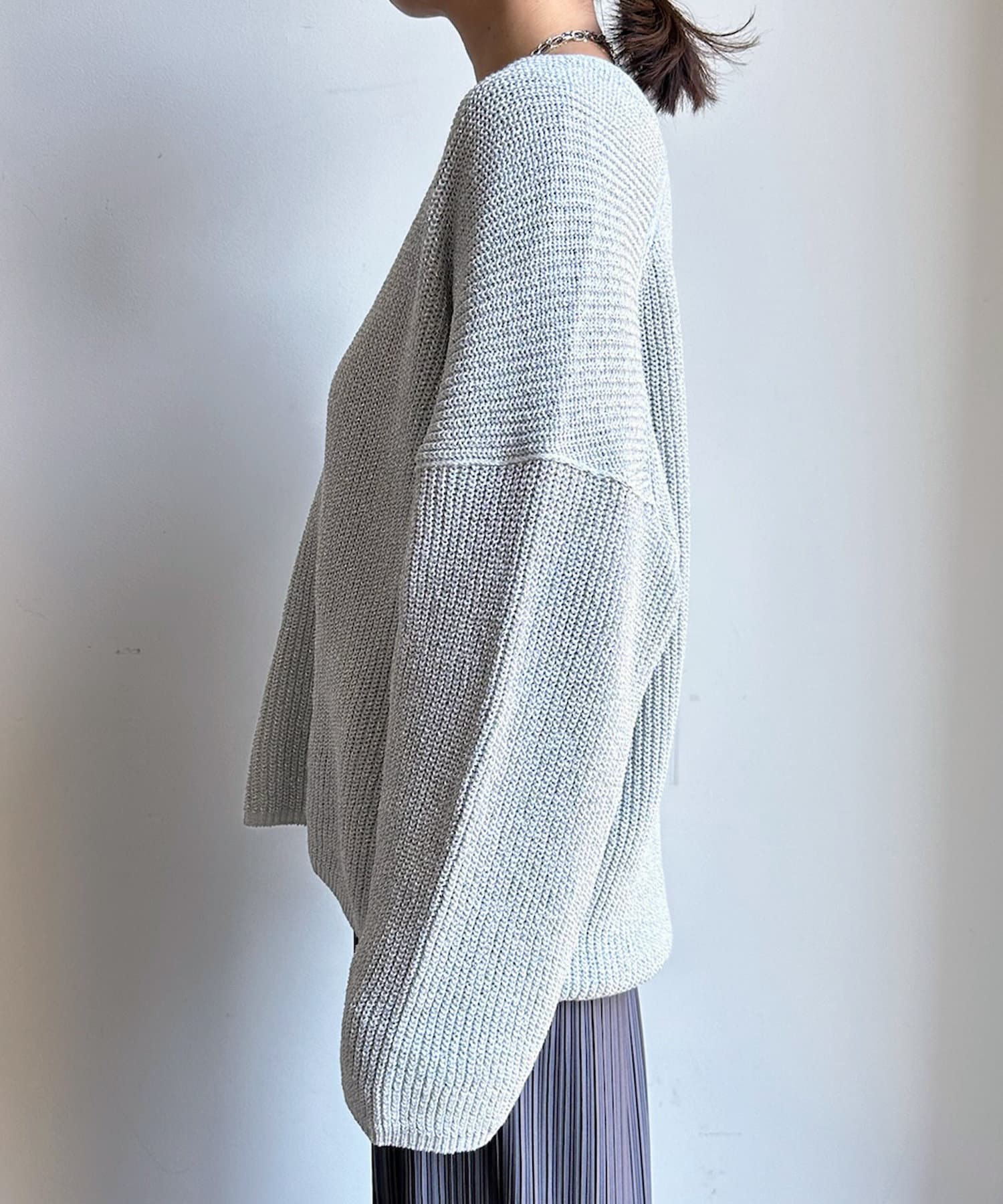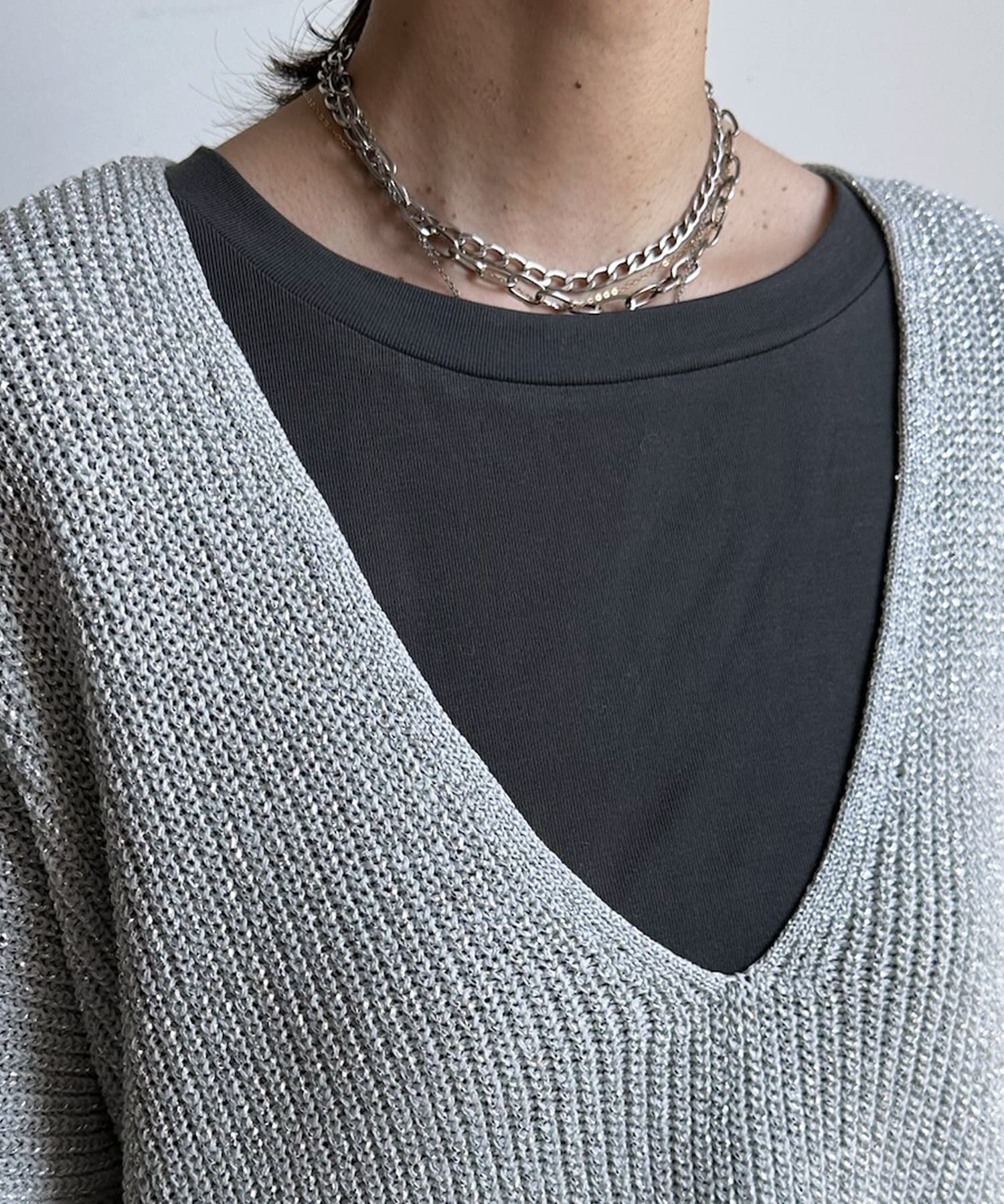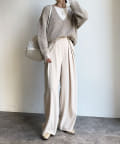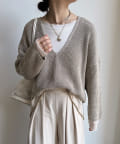 シルエットは、顔周りをすっきりと見せてくれるVネックデザインに仕上げ、シンプルで着回しの効くデザインに落とし込みました。