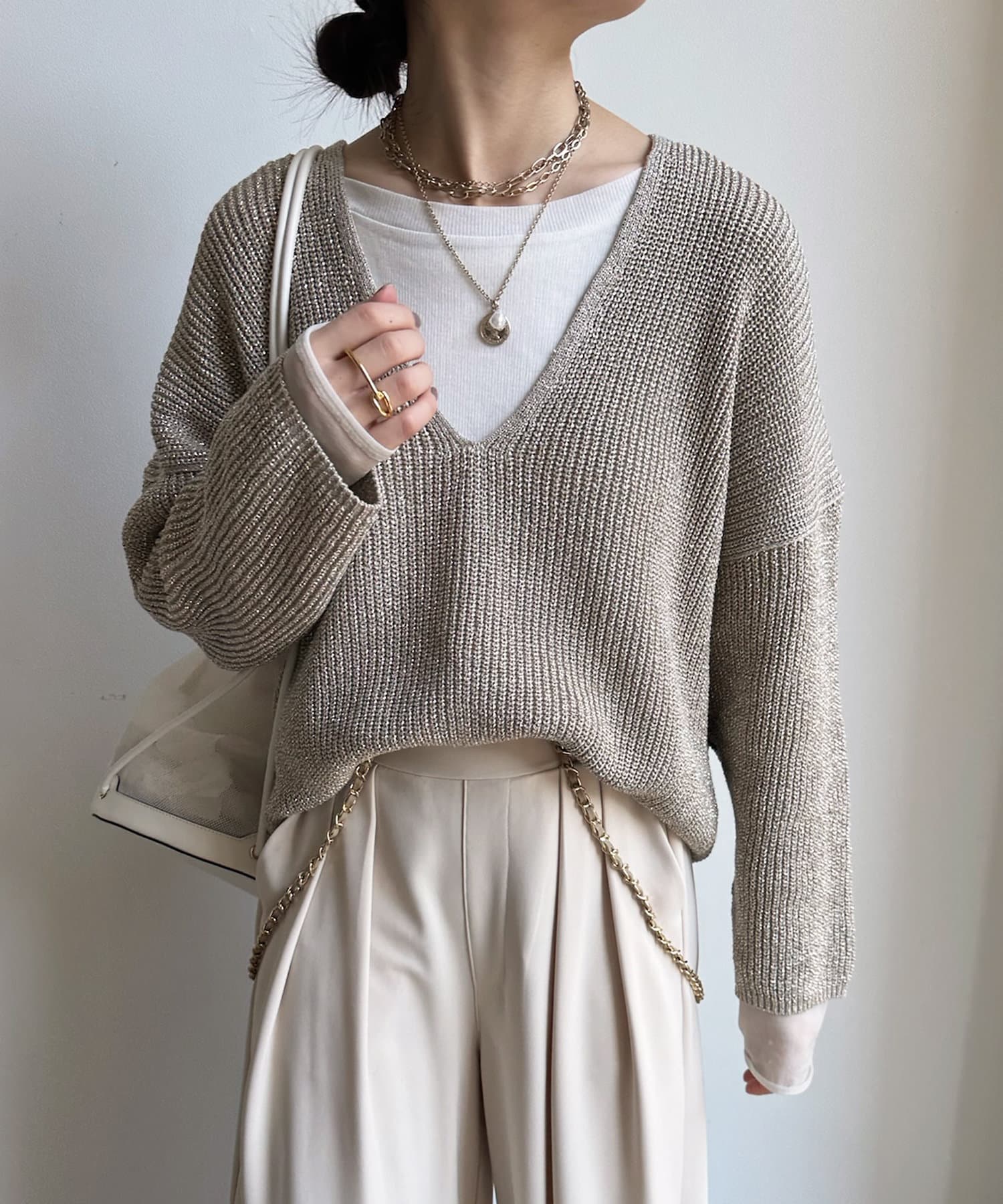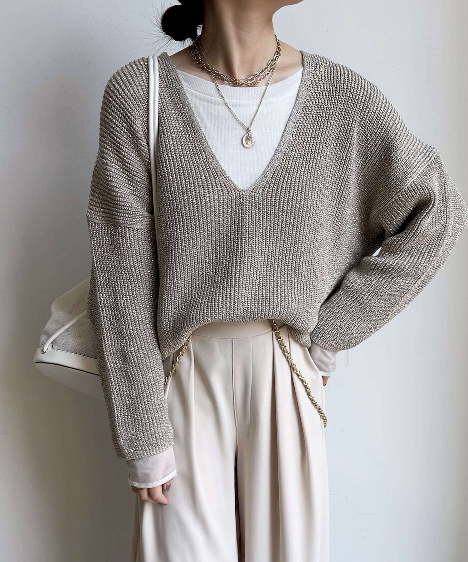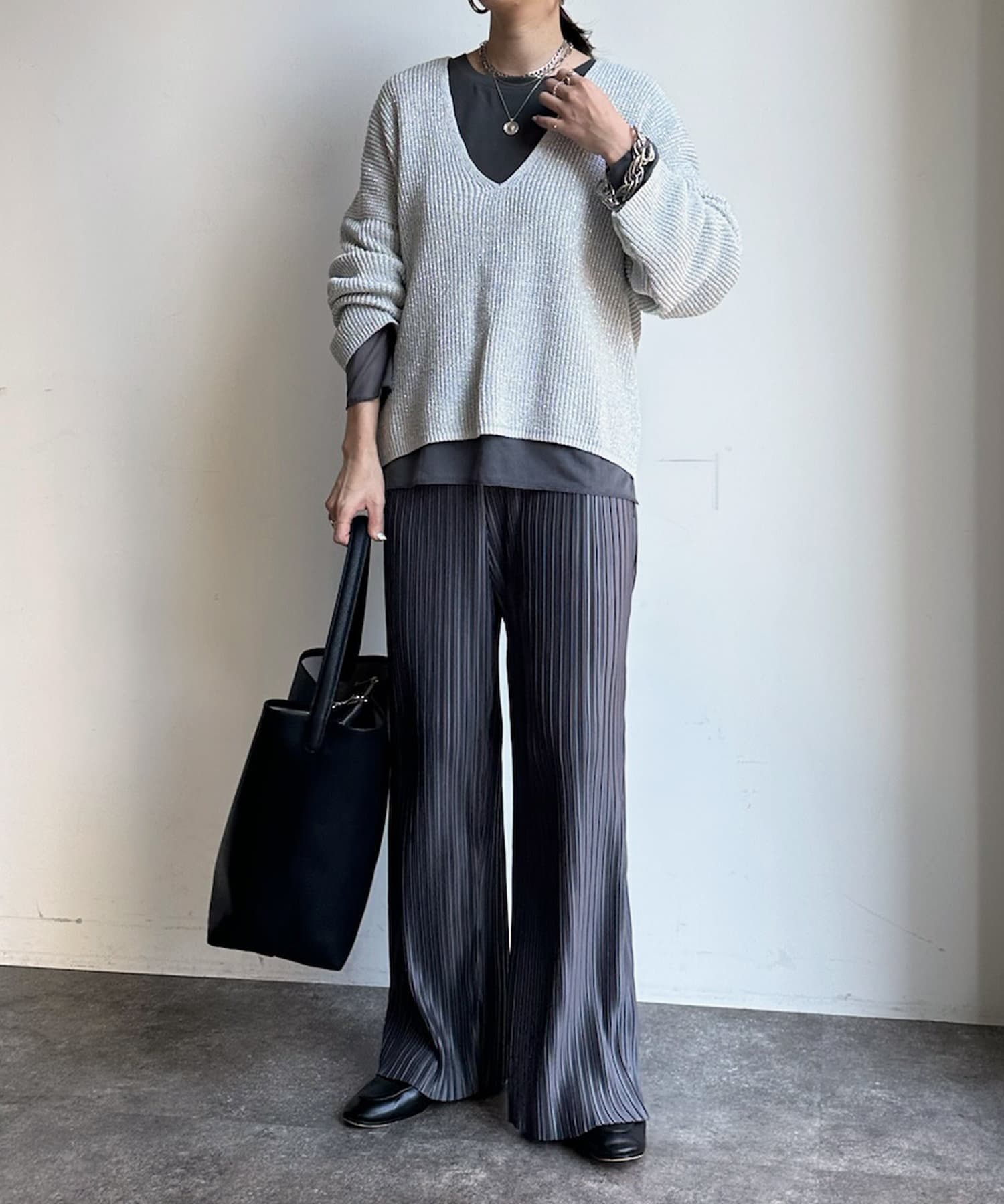 さりげなくキラキラとするラメ感がおしゃれで、今らしく決まる1着です。