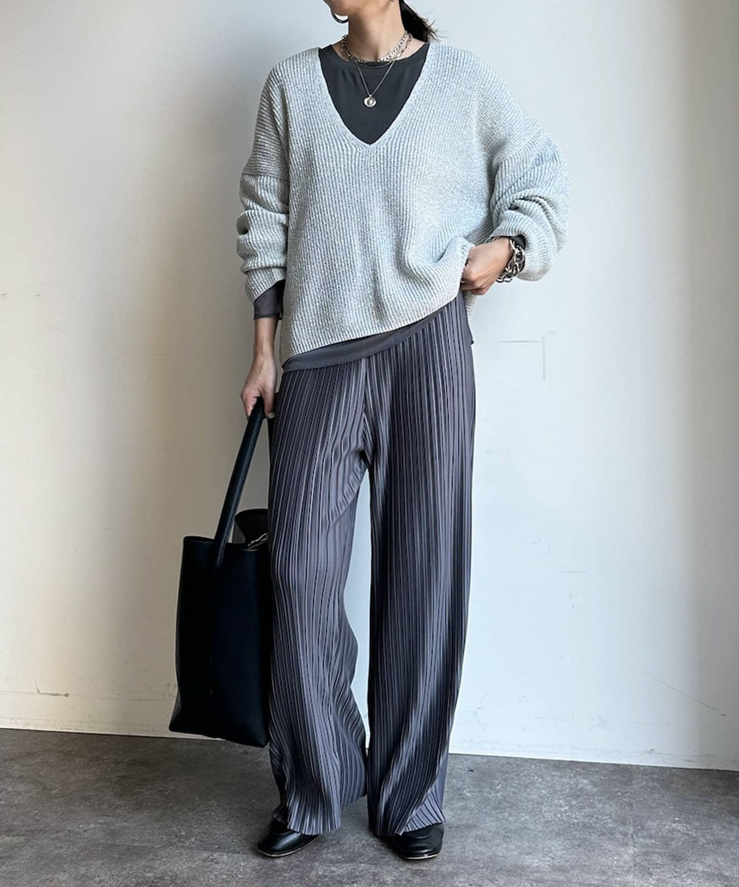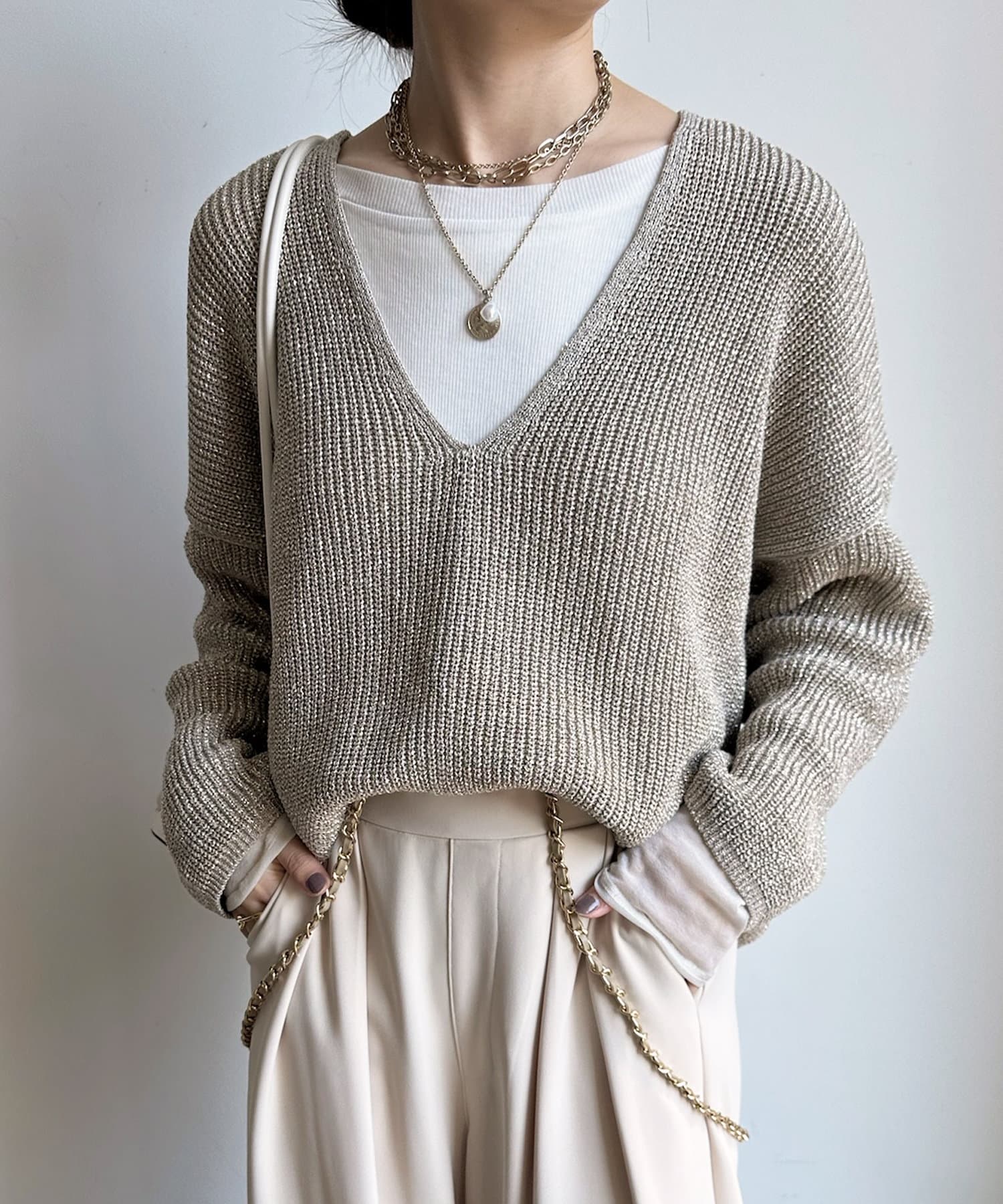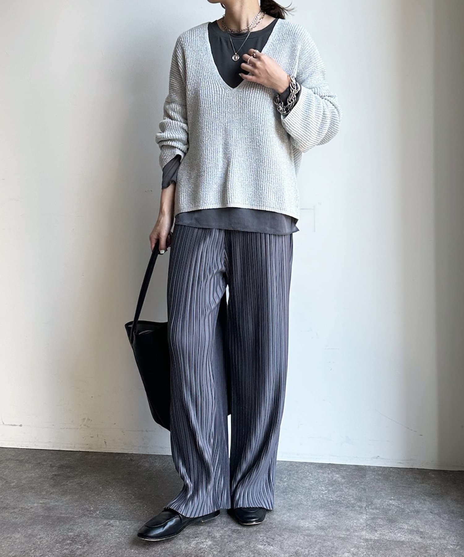 さりげなくキラキラとするラメ感がおしゃれで、今らしく決まる1着です。