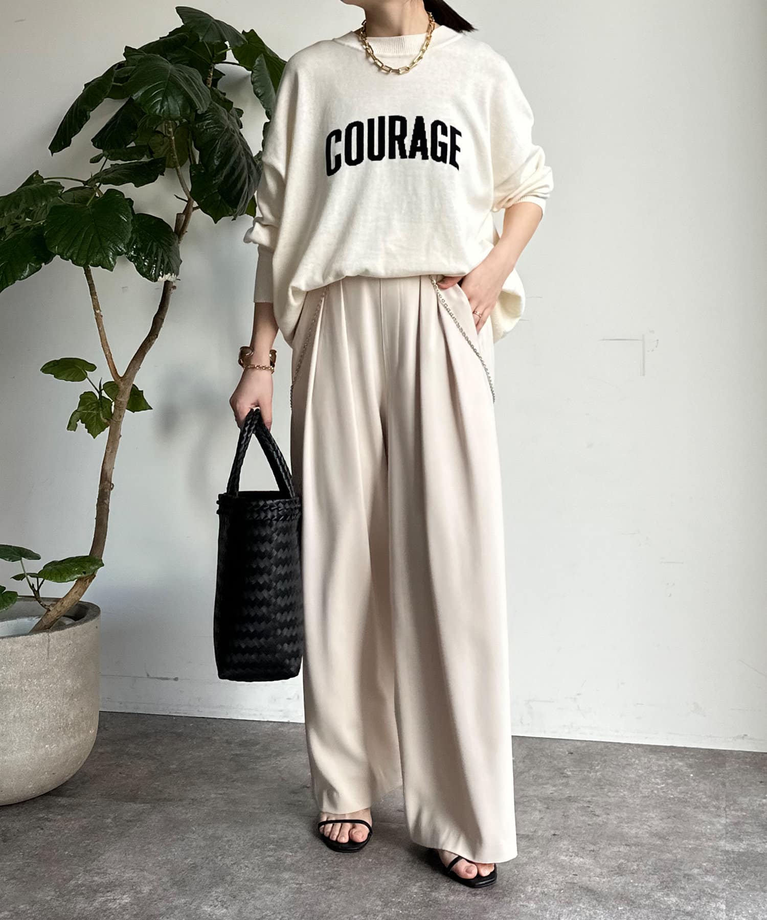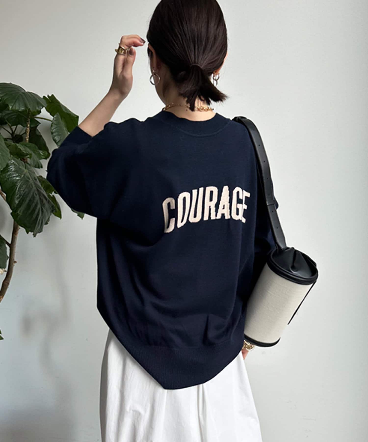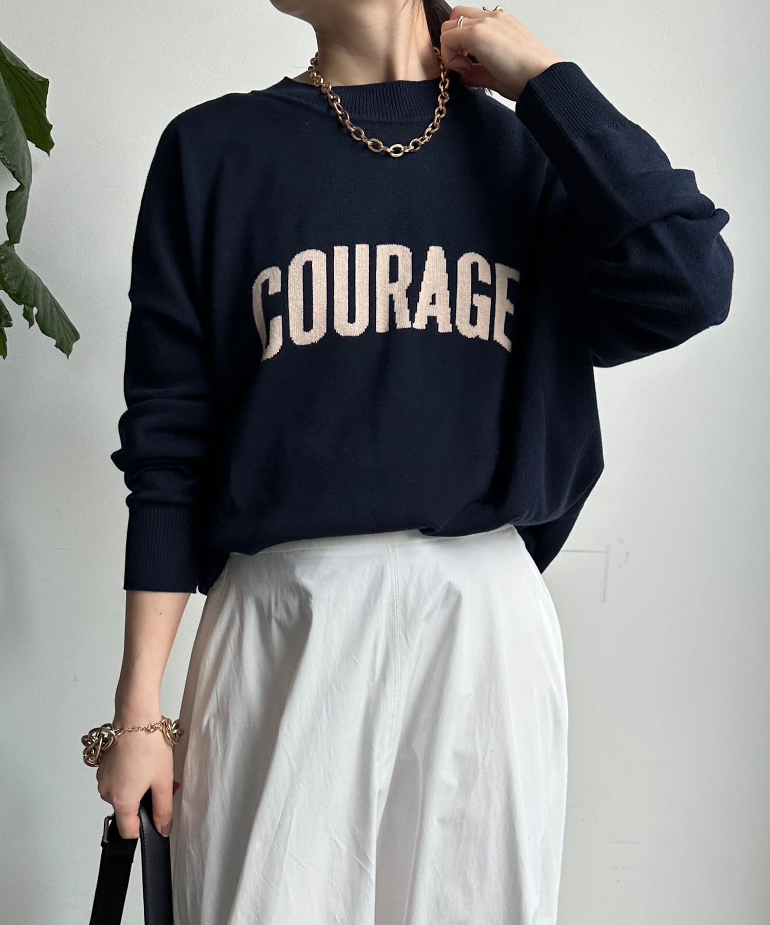 ニットのインターシャロゴのため、きれいめ派の方にも合わせやすいのがうれしいポイント。