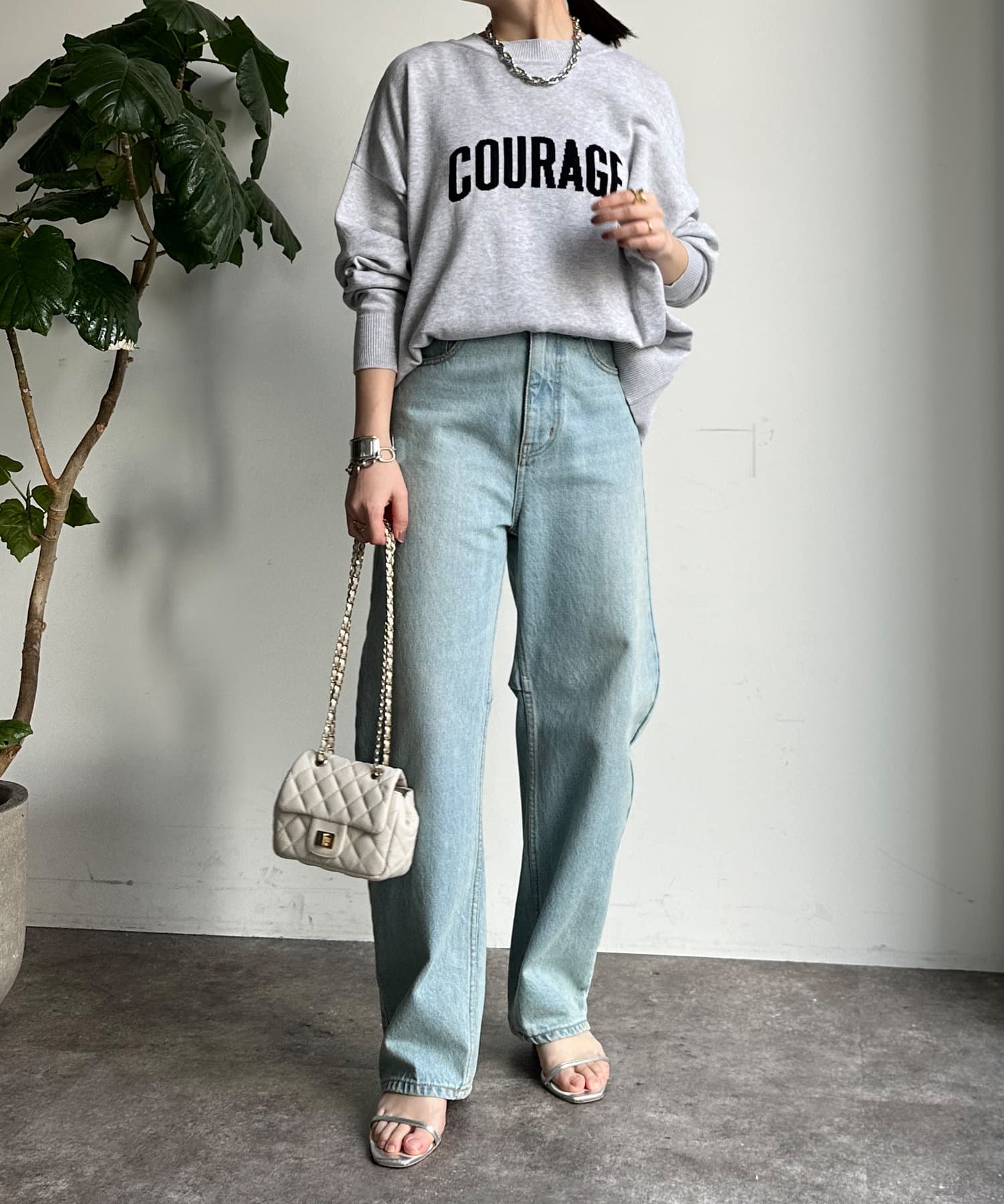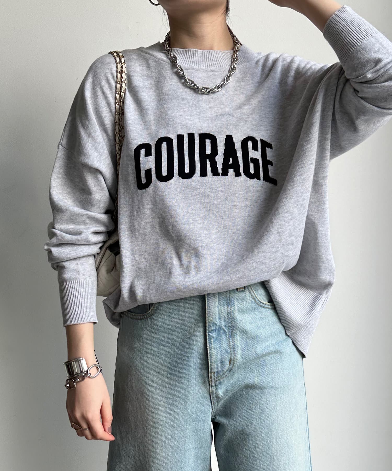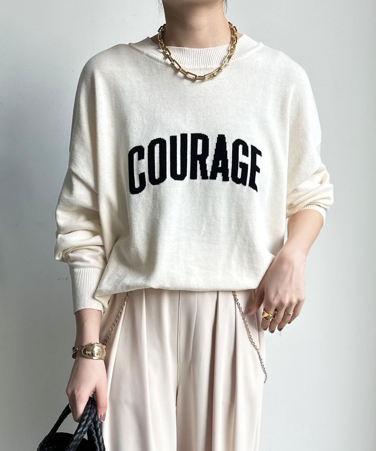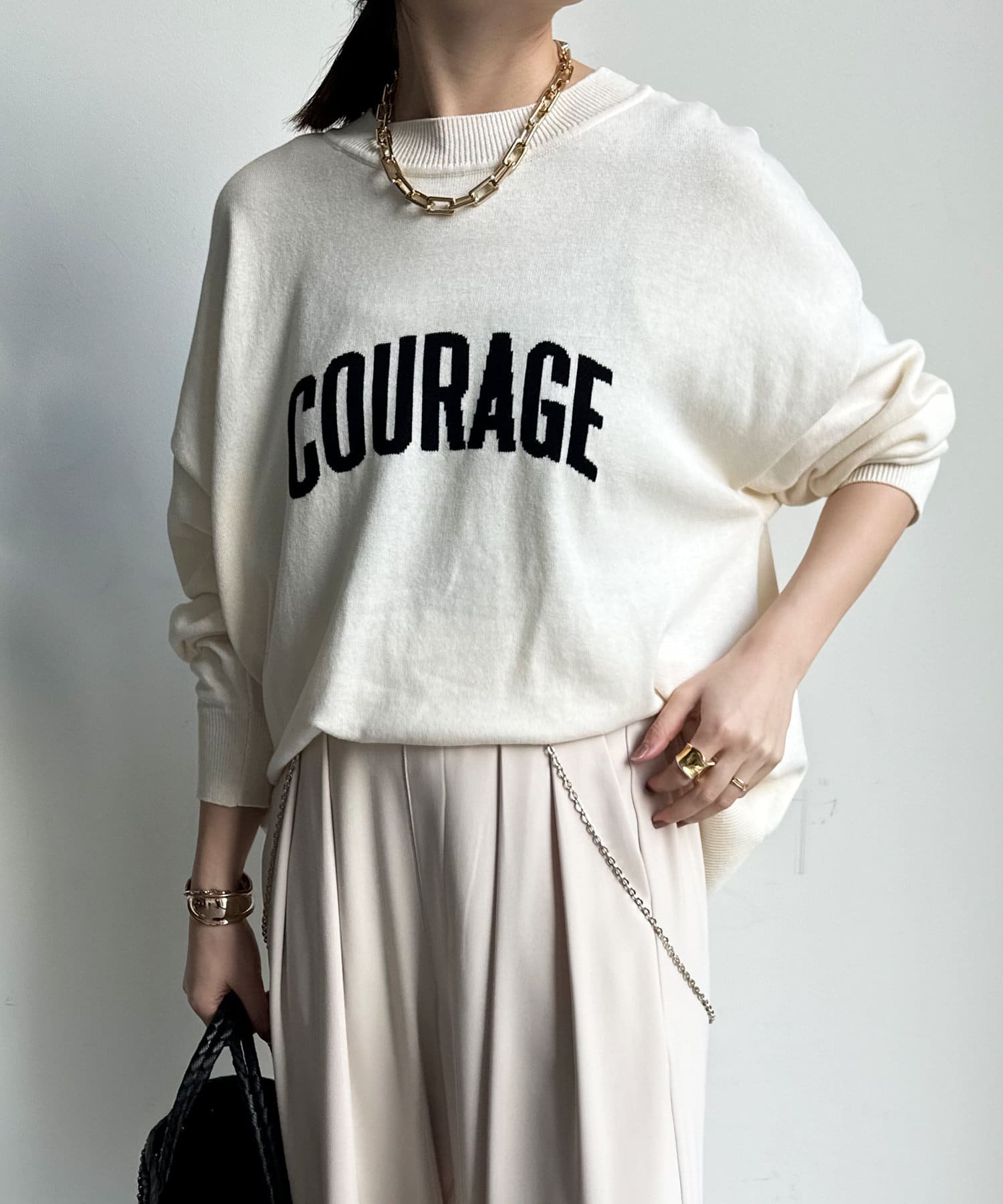 ニットのインターシャロゴのため、きれいめ派の方にも合わせやすいのがうれしいポイント。